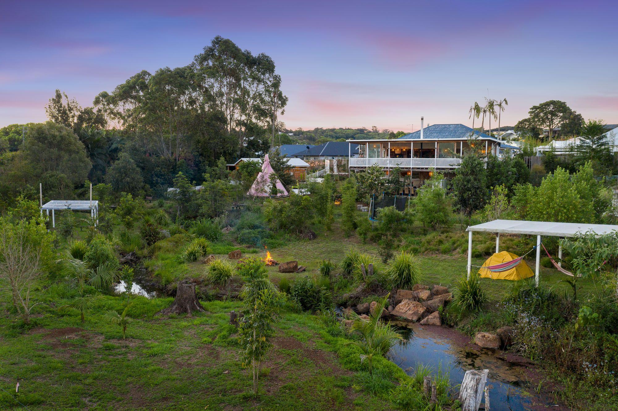 Welcome to the Alpine Homestead in the picturesque town of Bangalow, located in the stunning surroundings of NSW’s Byron Bay in the Northern Rivers region. This property boasts a beautifully renovated 120-year-old Queenslander homestead and a charming alpine cabin, set on 2 acres of lush gardens, abundant nature, a running creek, and a permaculture farm.