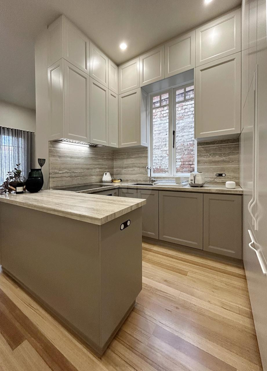 Recently renovated, Angie boasts an exquisite design that showcases a harmonious mix of Federation, Art Deco, and French Provincial influences. The interior features elegant arches and a cosy fireplace, creating an inviting atmosphere that is both stylish and timeless. The warm, rich materials and luxurious finishes throughout the space are complemented by a neutral, earthy palette that enhances the minimalist vibe.