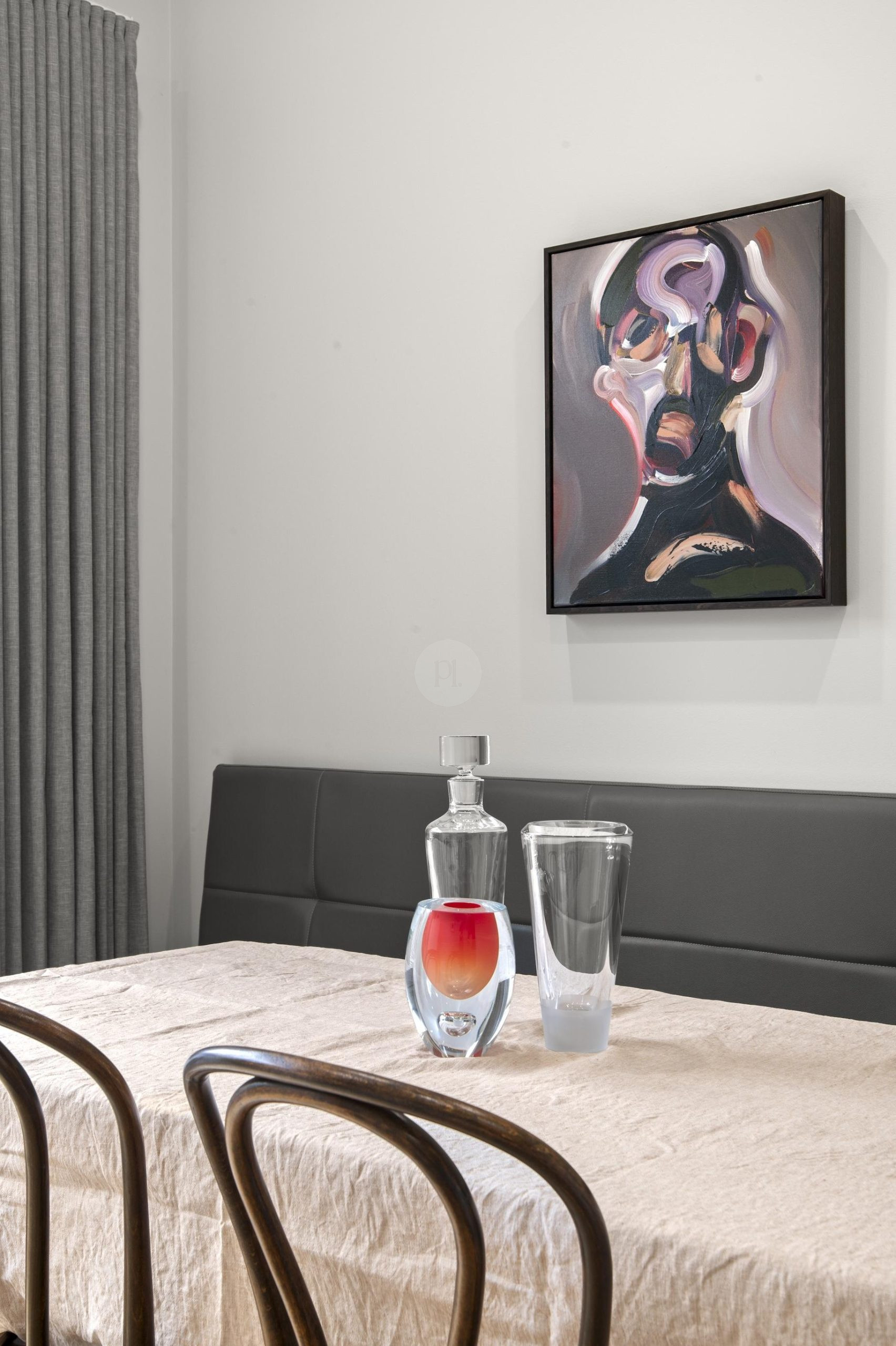With three spacious bedrooms, a large bathroom complete with an inset marble-clad bath and bidet, and a convenient powder room, Angie offers ample space for various creative setups. The meals area, featuring built-in bench seating, flows effortlessly into the modern kitchen equipped with fully integrated appliances, providing a perfect setting for culinary shoots.