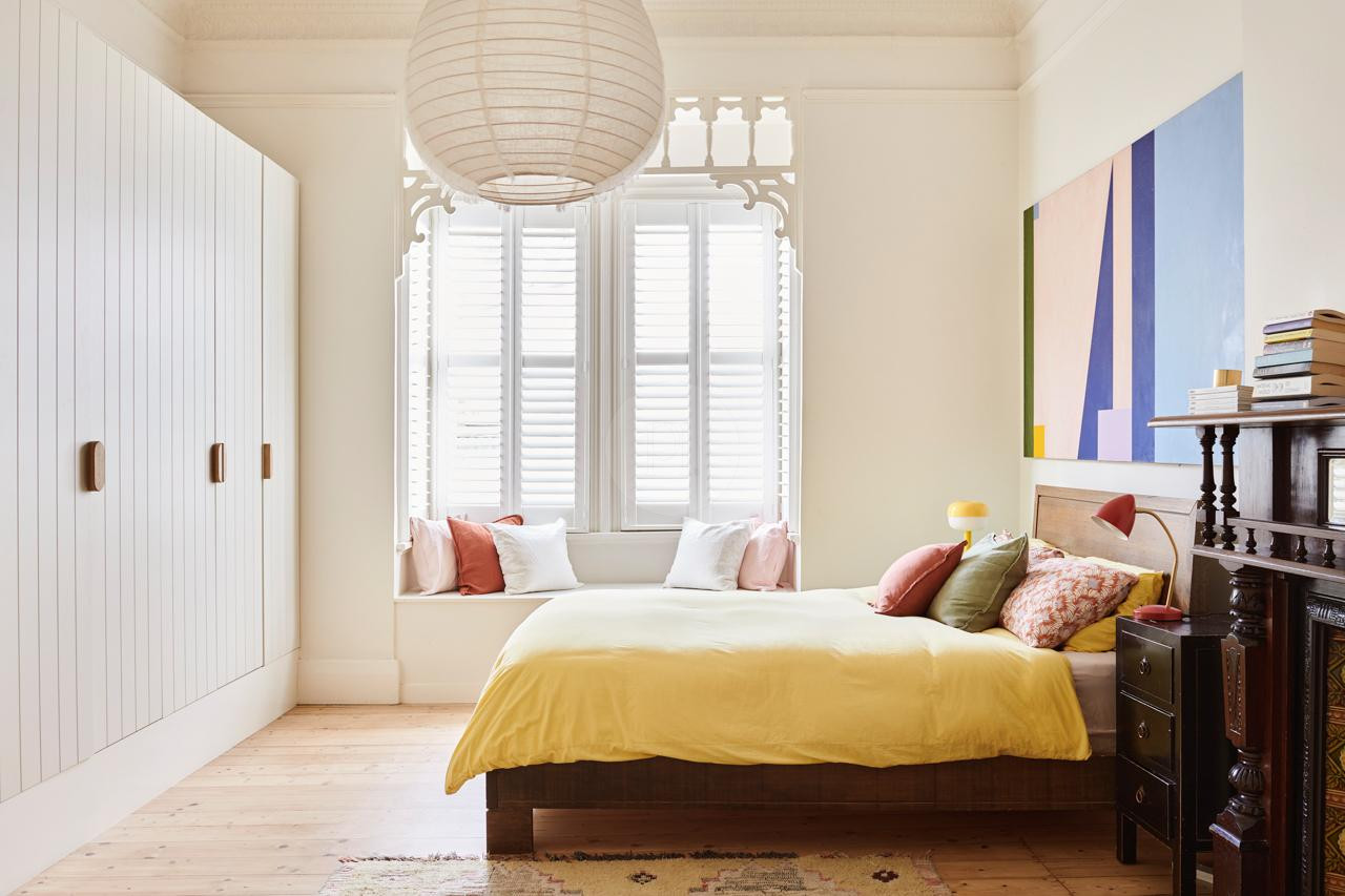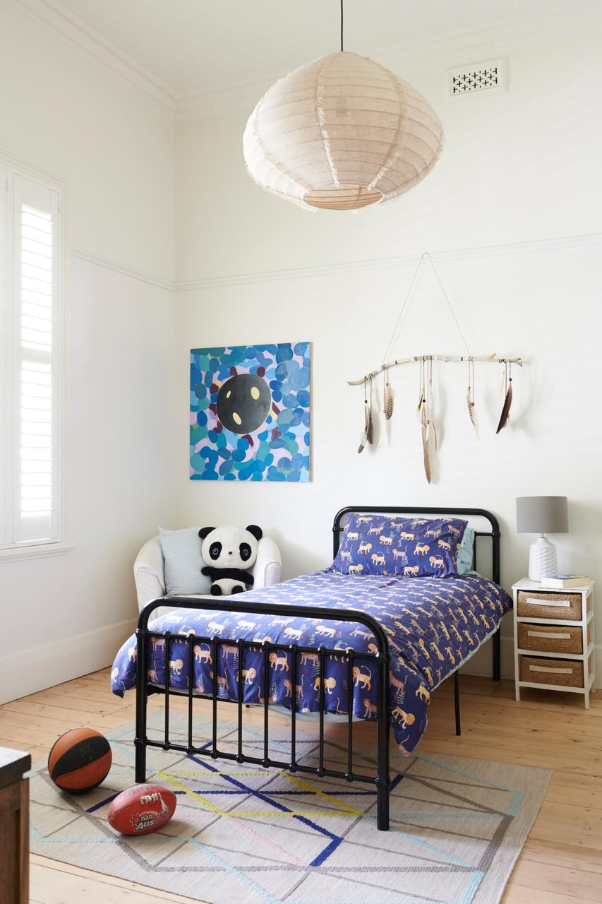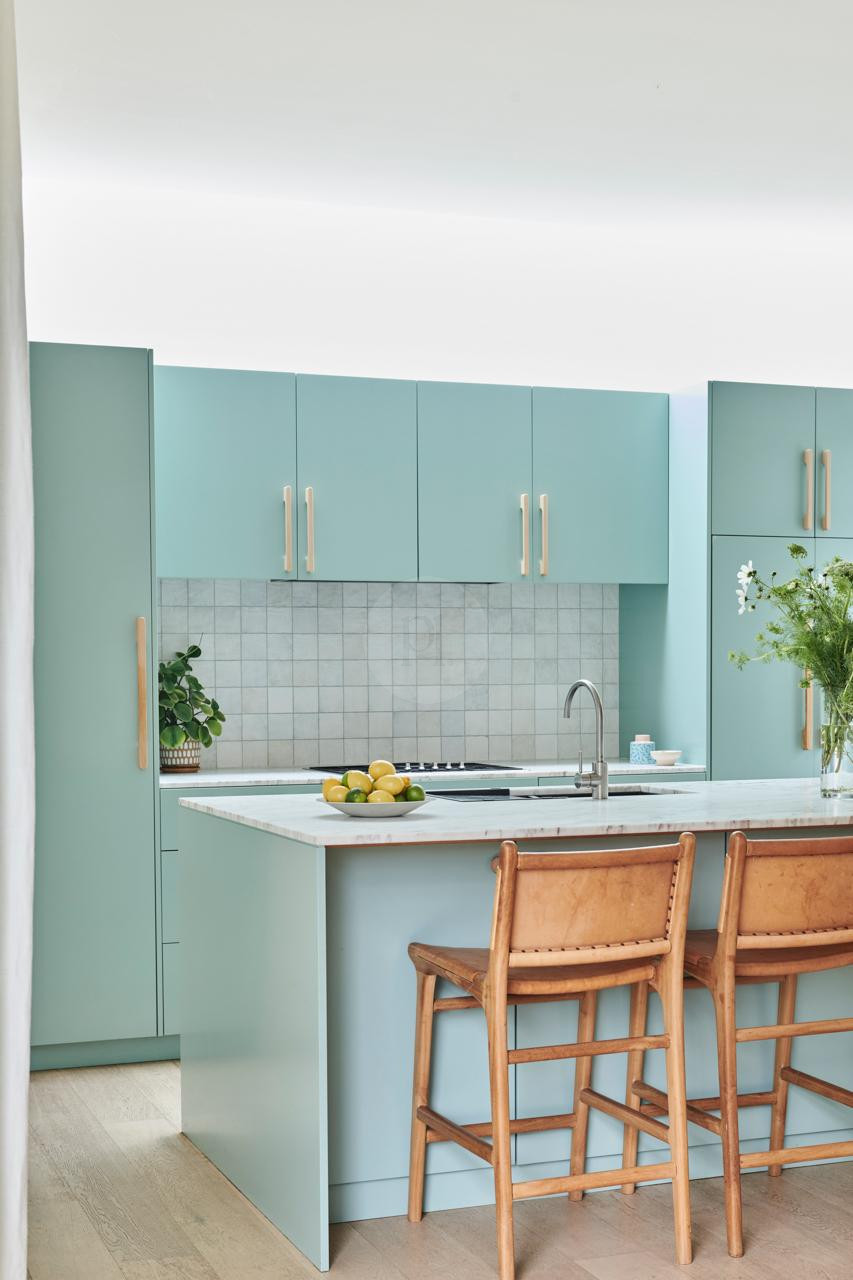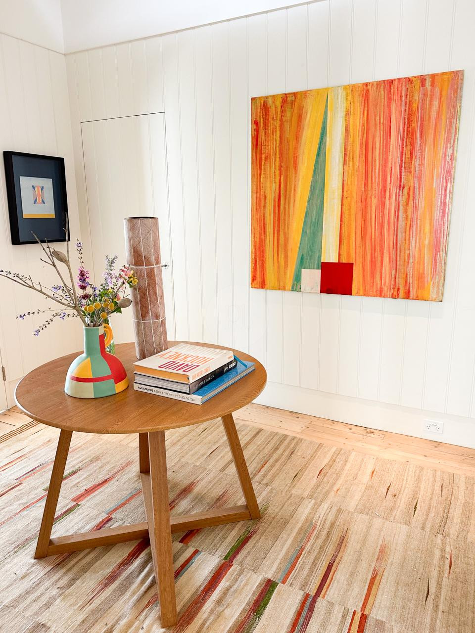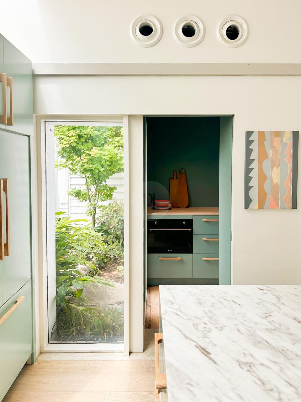 The pastel green coloured kitchen and butler’s pantry add unique pops of colour, ideal for vibrant lifestyle or culinary shoots. Bathrooms with patterned statement tiles and clever hidden storage in the gallery’s timber panelling further enhance the home’s creative potential.