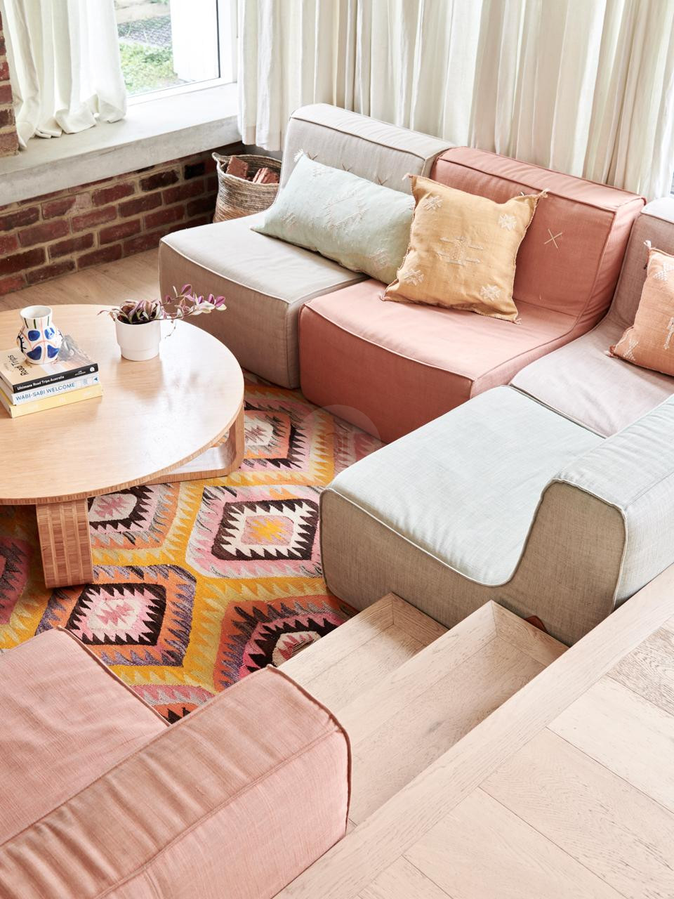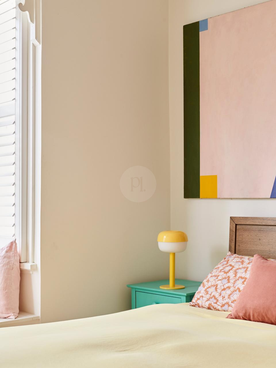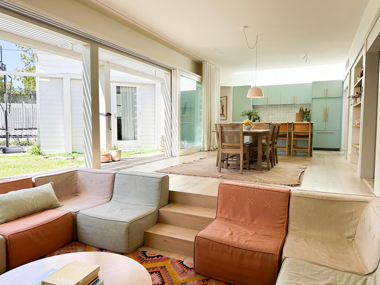 Original Victorian features, including pressed metal ceilings and polished floorboards, provide texture and character throughout. The pastel pink front door sets a playful tone, inviting talent and crew into interiors where every room tells a story. The sunken lounge with original fireplaces offers a warm, inviting space for intimate lifestyle shoots, while the spacious living, dining, and bedrooms provide versatile zones for editorial, fashion, or commercial content.