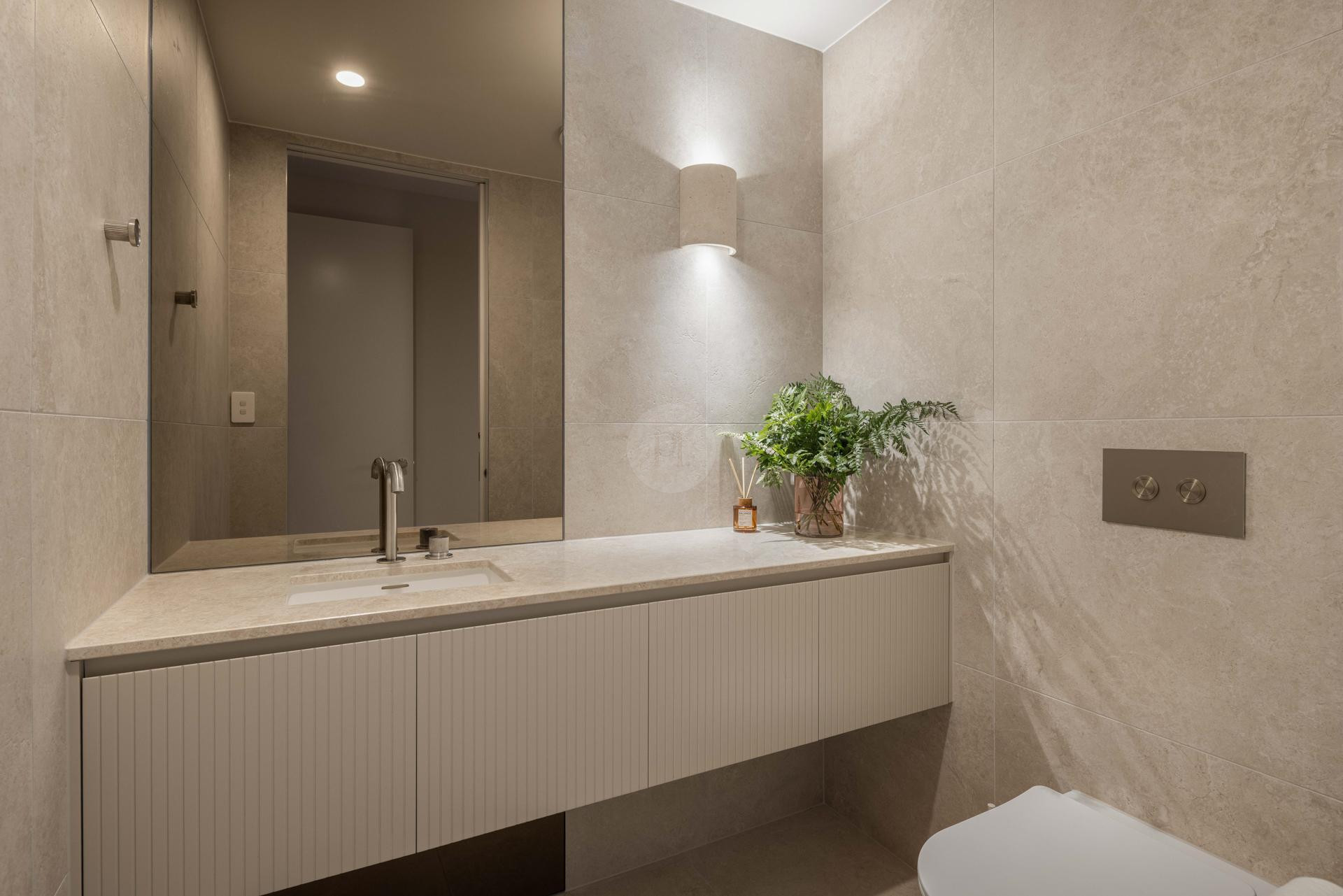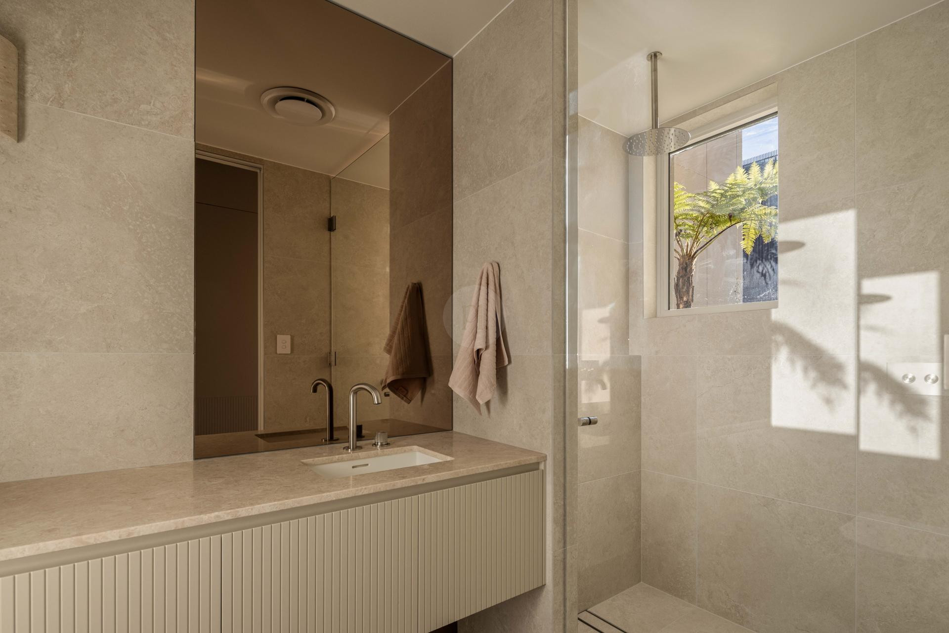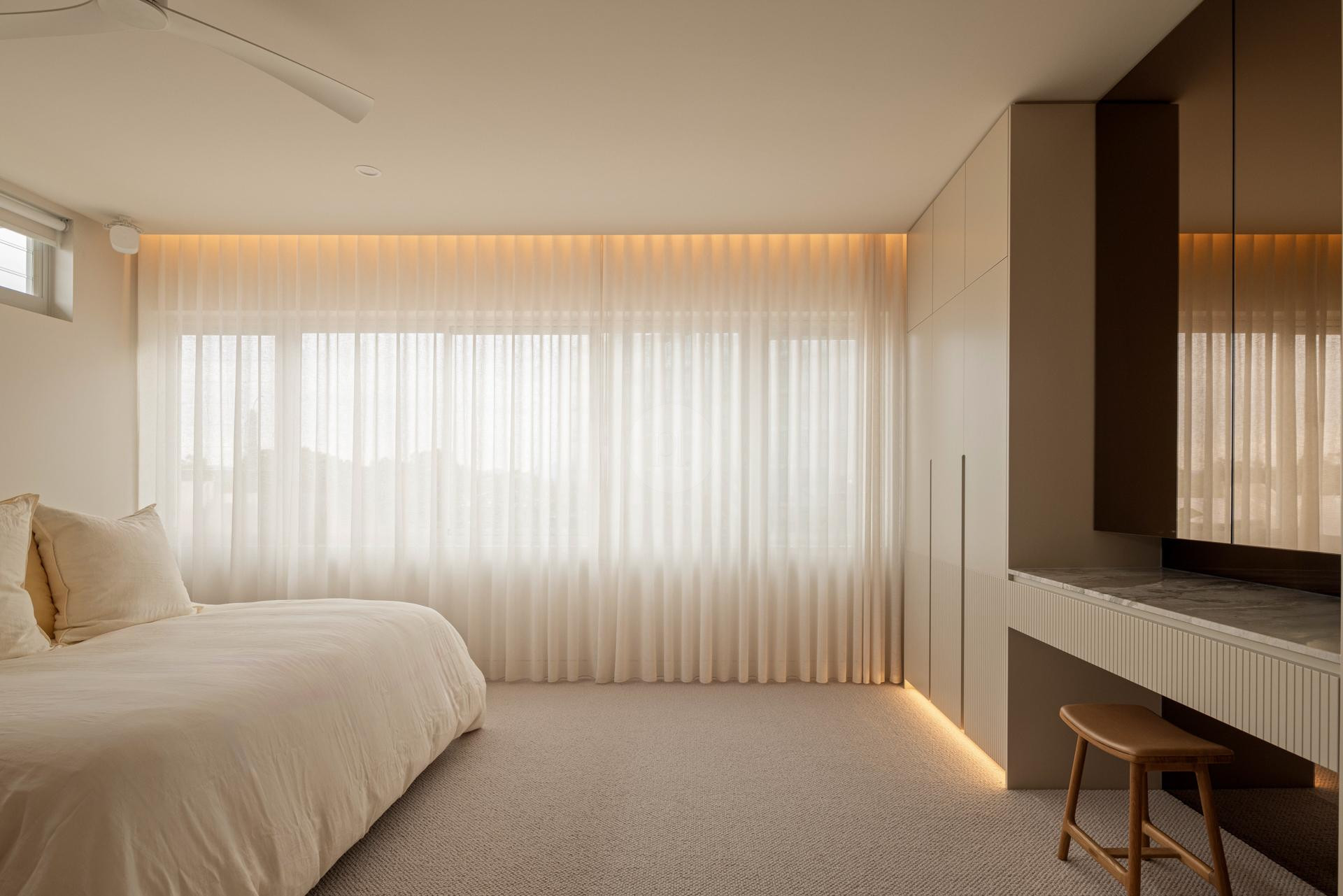 At the heart of the home is a designer kitchen featuring a dramatic four-metre island bench, fully integrated appliances, and a separate butler’s pantry. This space offers a polished and functional backdrop for culinary content, lifestyle campaigns, and editorial shoots.
