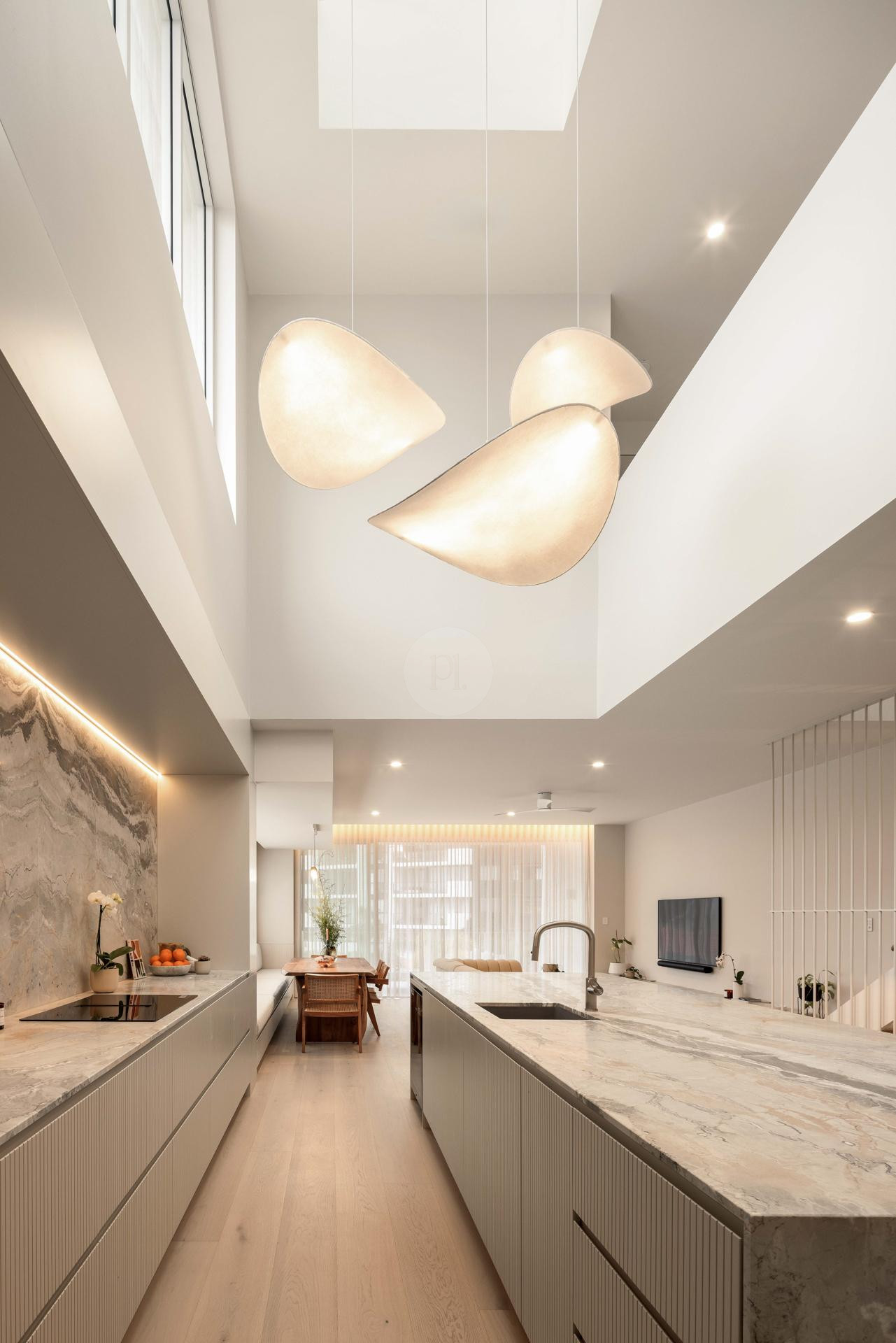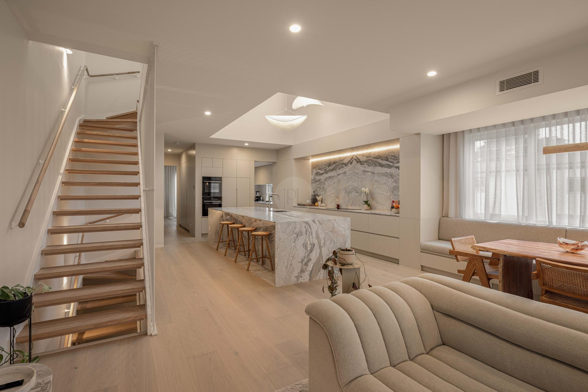 Natural light filters throughout the home, enhancing its architectural lines and creating dynamic shooting opportunities across multiple zones, from expansive open-plan living areas to more intimate, design-led corners.