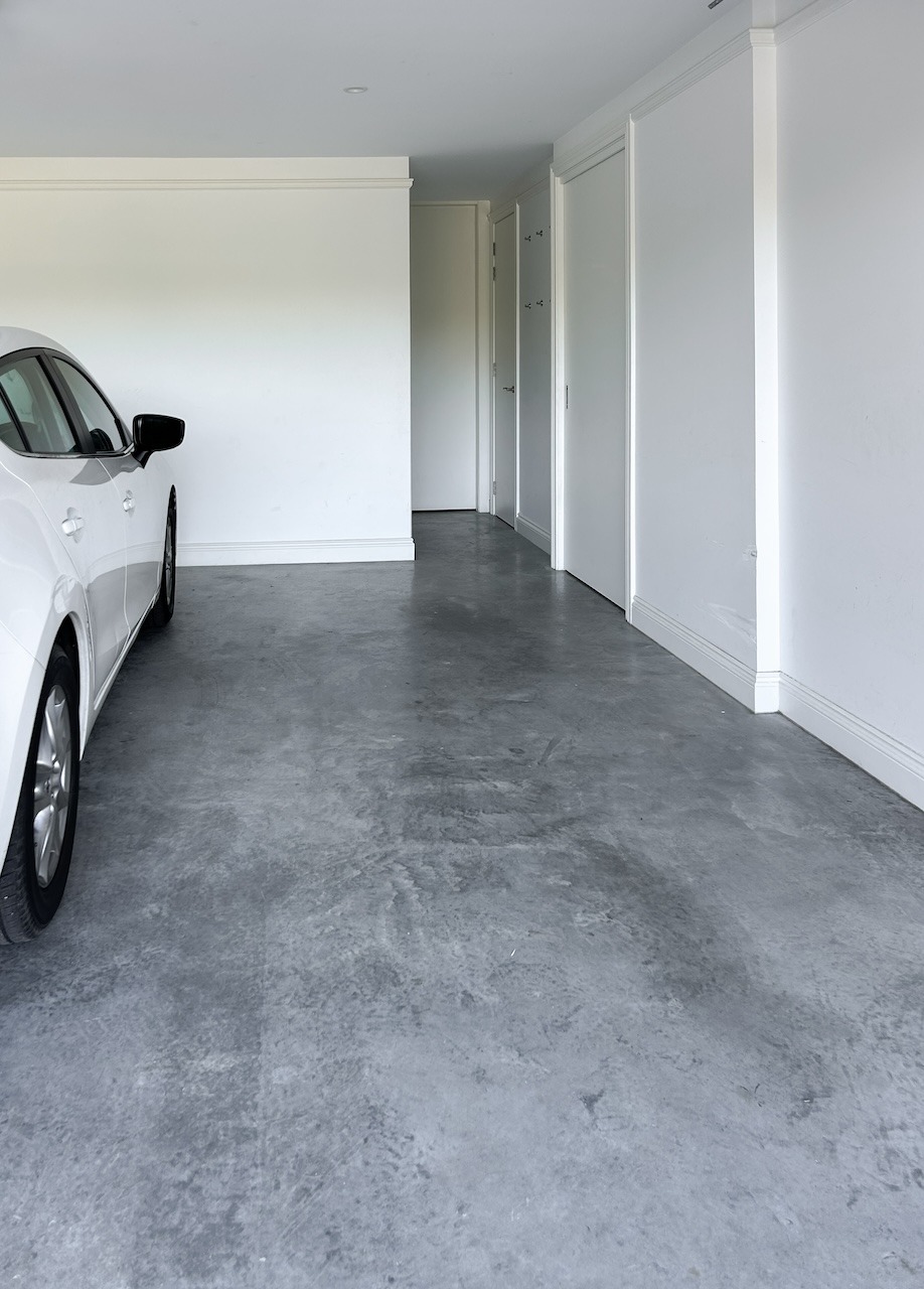 A standout feature of the property is the stunning perforated white matte powdered steel floating staircase that allows natural light and airflow to flow through the entire home. The design elements, such as burnished concrete floors and stairs on the ground level, add a touch of modernity while maintaining a sense of calm and serenity.
