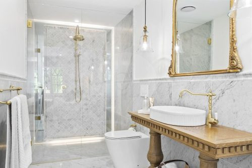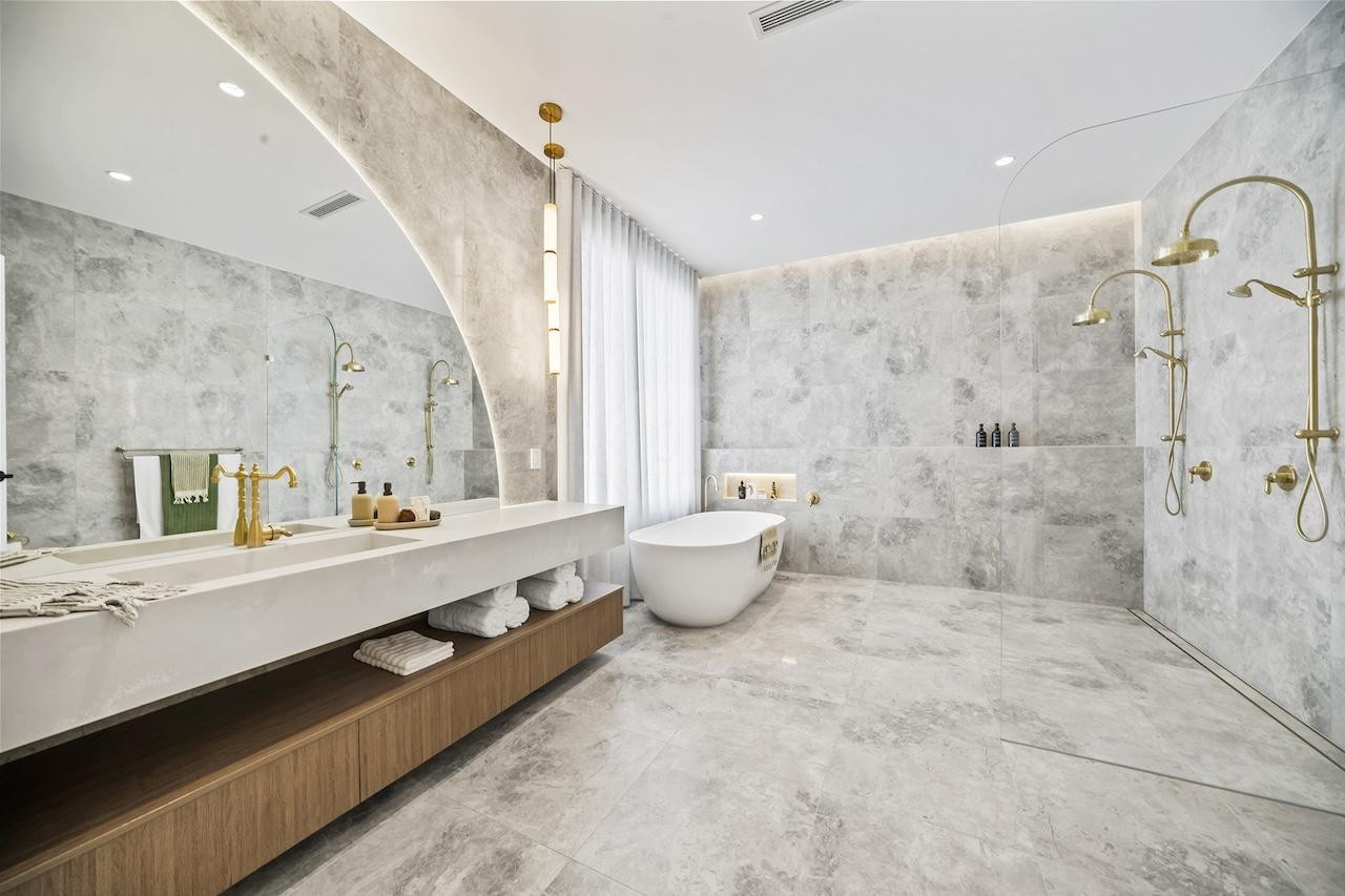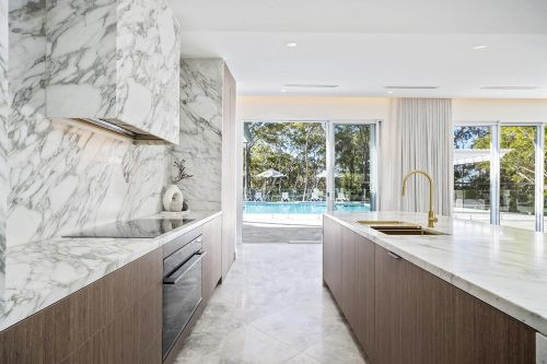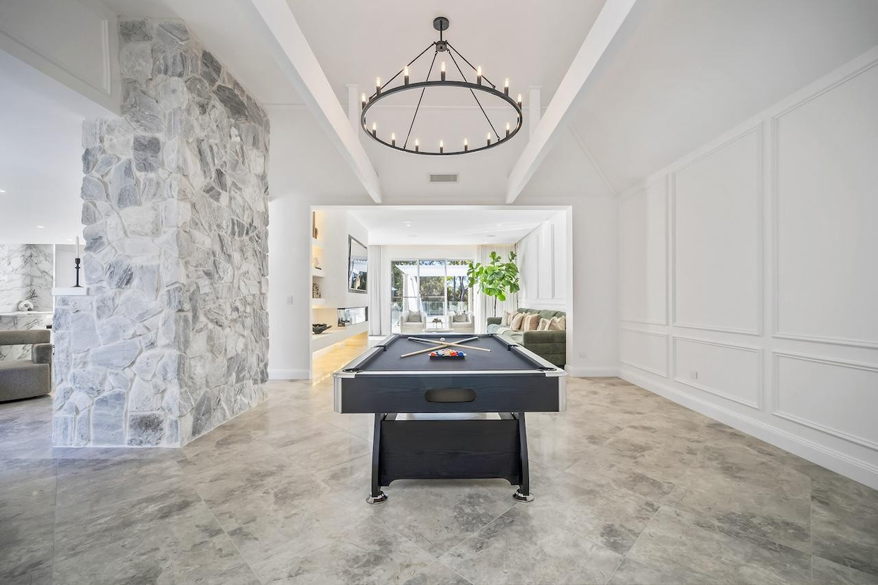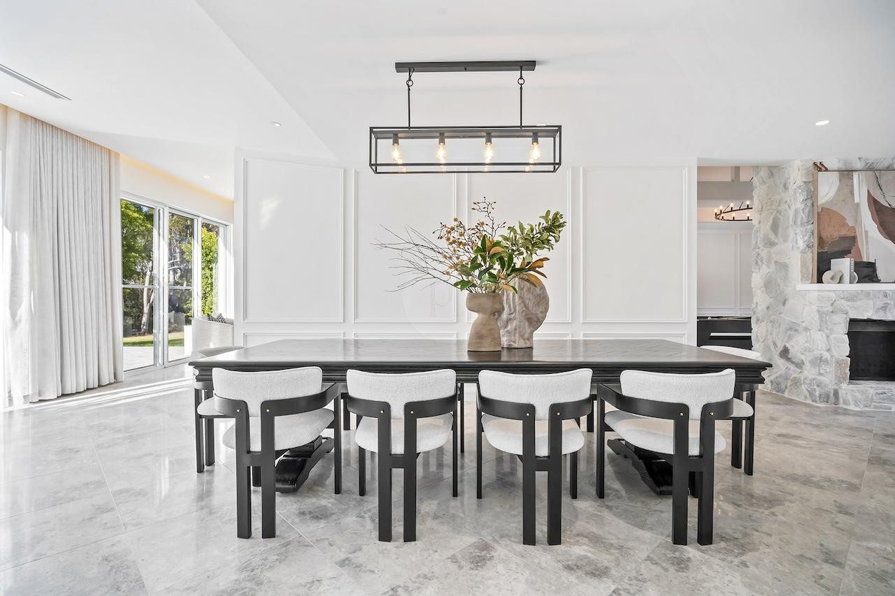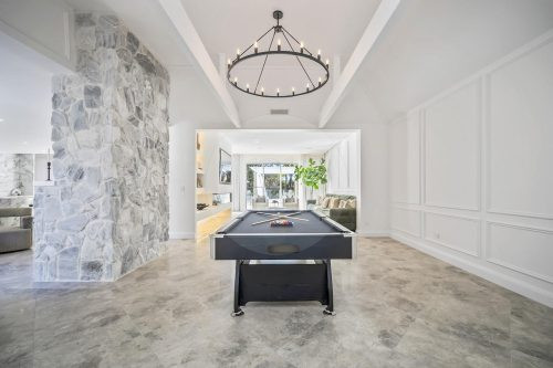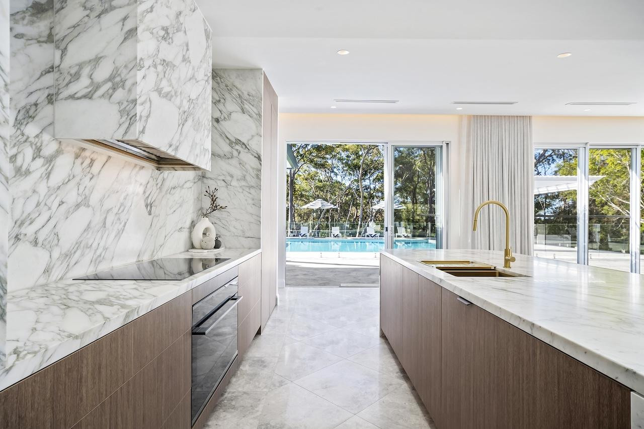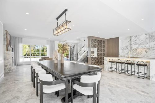 The outdoor area is an entertainer’s oasis, featuring a magnesium saltwater heated pool and a stylish alfresco area. The additional pool pavilion enhances the experience, complete with a cosy fireplace, full bathroom, and integrated fridge/freezer and appliances, providing a perfect backdrop for captivating visuals.