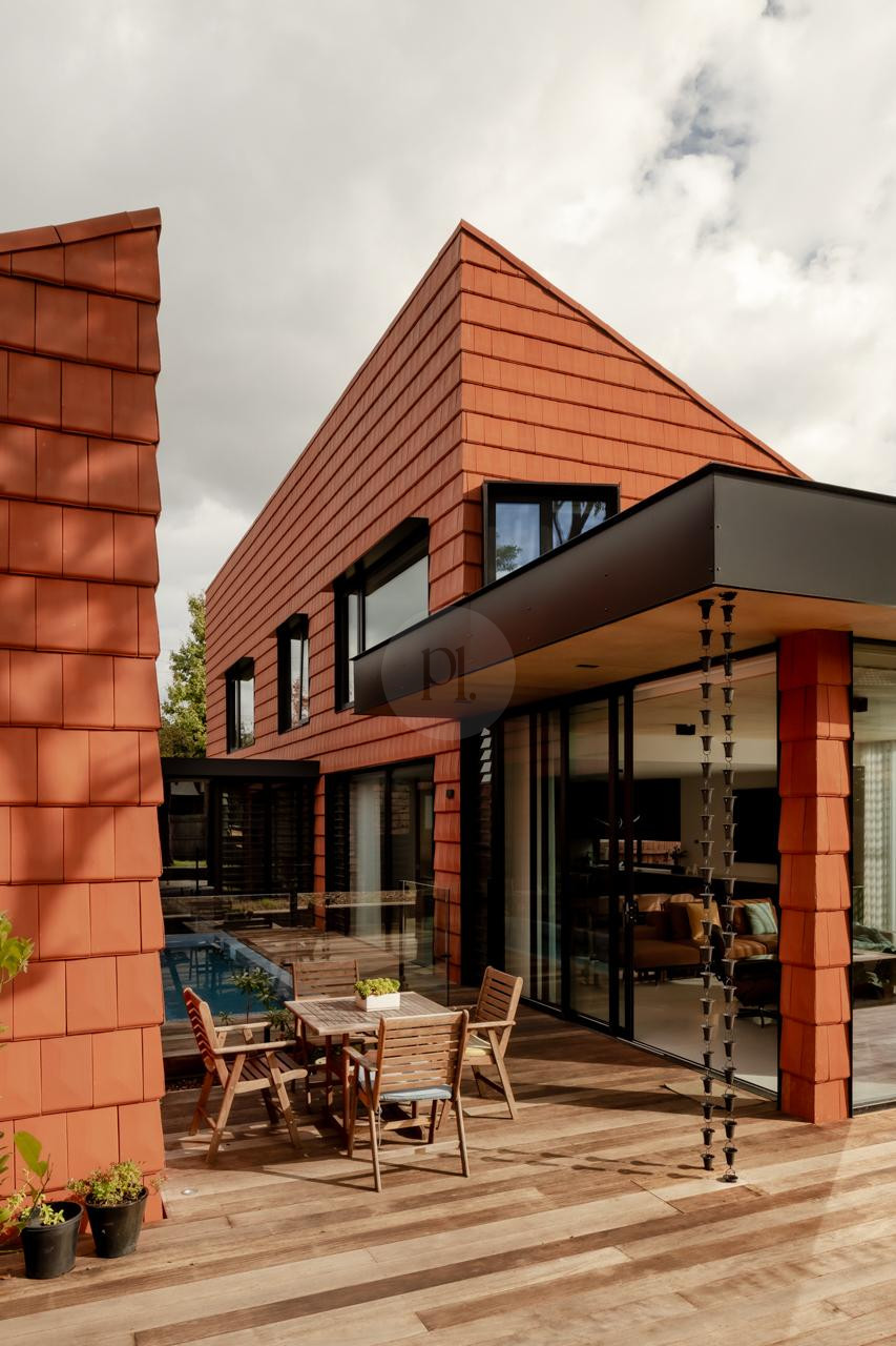 Outdoors, the house is cladded with a one-of-a-kind terracotta tile, creating a captivating feature wall. The expansive garden and backyard, complemented by a charming verandah and porch, perfect for alfresco shots. The heated pool, a central feature of the property, offers a luxurious touch and can be admired from various angles throughout the ground floor, providing a serene courtyard feel.