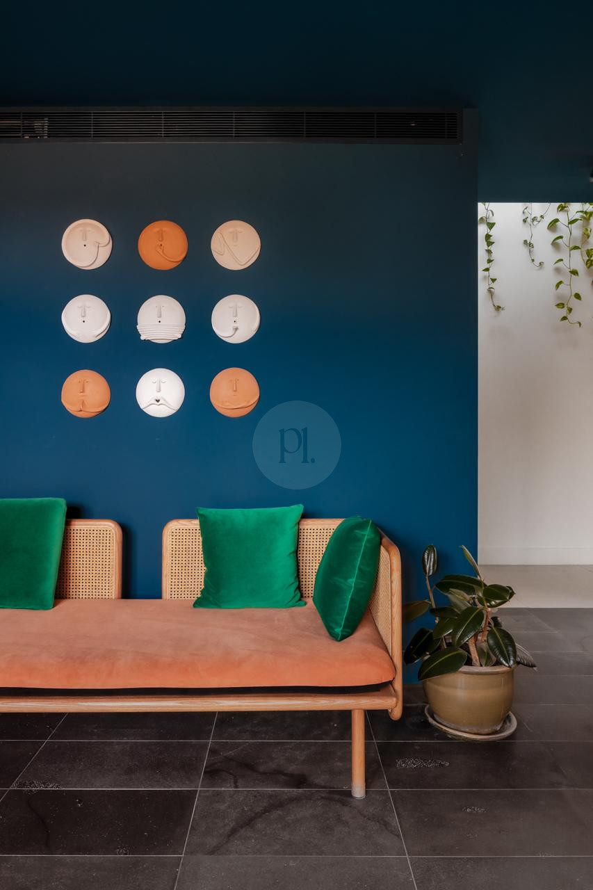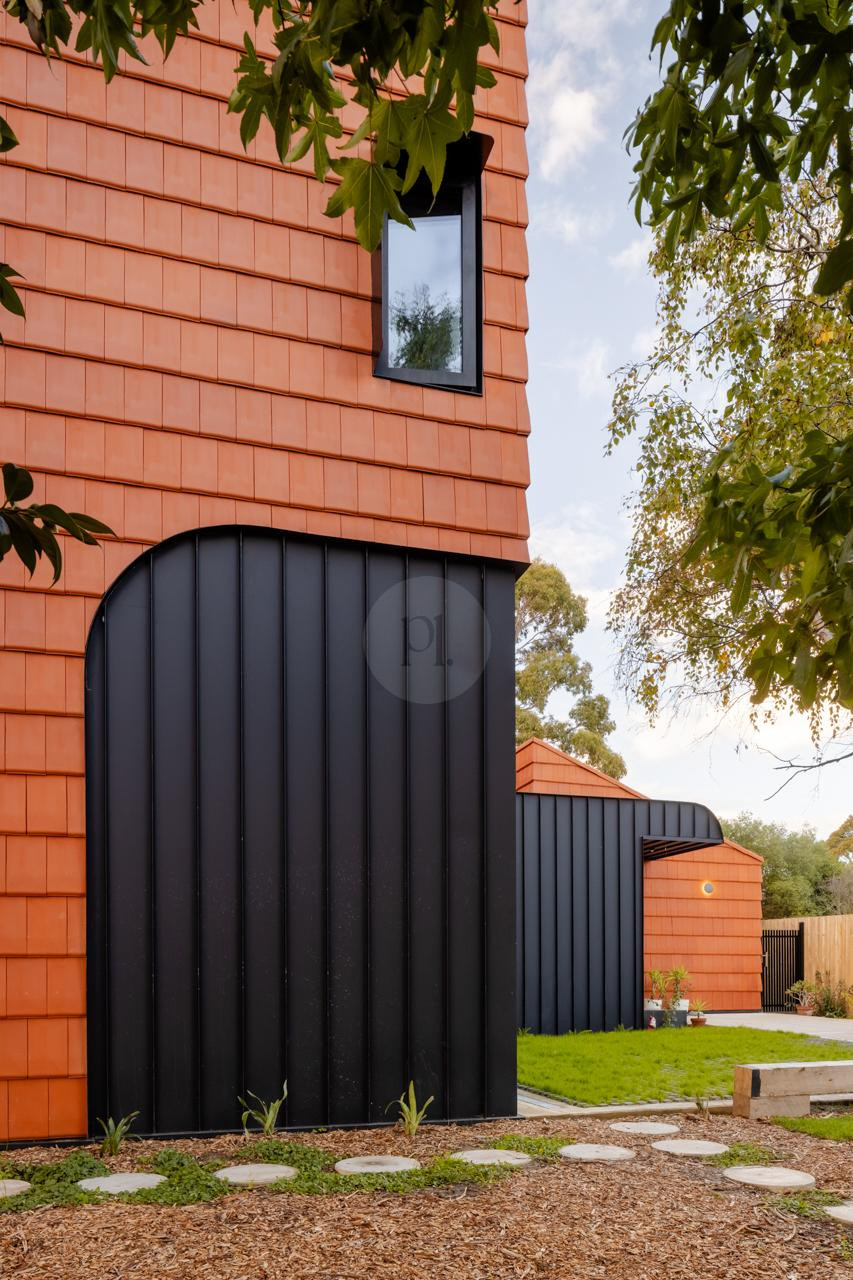 The smaller pod serves as an integrated granny flat, perfect for capturing intimate moments, while the larger pod houses spacious living areas designed for versatility. The living room exudes a warm and welcoming atmosphere, ideal for lifestyle shoots.