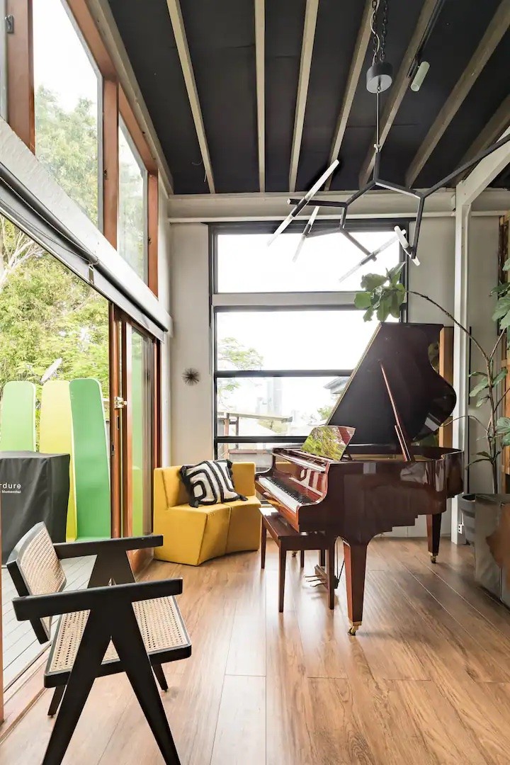 This home has 4 well sized bedrooms, a lovely sunroom and two bathrooms available for hire. Interior features include 4 meter high ceilings in the main living space, a polished ebony grand piano, modern black kitchen with gas cooktop, and a collection of artworks throughout each room.