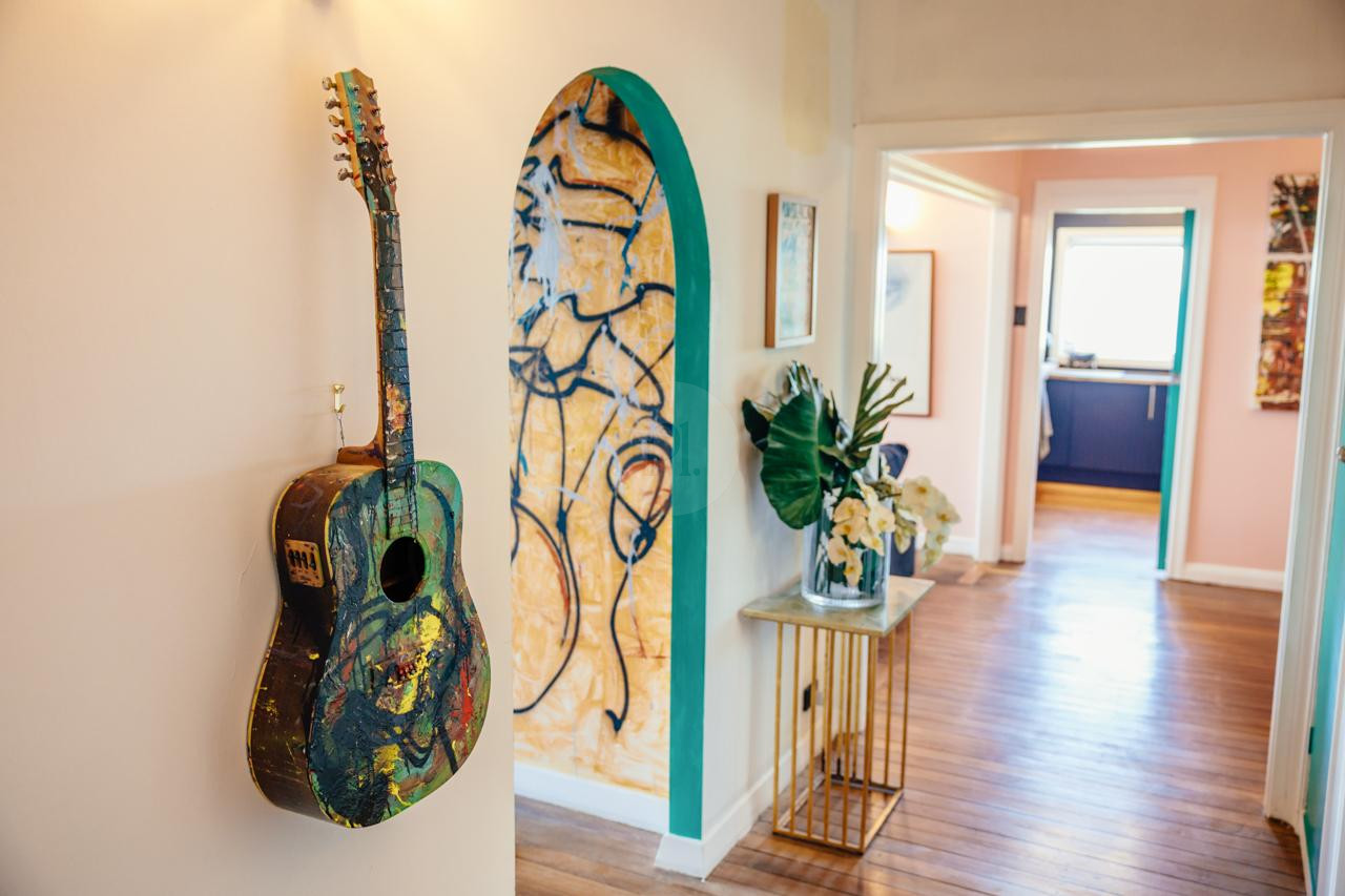 Every room has its own story to tell, from the character-filled bedrooms to the beautifully styled dining spaces, each enhanced by original artwork and curated 60s/70s décor. The fireplace sets an intimate, moody atmosphere for evening scenes, while the hand-painted mural walls add a striking artistic touch for standout content.