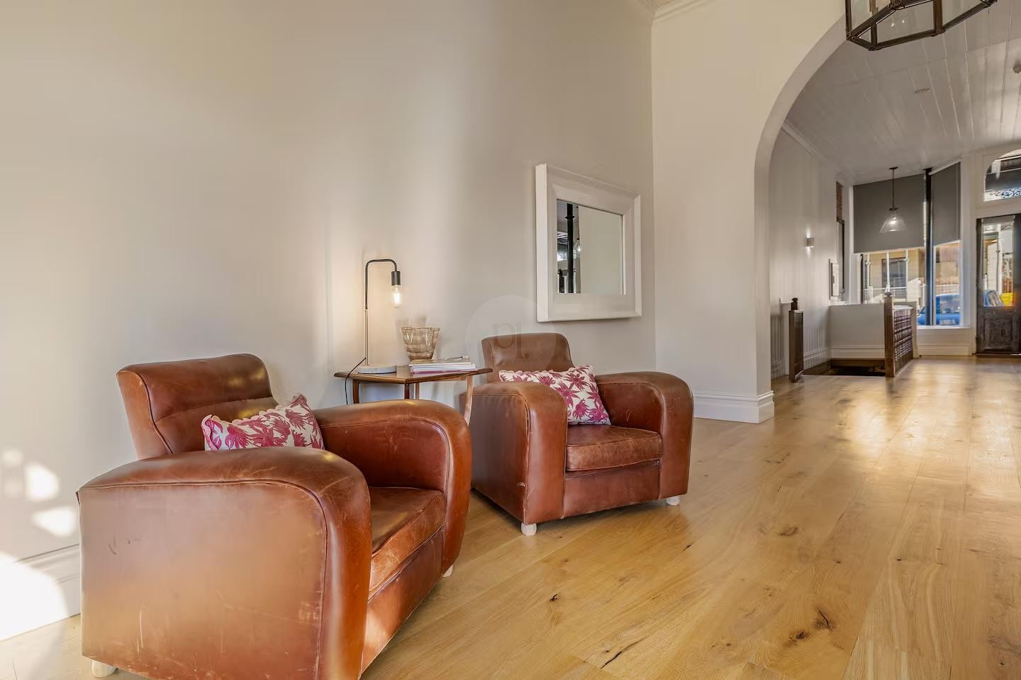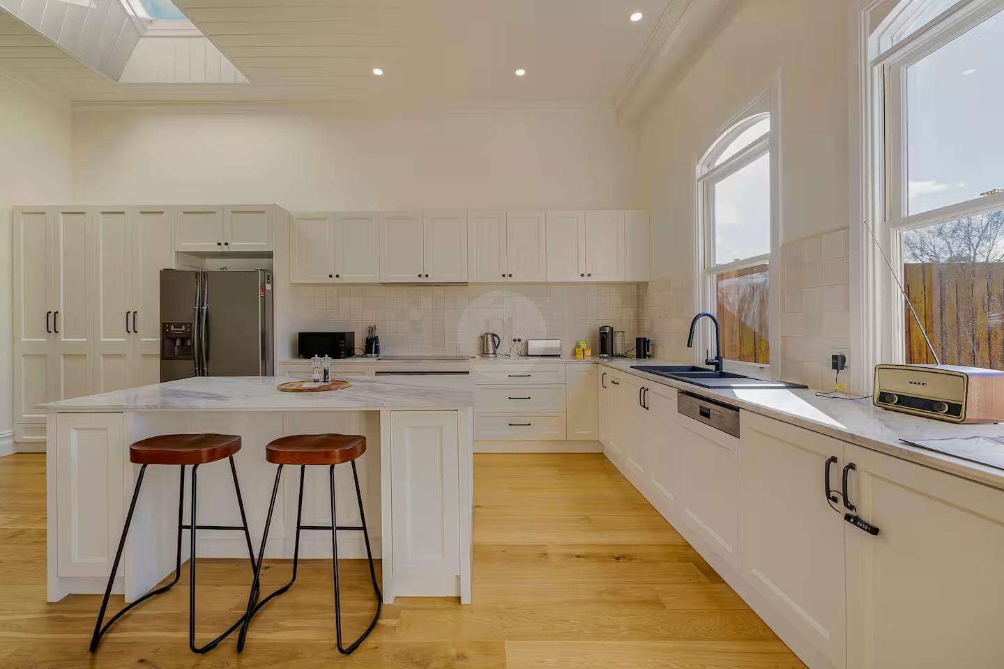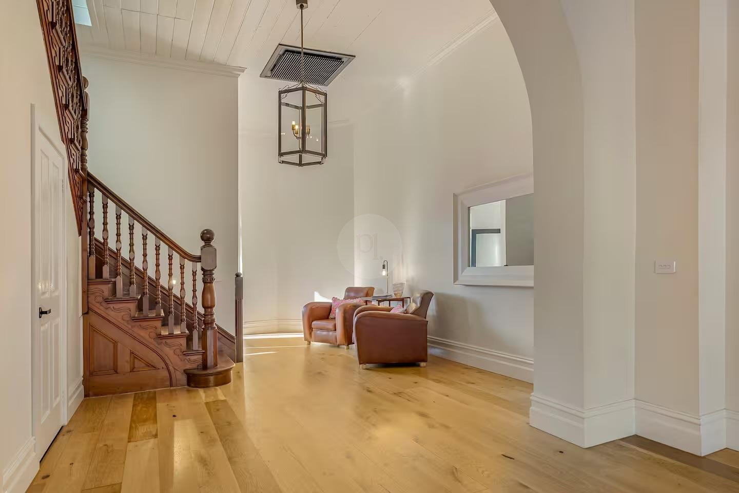 Inside, high ceilings and fine craftsmanship set the tone, with original features including handmade brick walls, heritage lacework, and an elegant staircase that brings character to every frame. Federation-style details are complemented by spacious living and dining areas, multiple bedrooms and bathrooms, and a well-equipped kitchen designed for both practicality and style. Skylights flood the interiors with natural light, enhancing the warm, inviting atmosphere.