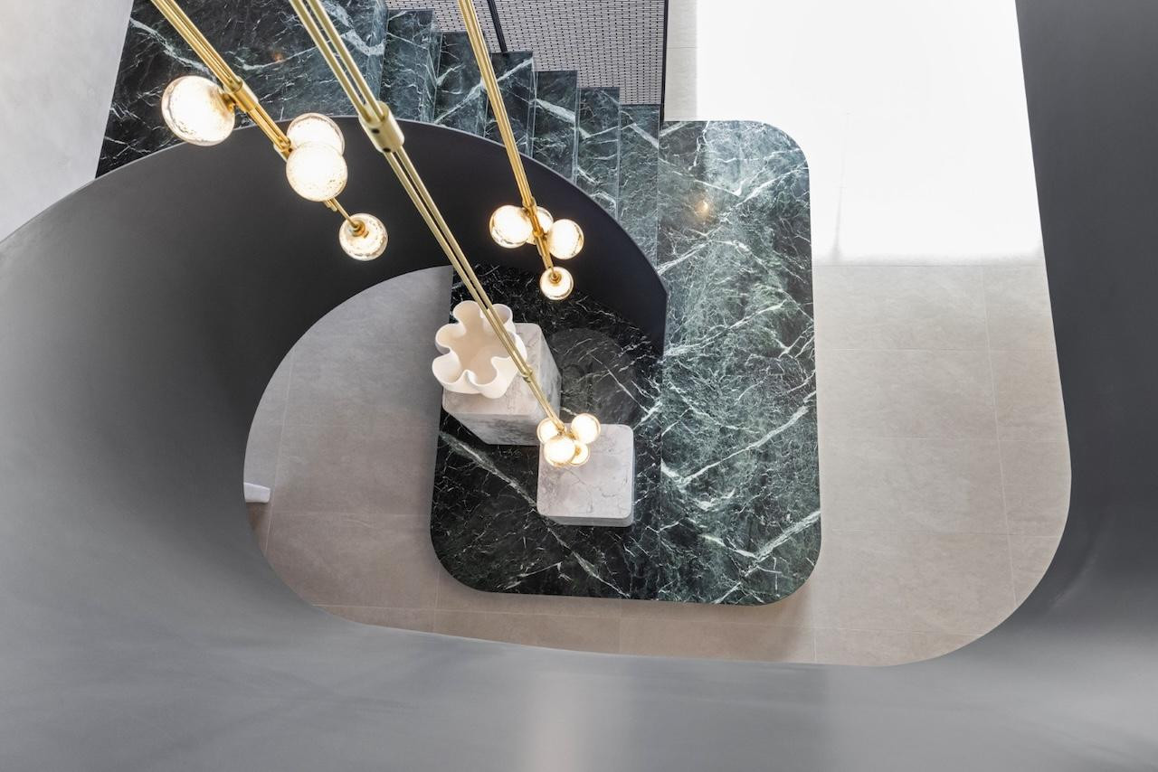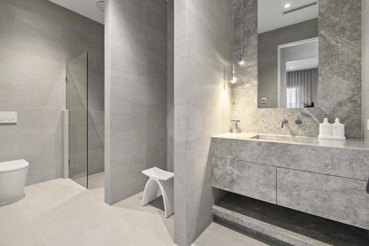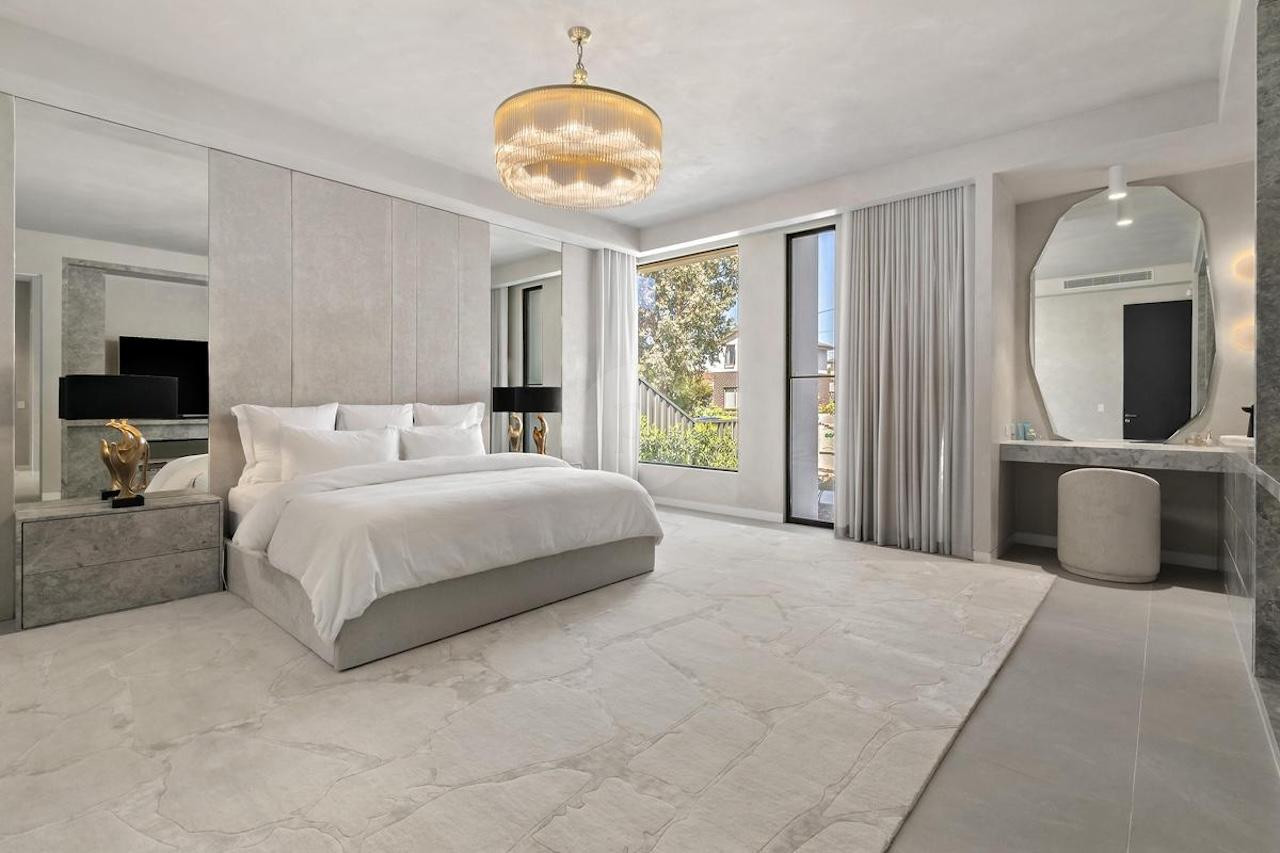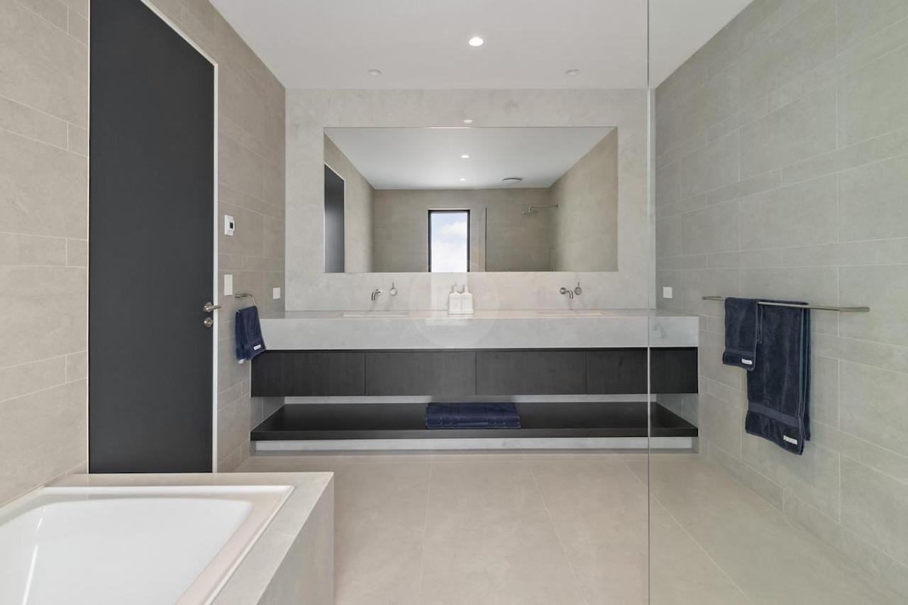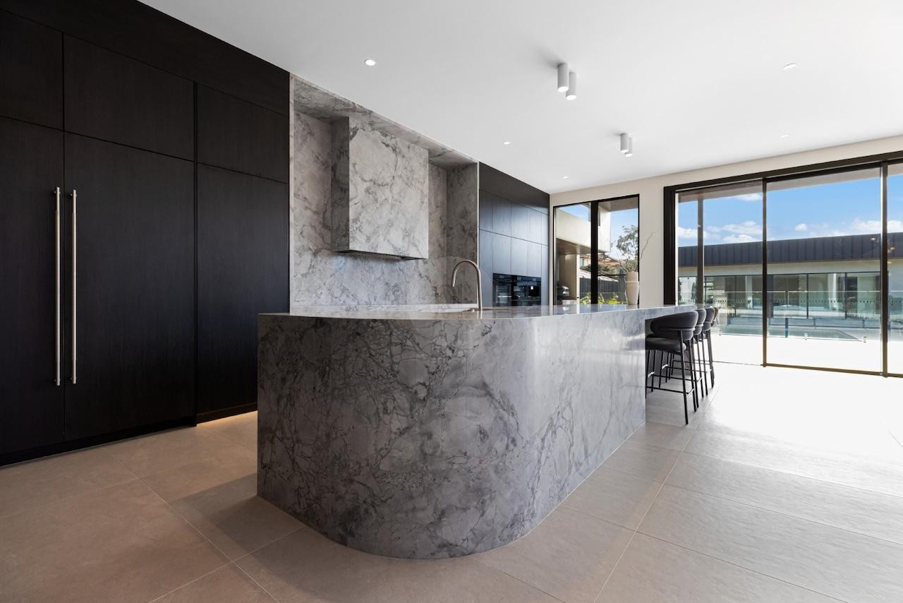 Step inside to discover expansive living spaces adorned with layered natural stone and polished marble. The interiors are bathed in natural light thanks to large windows that seamlessly connect to beautifully landscaped outdoor areas. The colour palette showcases brushed metals, striking marble, strong neutrals, and textured wall treatments, all contributing to a minimalist elegance that will leave a lasting impression.