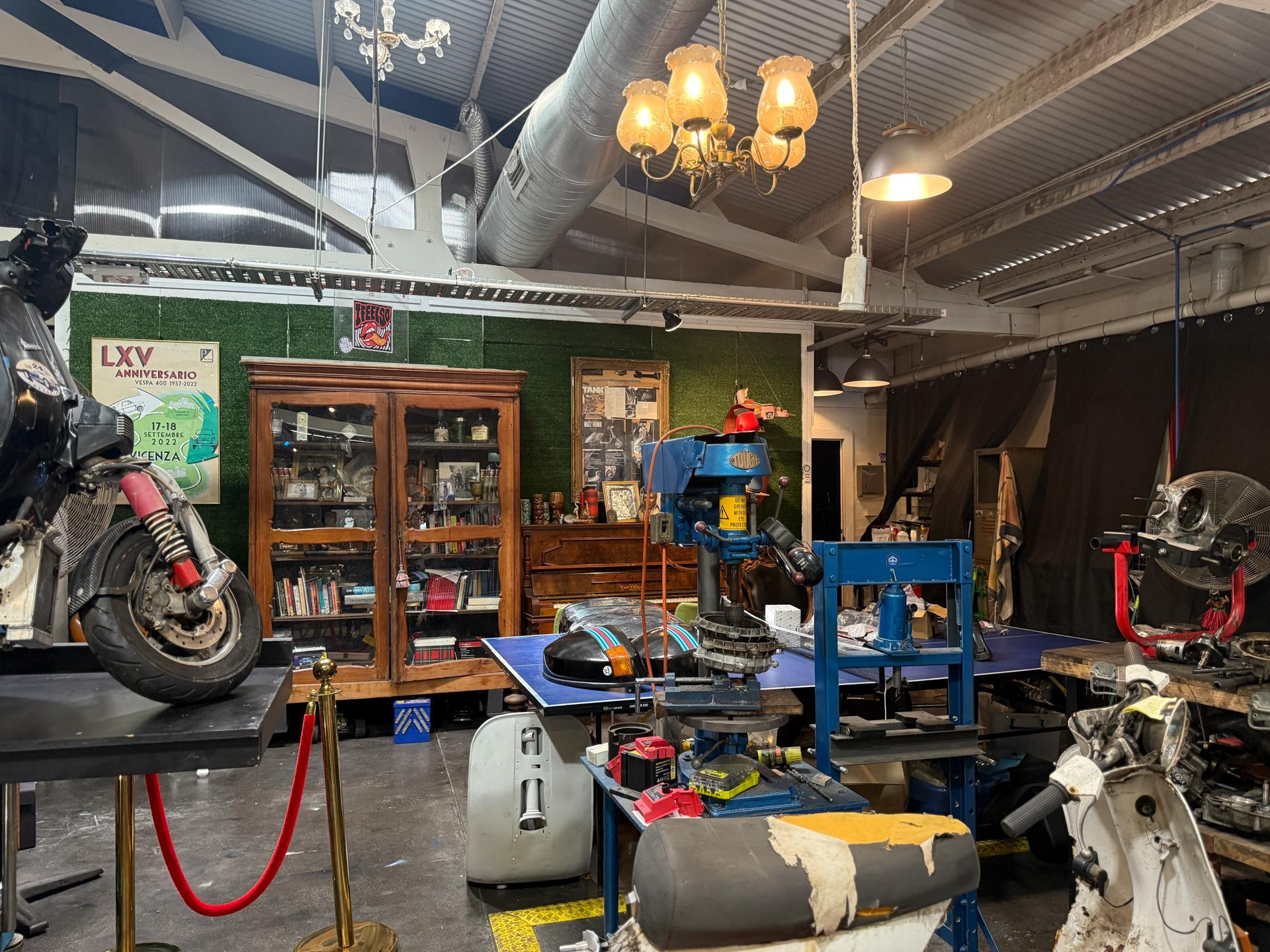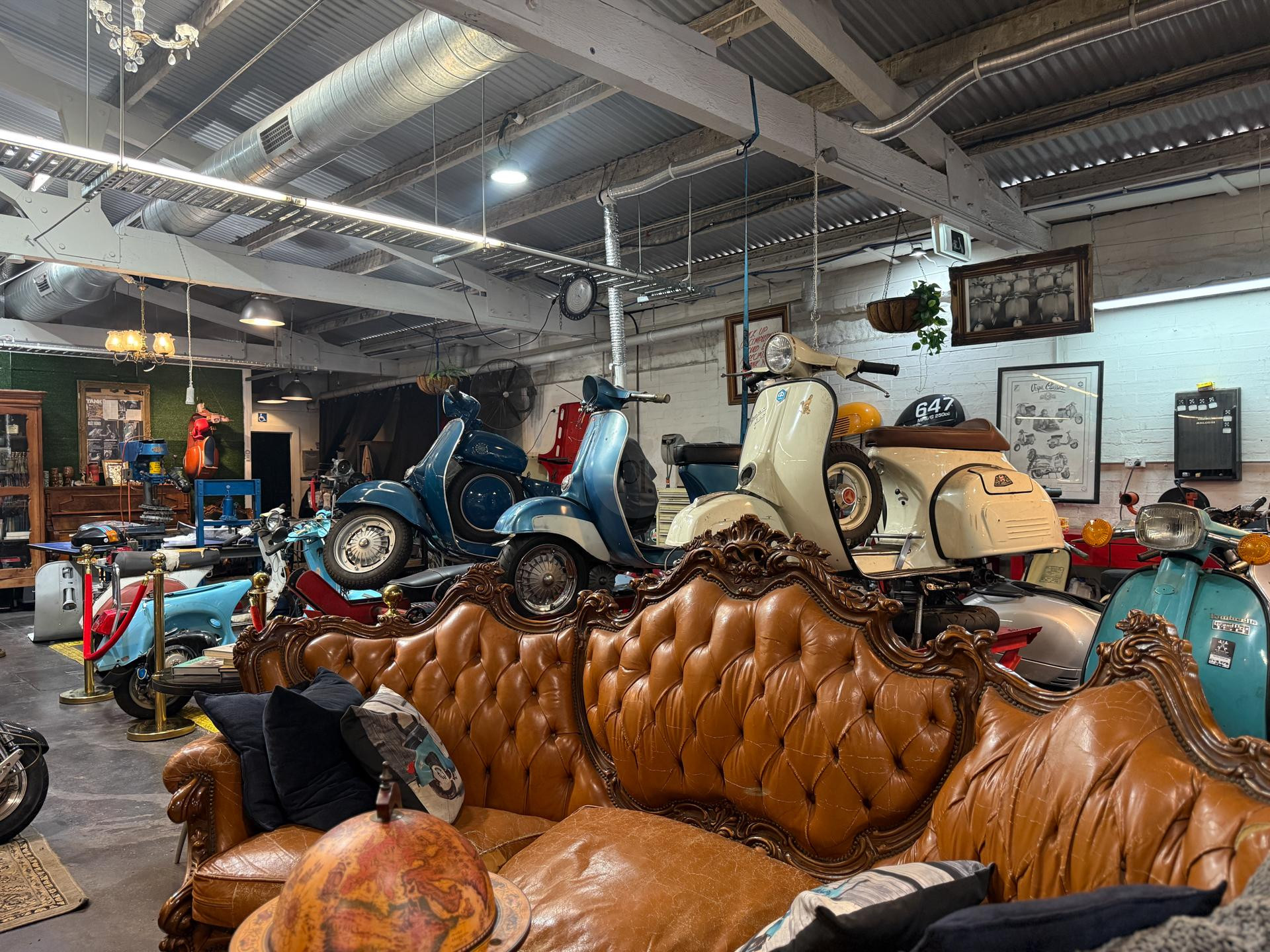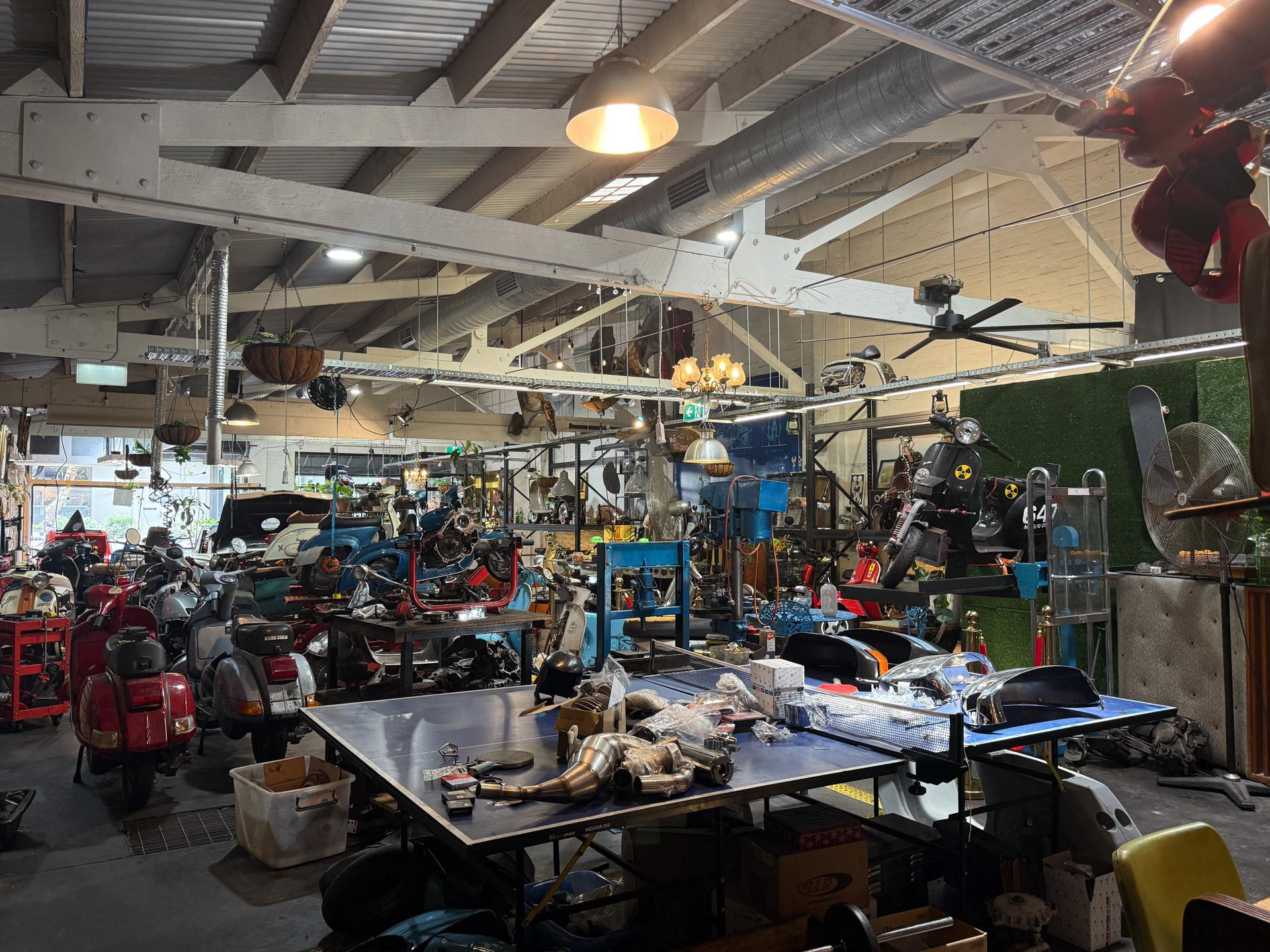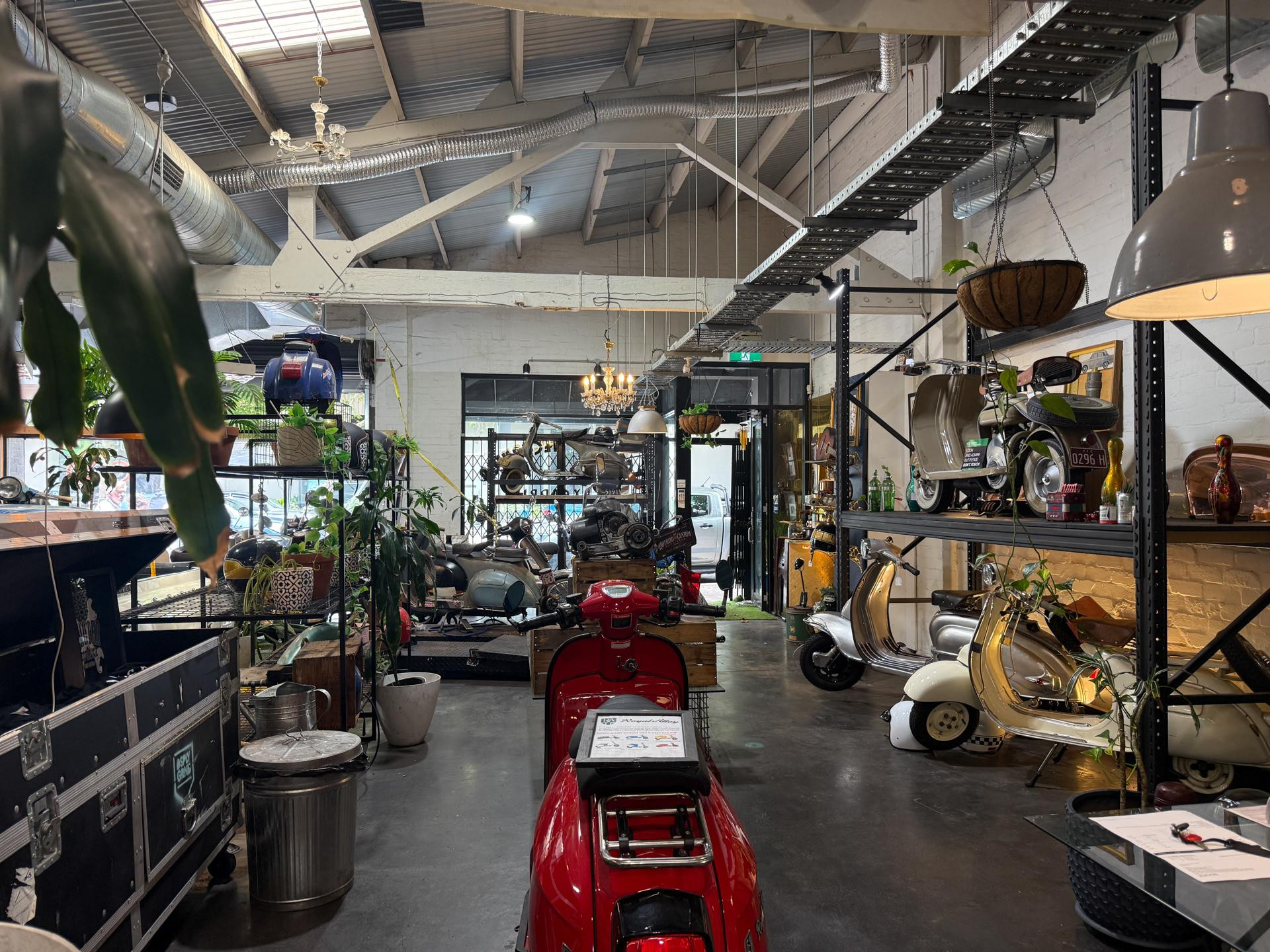 Welcome to Due Ruote, a unique vintage and late-model scooter workshop located in Alexandria, Inner City Sydney. This character-filled space offers a distinctive location for photoshoots, filming, TV commercials, and video production, blending old-world charm with an authentic mechanical workshop setting.