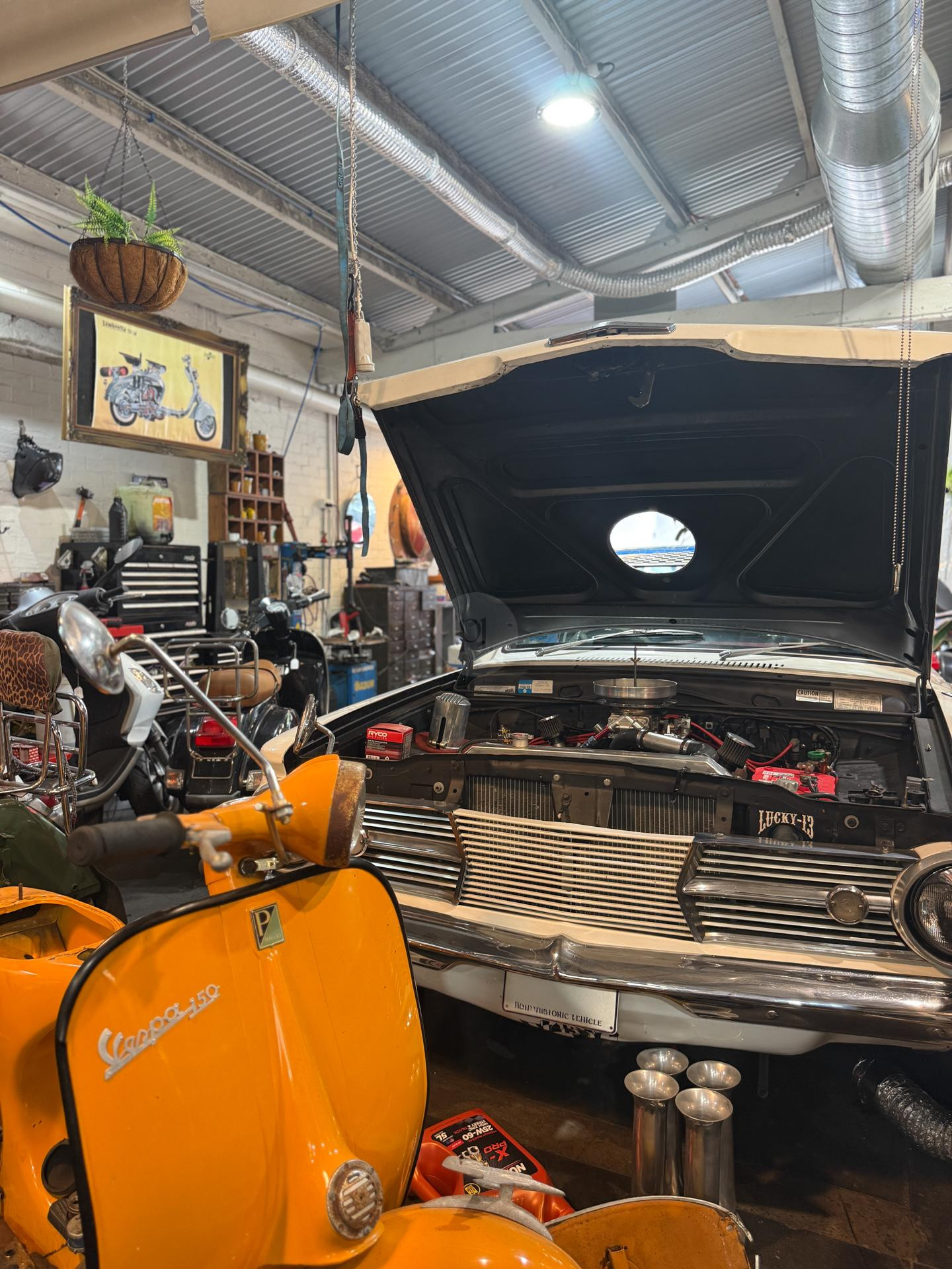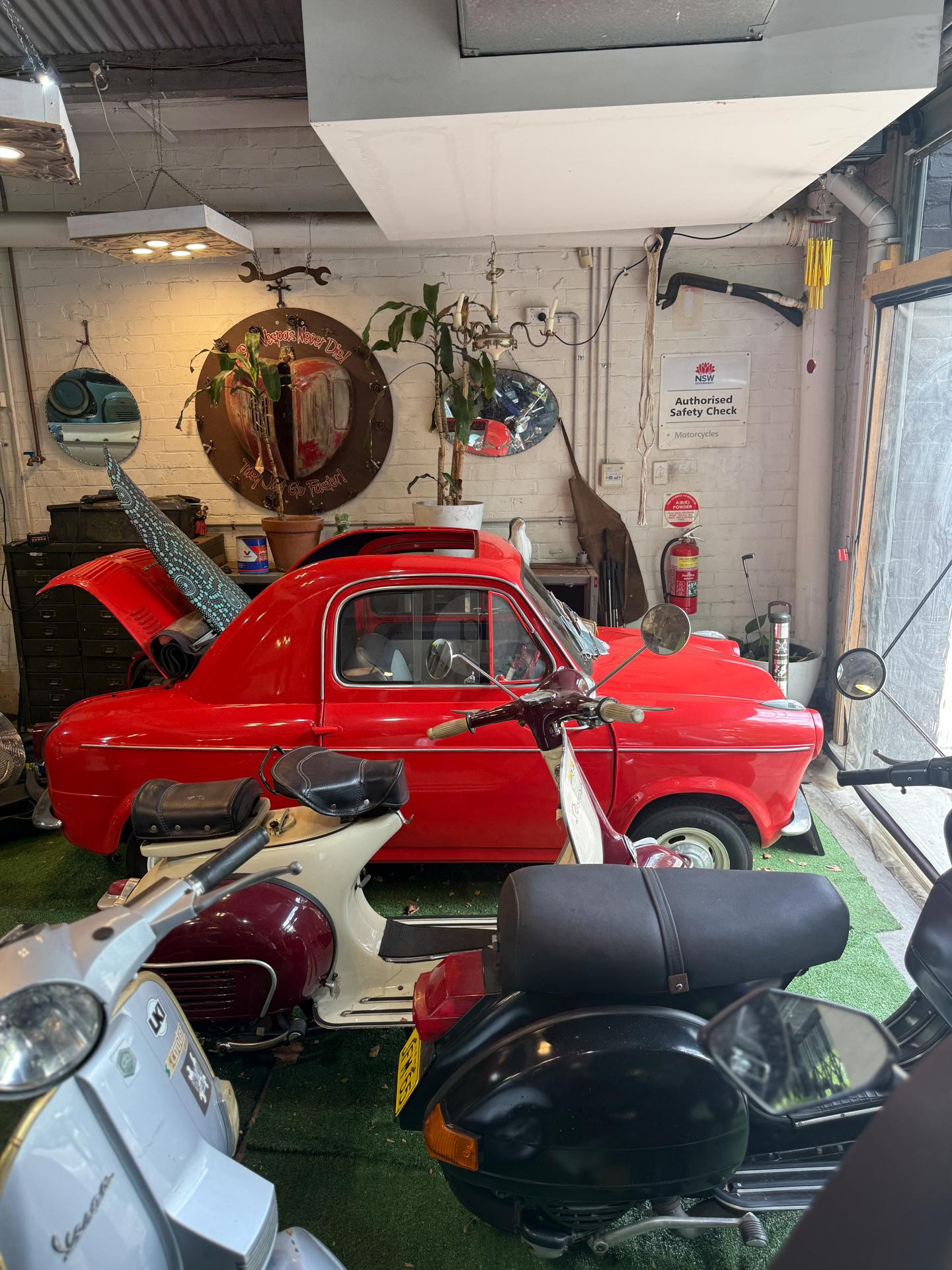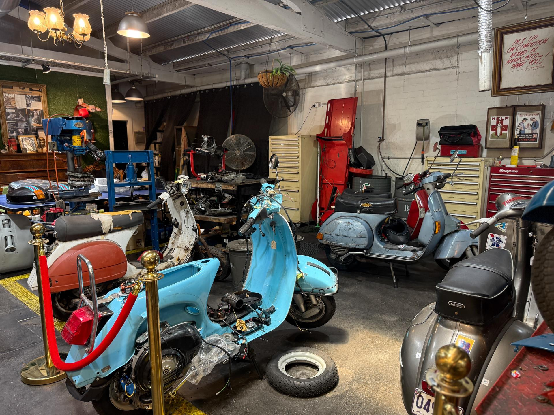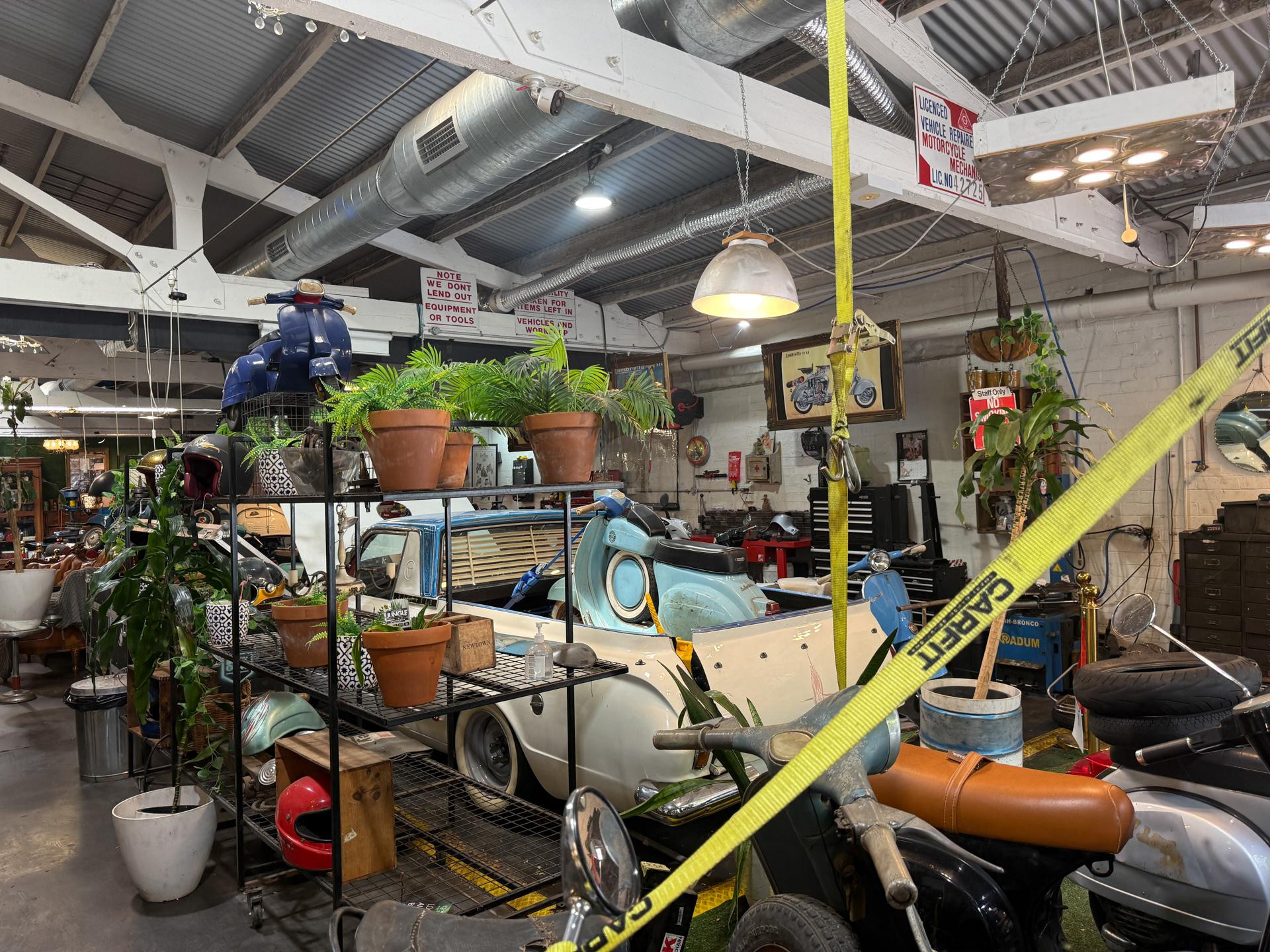 Welcome to Due Ruote, a unique vintage and late-model scooter workshop located in Alexandria, Inner City Sydney. This character-filled space offers a distinctive location for photoshoots, filming, TV commercials, and video production, blending old-world charm with an authentic mechanical workshop setting.