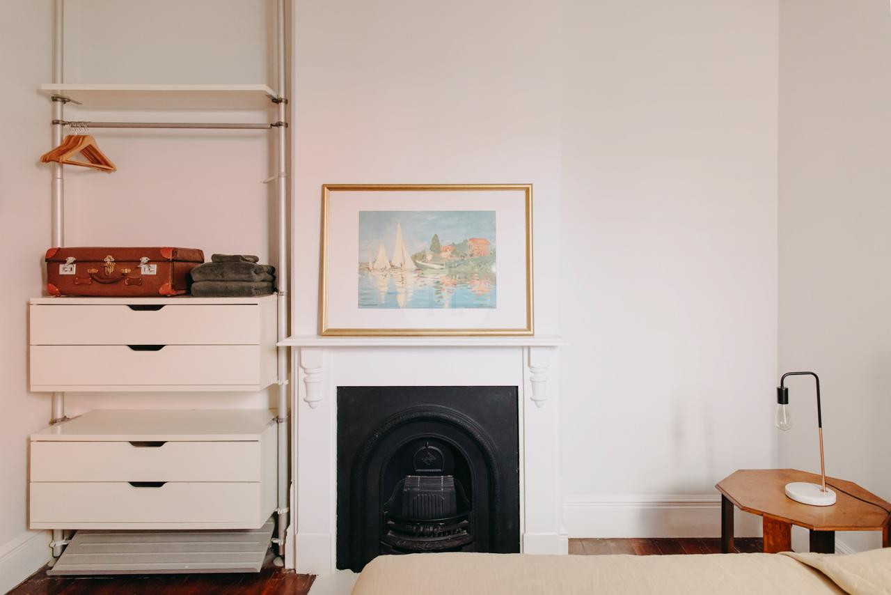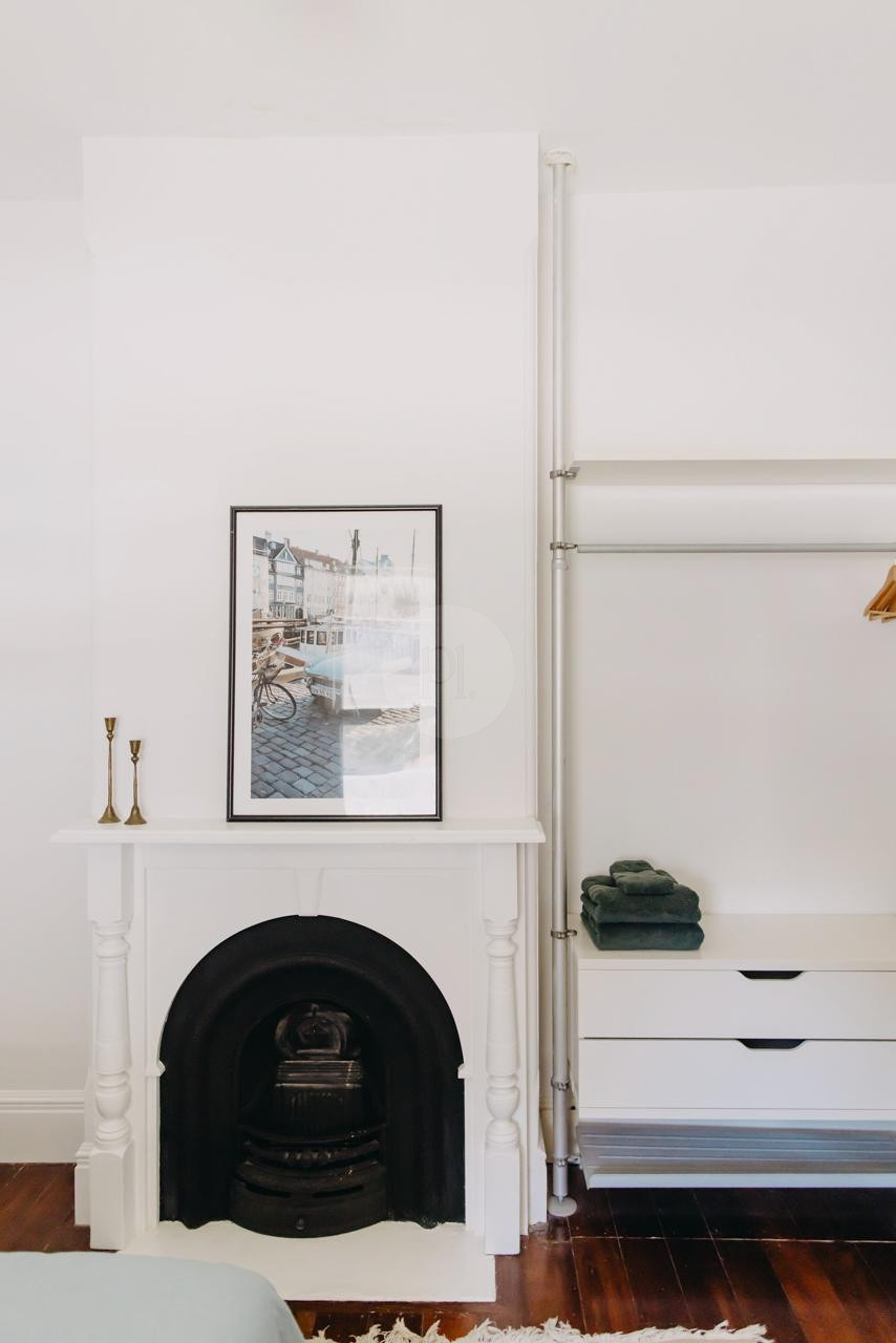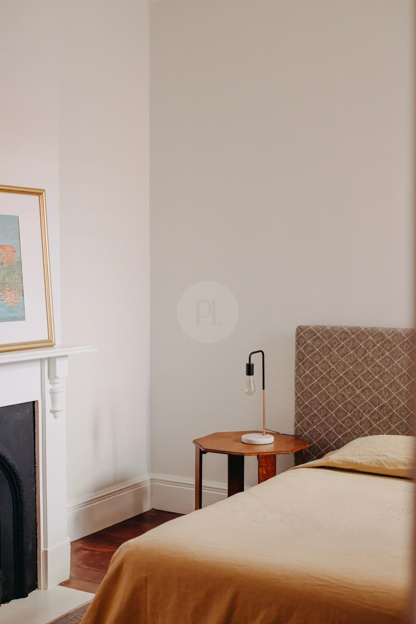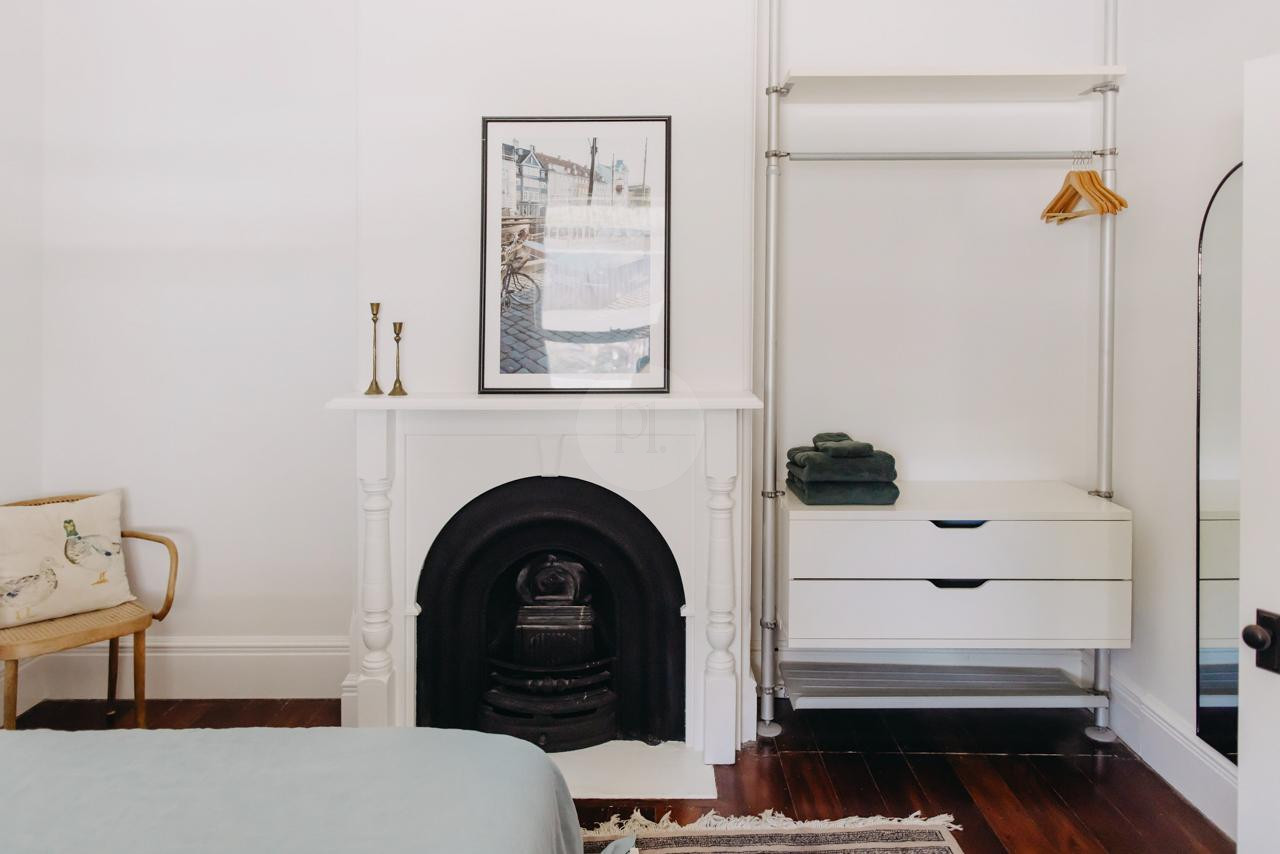 Inside, the spacious open-plan living area flows effortlessly into a secluded private garden, providing versatile indoor–outdoor spaces for capturing lifestyle, family, or fashion content. Original timber floorboards and whisper-white walls create a bright, inviting atmosphere, while the original fireplaces in the main bedrooms and dining room add heritage warmth and character.