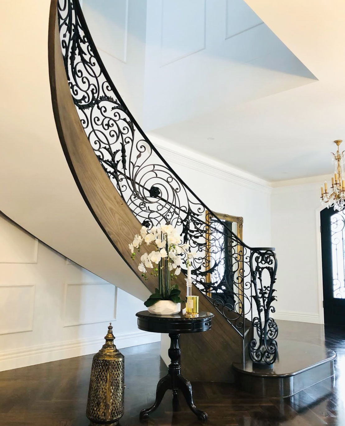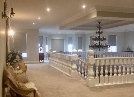 As you enter, you’ll be captivated by the elegant curved stairs adorned with an eye-catching balustrade. The hardwood parquetry flooring flows seamlessly throughout the home, enhancing the contemporary yet classic vibe. The high ceilings, including a coffered ceiling in the lounge area, create an expansive atmosphere perfect for capturing breathtaking visuals.