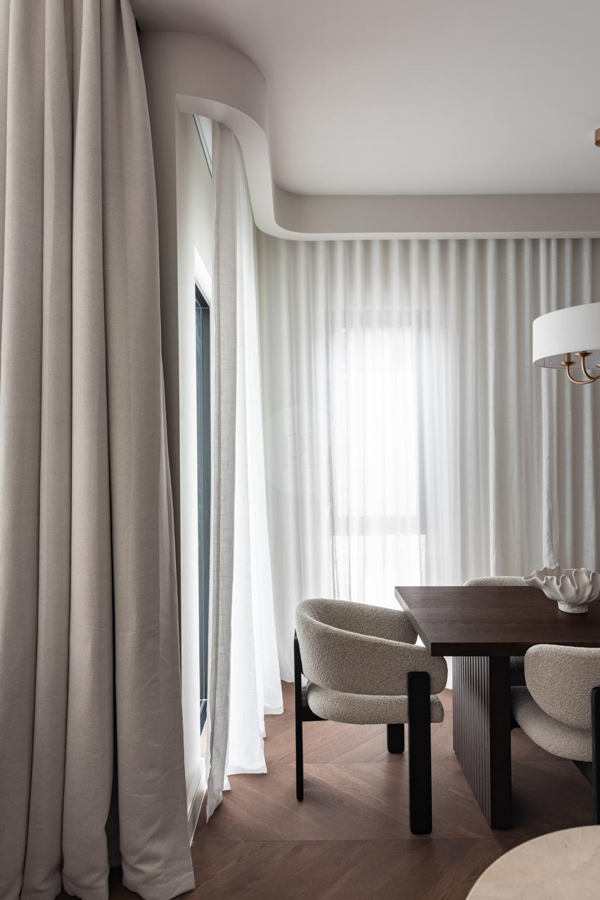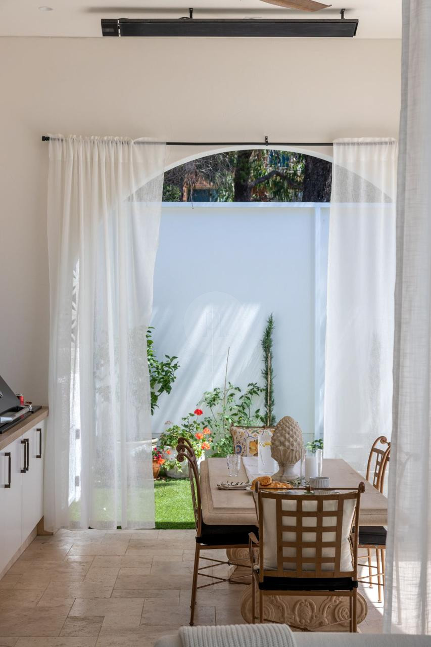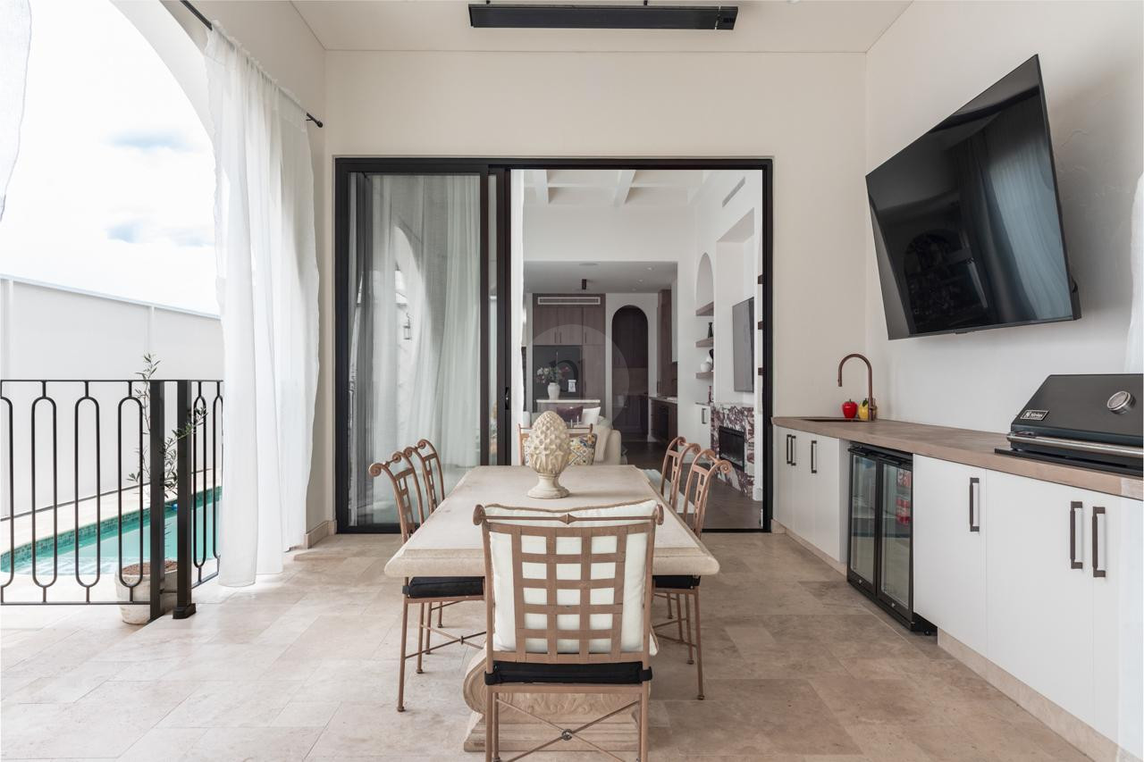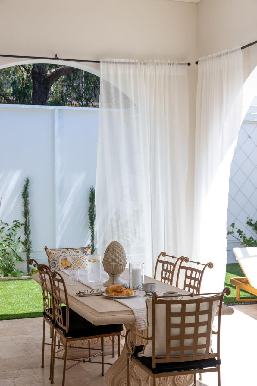 From the moment you arrive, Fidèle makes a striking impression. A curved entry framed by breezeblocks and a cobblestone driveway sets the tone, leading into interiors defined by calm neutrality and timeless Mediterranean influence. At the heart of the home sits a central courtyard, complete with a tranquil water fountain, an ideal setting for intimate lifestyle, wellness, or editorial scenes.