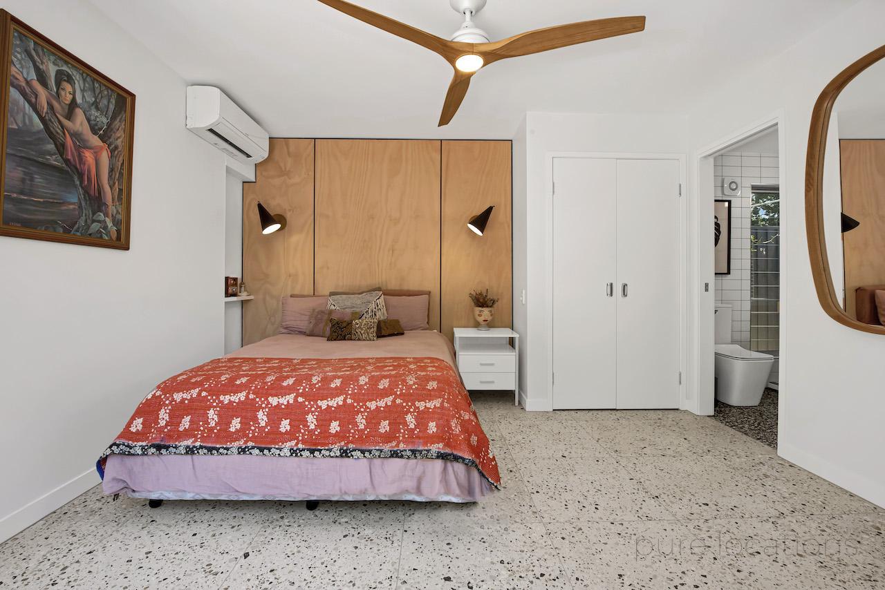 From the bright orange front gate, to the green rendered wall, green tiles in the laundry and kitchen and olive wallpaper in the powder room, this home does not shy from pops of colour. This mid century modern home is a fantastic photoshoot location for creative agencies wanting to bring a 60s vibe to their shoots or just wanting to add some colour to their creations. There is a range of diverse backdrops to choose from within the home and the courtyard. Each bedroom within the home has a point of difference to it. There is a round above ground pool in the courtyard to the centre of the home which has a breeze block wall behind it. This retro feel home will add a creative flare to your next production.