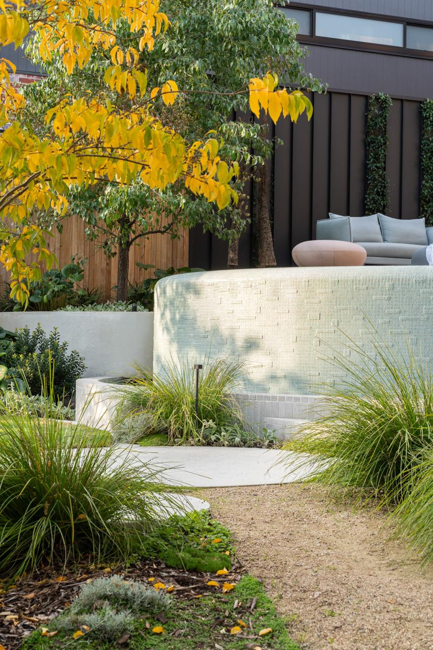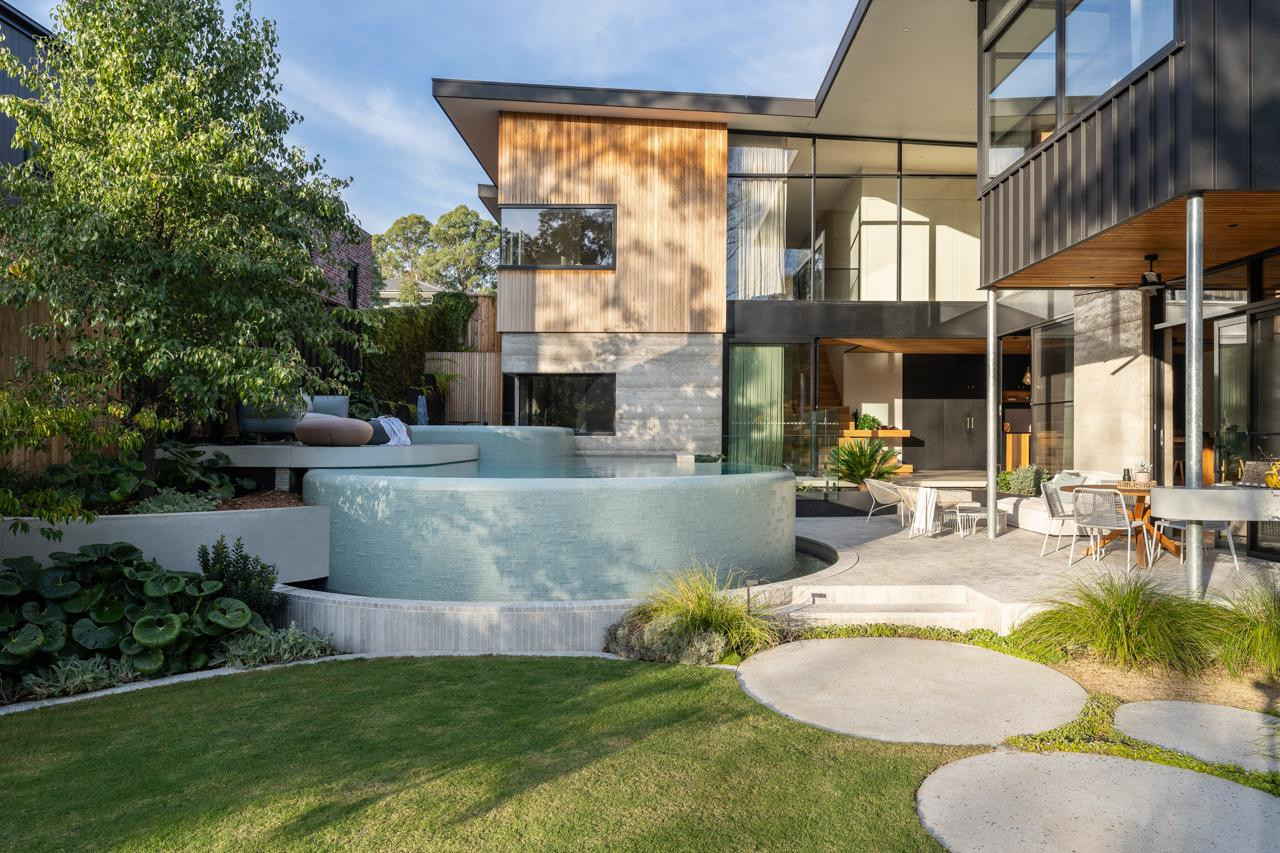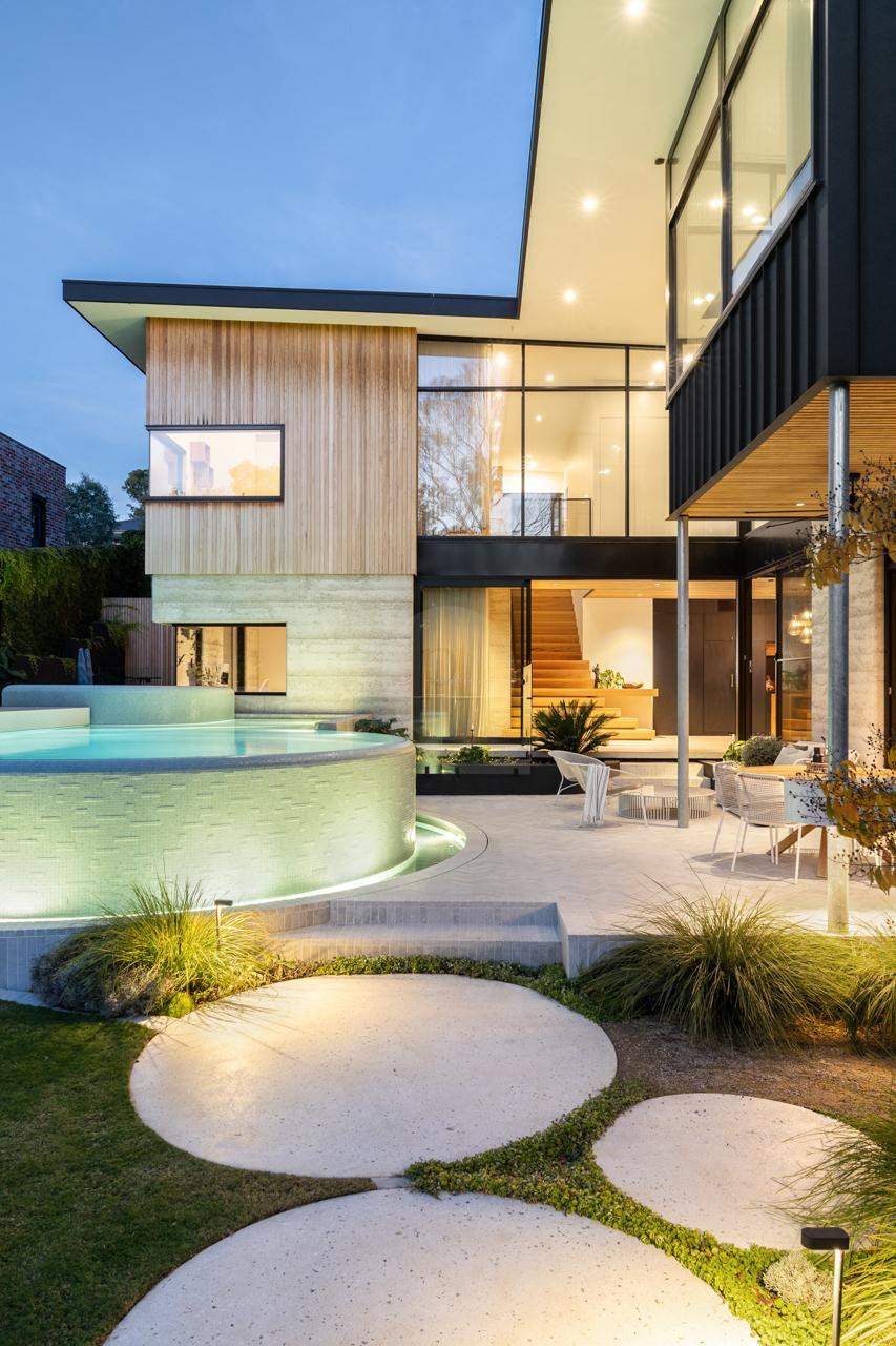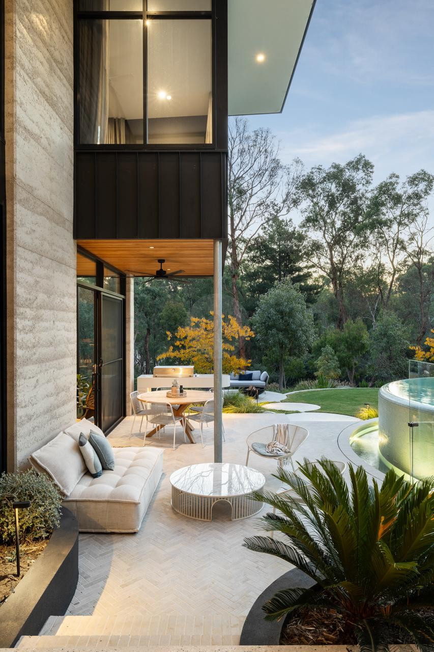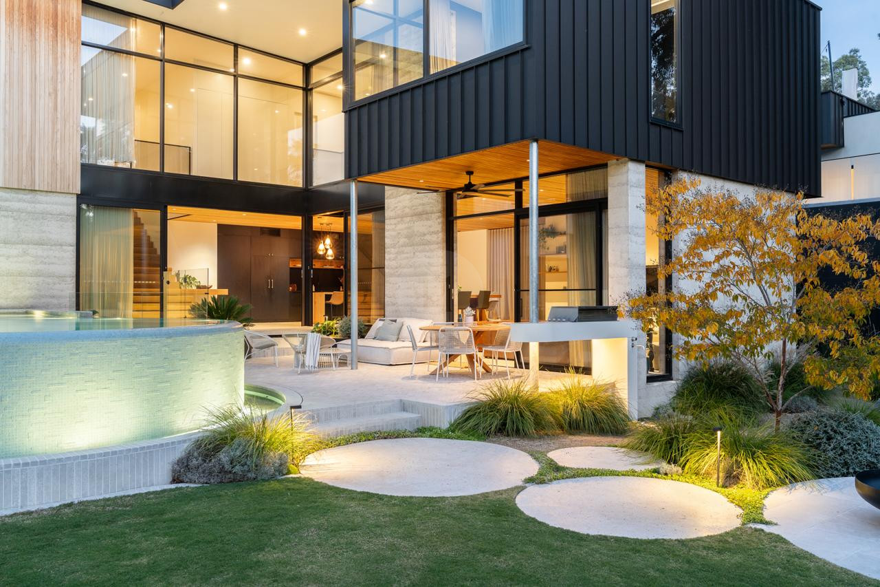 Outdoors, Halo House truly comes into its own. The award-winning swimming pool and spa anchor the outdoor living space and create a visually striking focal point. Established gardens offer layered textures and privacy, while the BBQ area and fire pit provide additional shoot-ready settings that transition seamlessly from day to night.