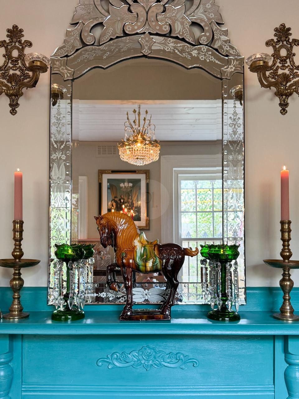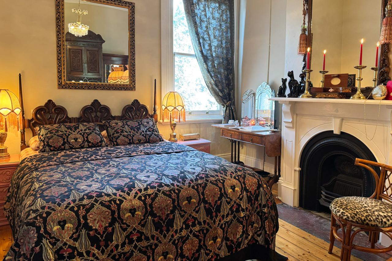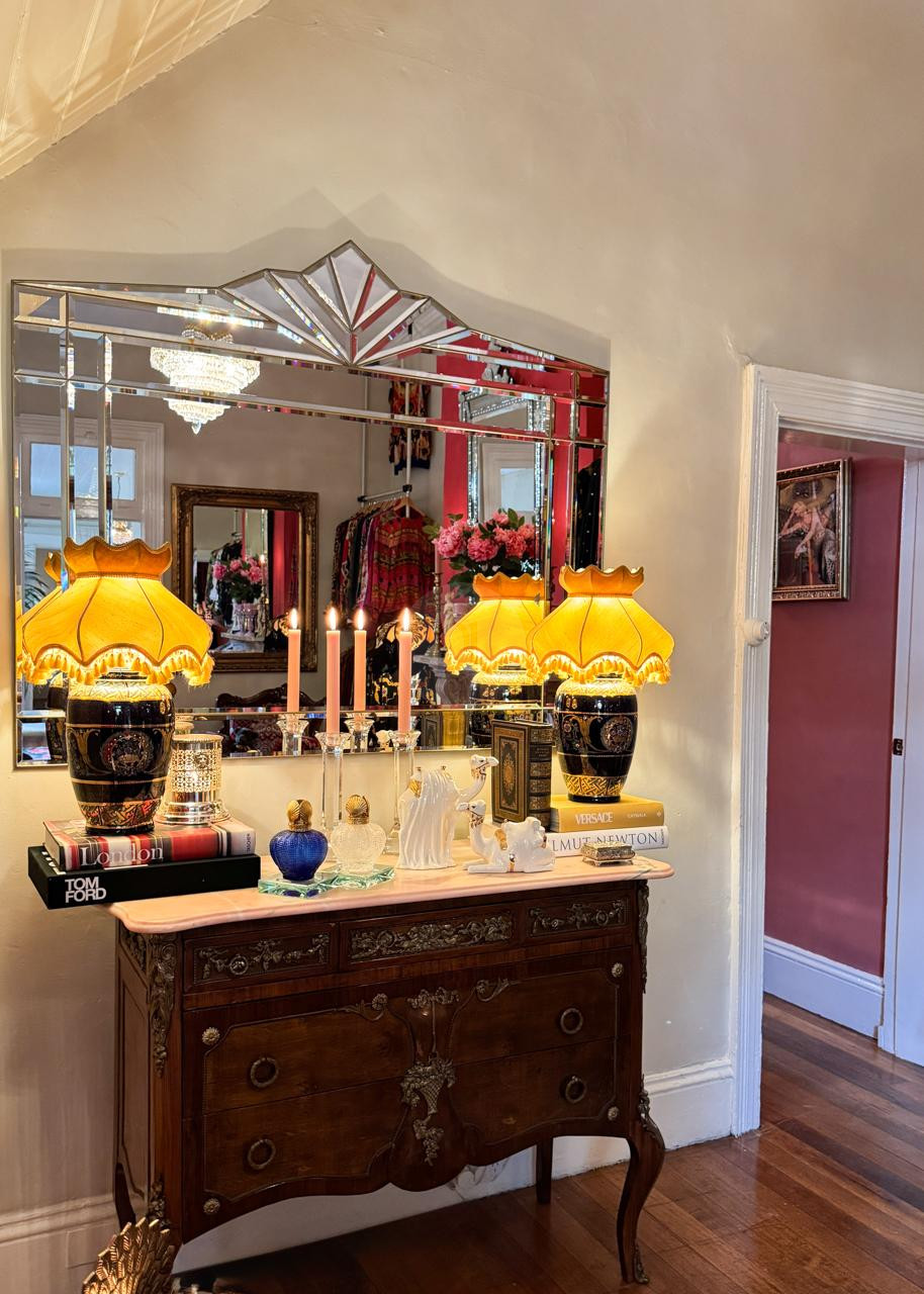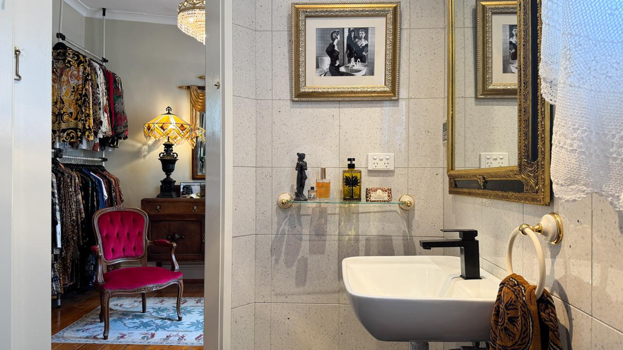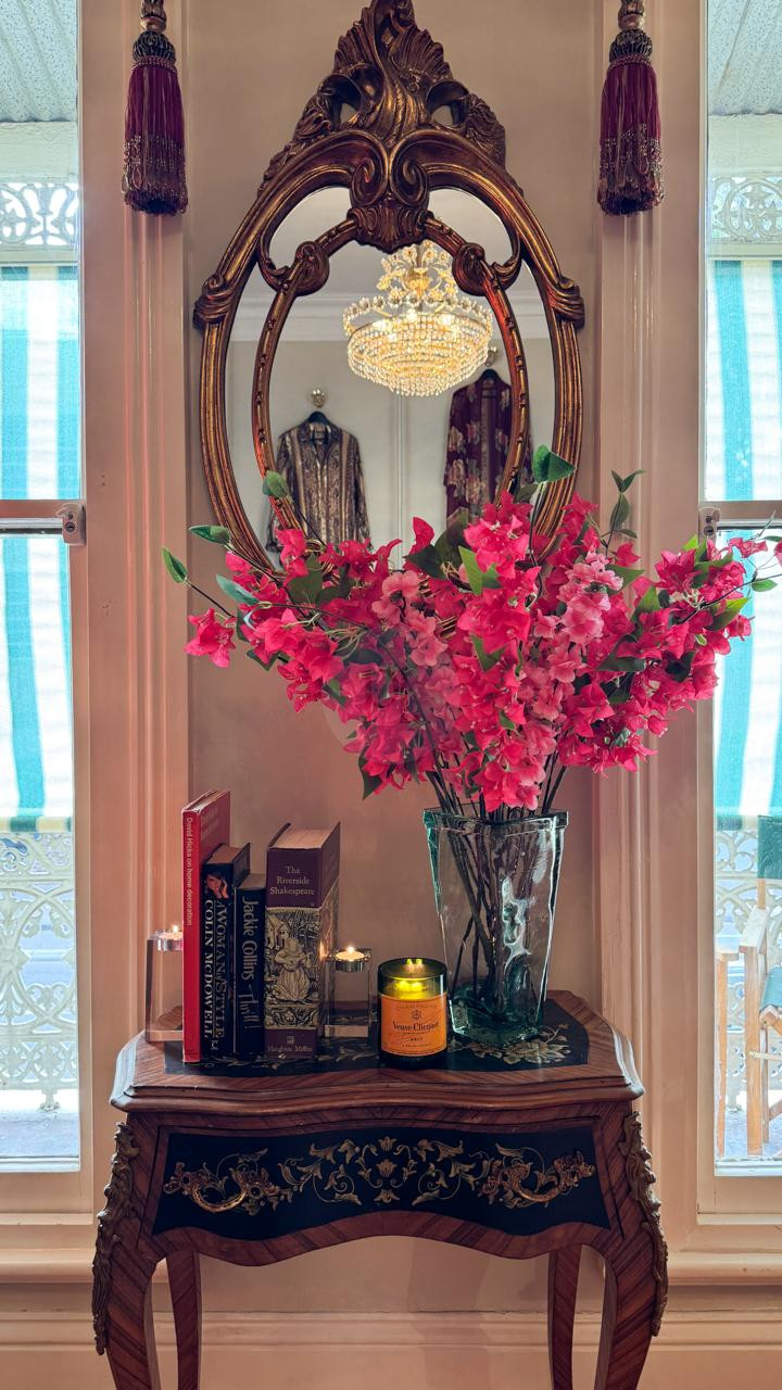 Step into a world of vintage elegance at this two-storey Victorian gem nestled in the heart of Collingwood, Melbourne. This property is a true jewel box, showcasing a striking palette of reds, mirrors, and antique glamour. Adorned with vintage photography in ornate frames, the walls are a canvas of artistry, while antique mirrors beautifully reflect light and shadow, enhancing the cinematic atmosphere.