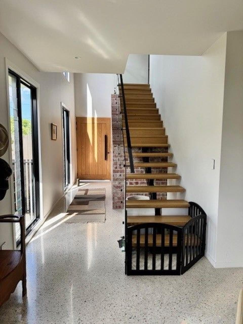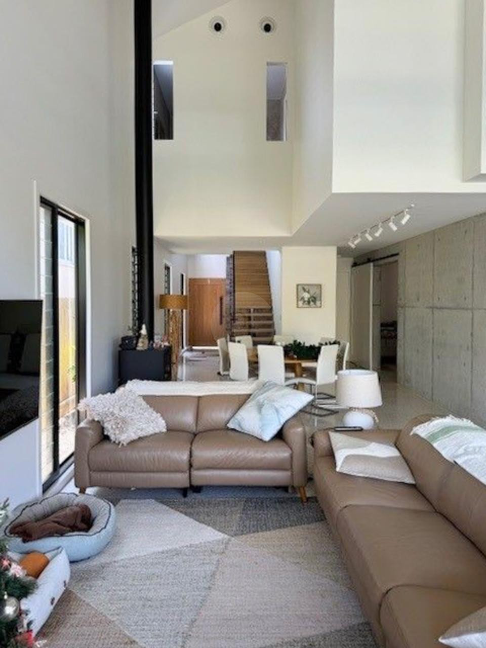 The interior showcases exquisite details, including a feature brick wall that flows from the exterior to the interior, and American Oak veneer joinery that adds warmth and elegance. The living space is designed for versatility, with a large dining area and a state-of-the-art kitchen, ideal for capturing dynamic scenes.