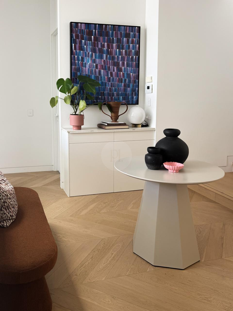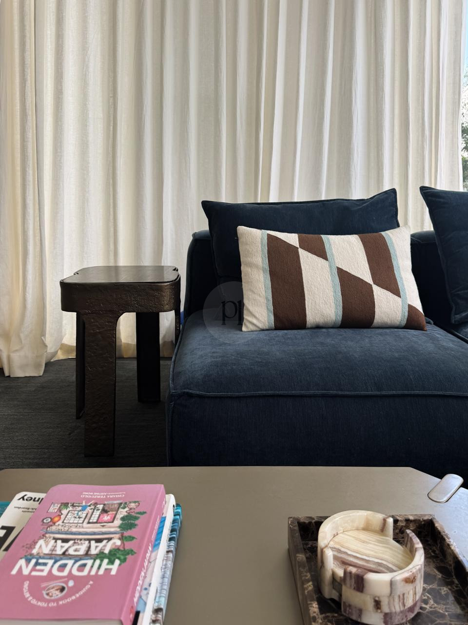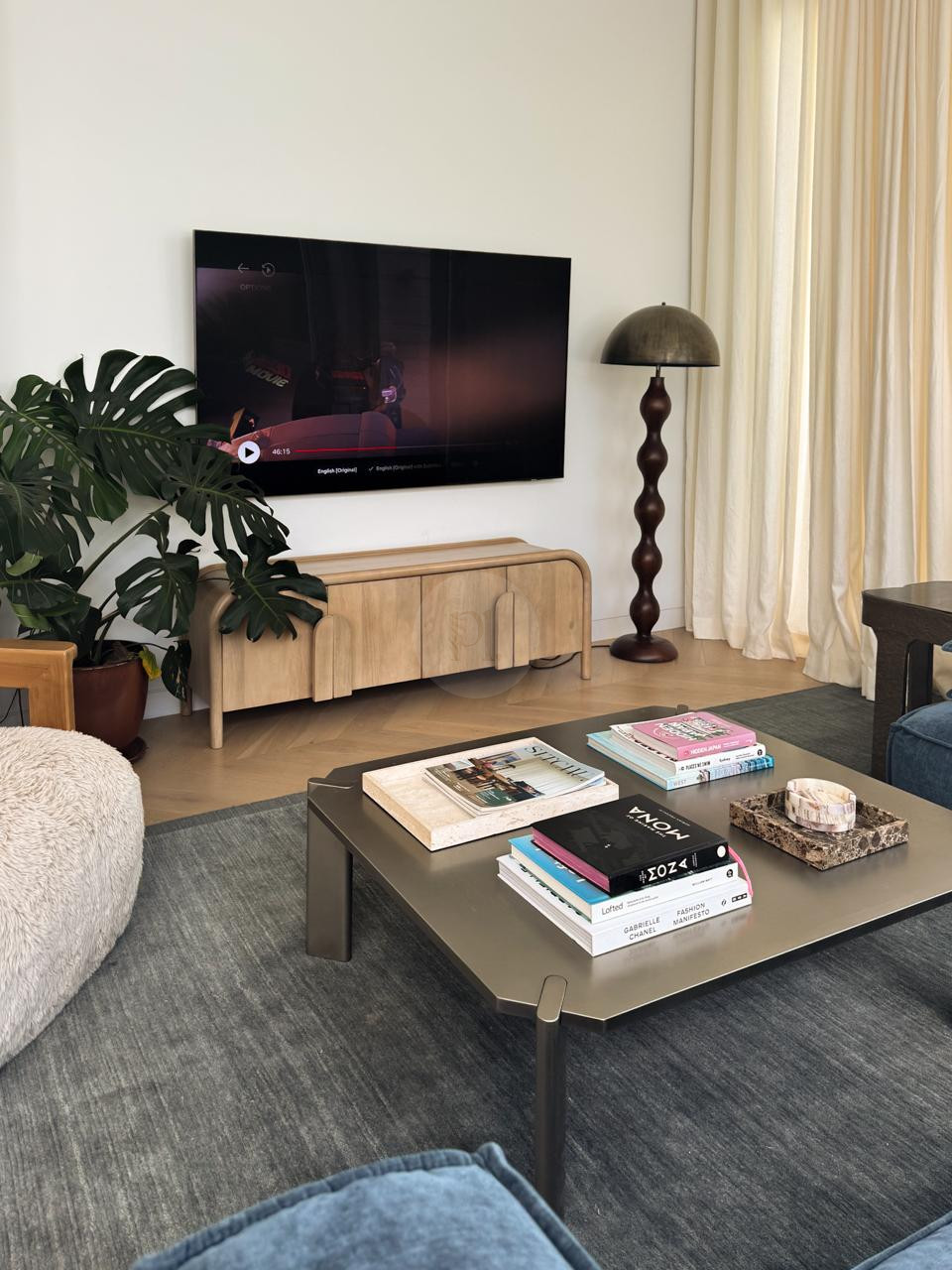Please note: the following styling items have changed – the artwork in the living room is no longer there and there is a TV in it’s place, + the stone chair in the bedroom is no longer there.