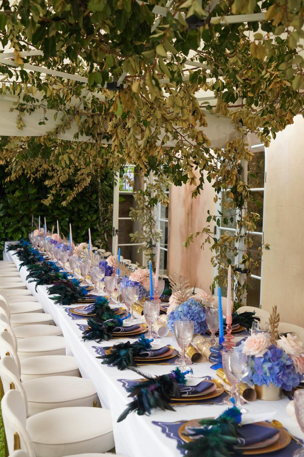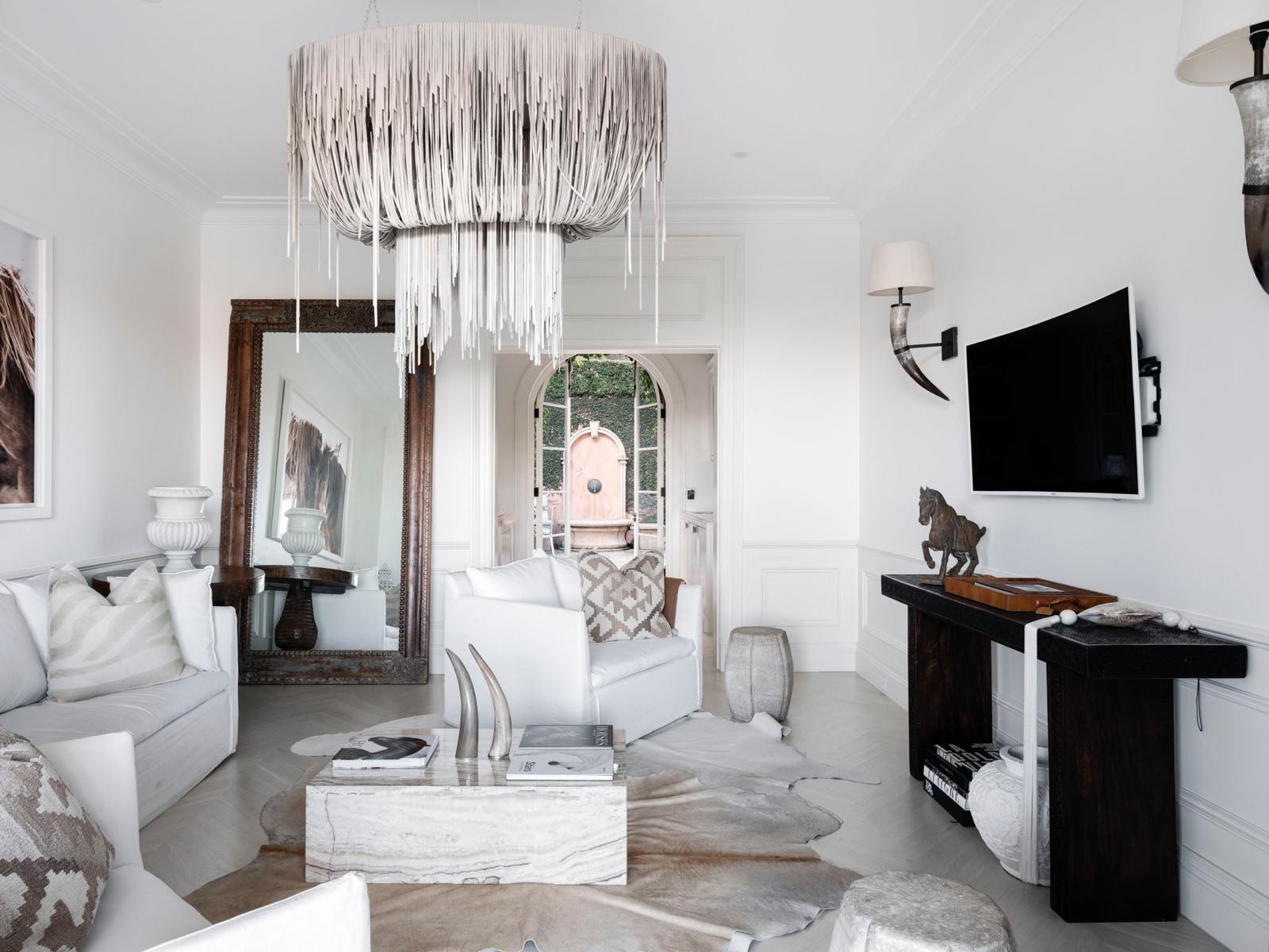 On the middle floor of the home, the open-plan living areas are bathed in spectacular light and also offer water views. Adorned with a curated selection of decorative finds, exotic chandeliers, and unique furnishings, including a white fringed sofa and a striking taxidermic peacock, you will be spoilt for choice when choosing corners to capture fashion stills and elevated product imagery.
