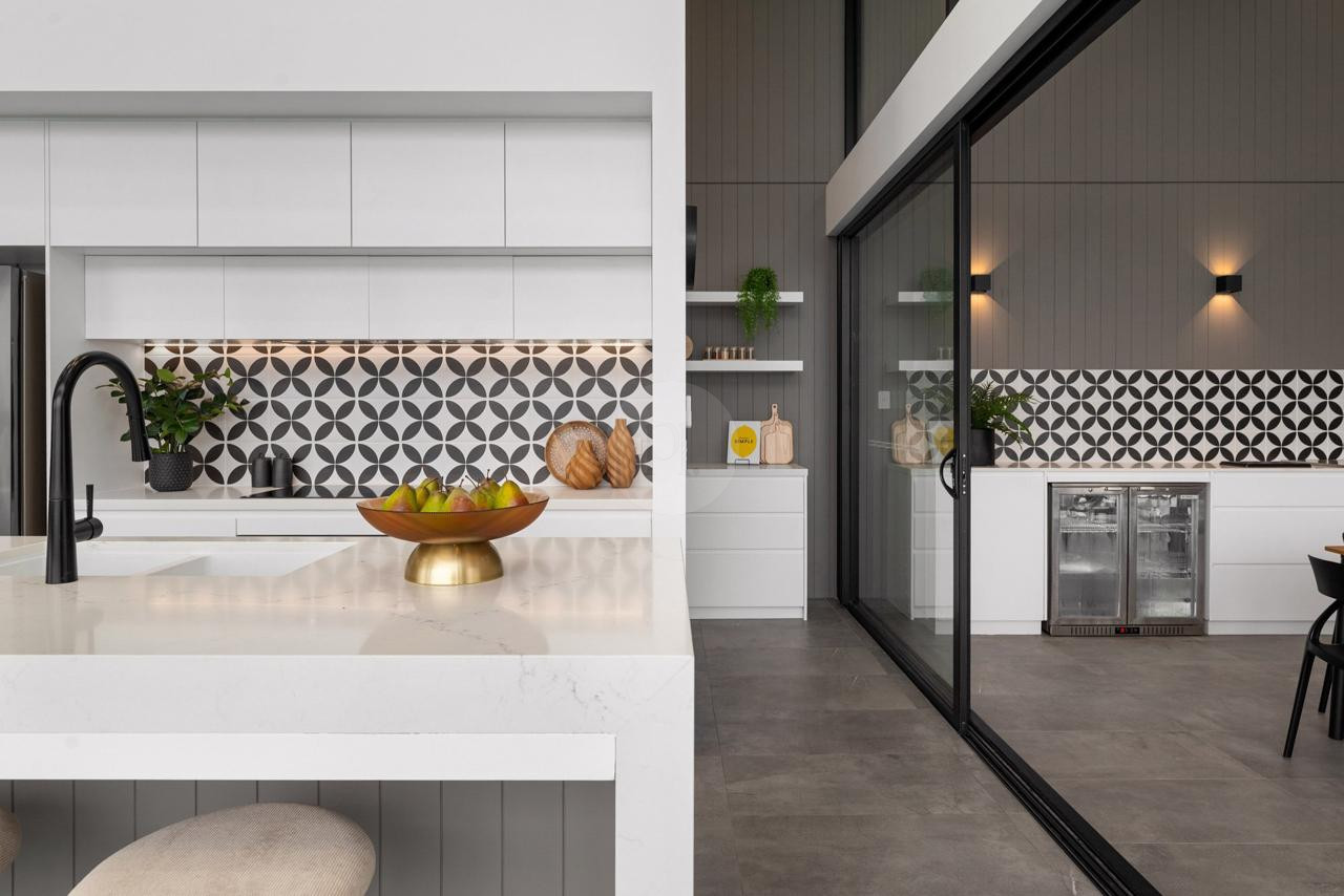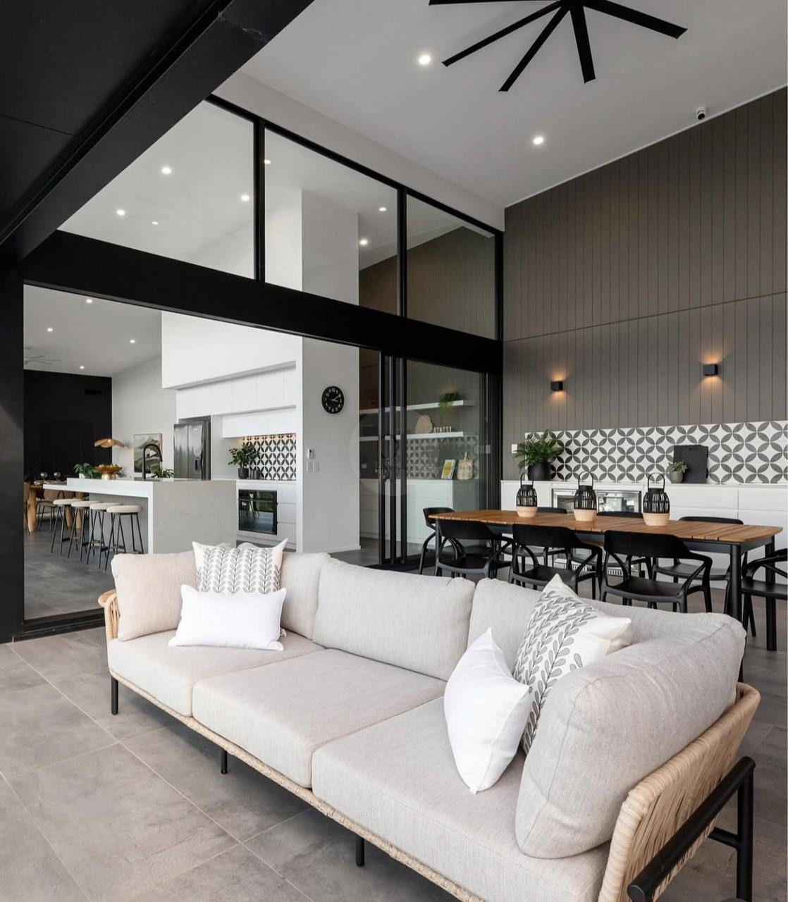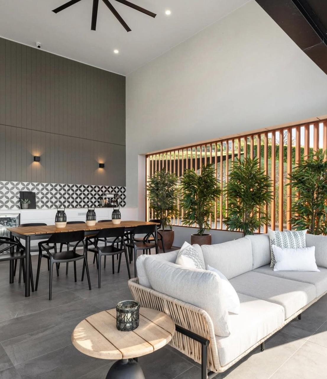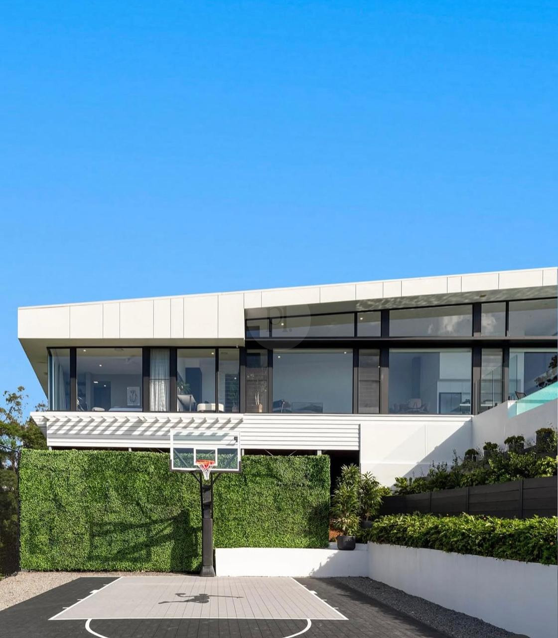 The property features expansive living areas with lofty 4.5 metre ceilings, creating an inviting atmosphere filled with natural light. Floor-to-ceiling glass windows seamlessly connect the indoors with the outdoors, showcasing the beautifully landscaped gardens and the sparkling glass-edged infinity pool. The alfresco entertaining area, complete with a BBQ zone and fire pit, is ideal for capturing those magical alfresco, lifestyle stills.
