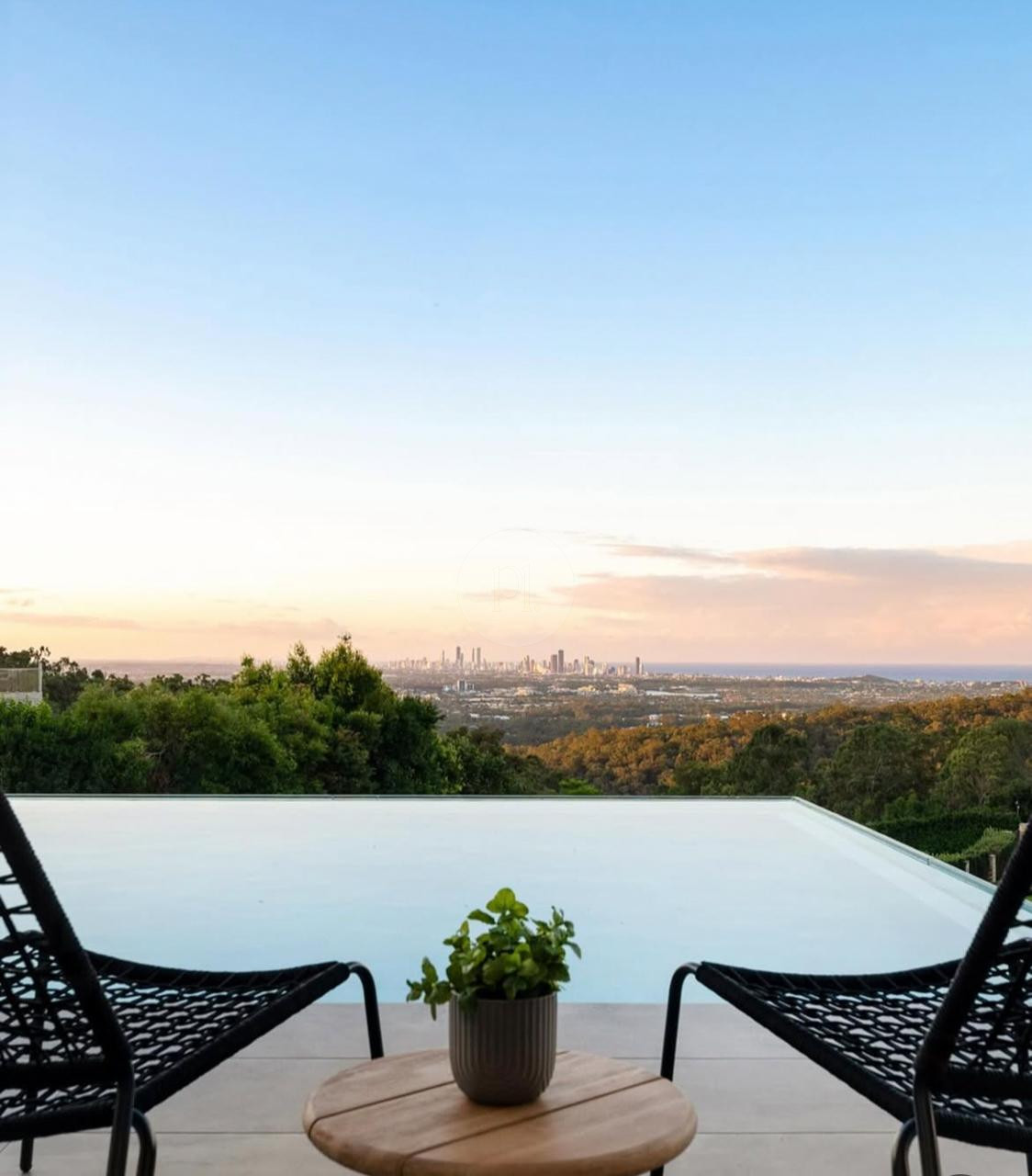 Welcome to La La Land, a striking architecturally designed home situated in leafy Bonogin, within the Gold Coast hinterland. This modern masterpiece is set on 4.5 acres of lush hinterland, offering breathtaking panoramic views of the Gold Coast city skyline and coastline. With its contemporary coastal design and clean facade, this single-storey residence sits perched in an elevated north facing position, making it a great choice for photoshoots, TV commercials, and filming, no matter the brief or aesthetic.