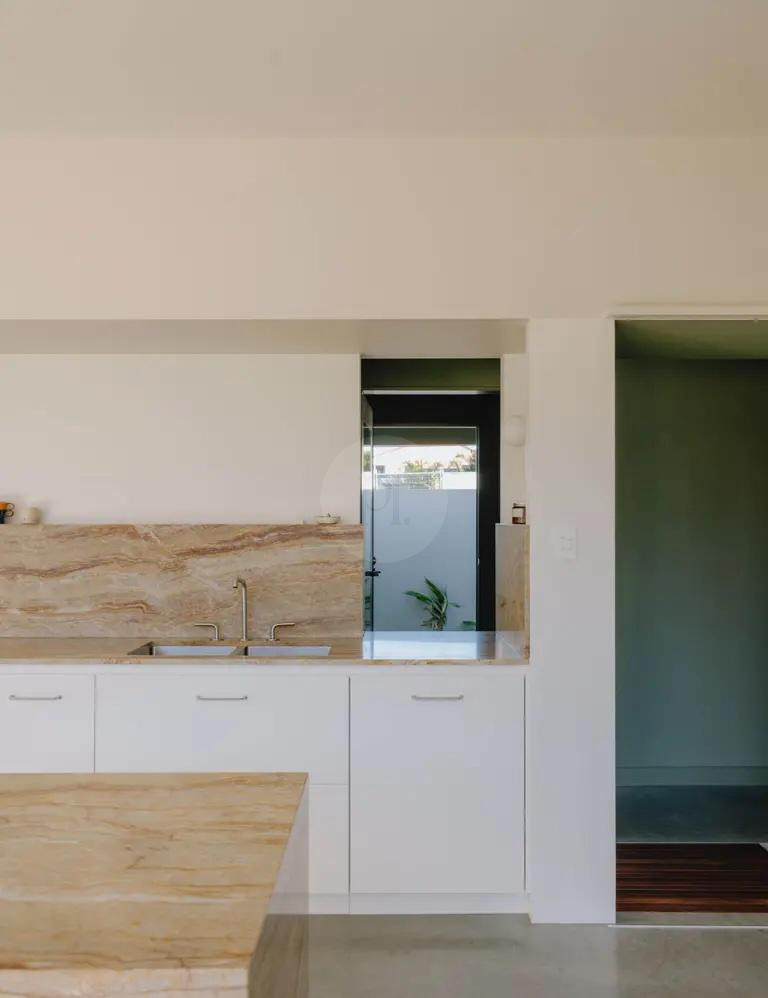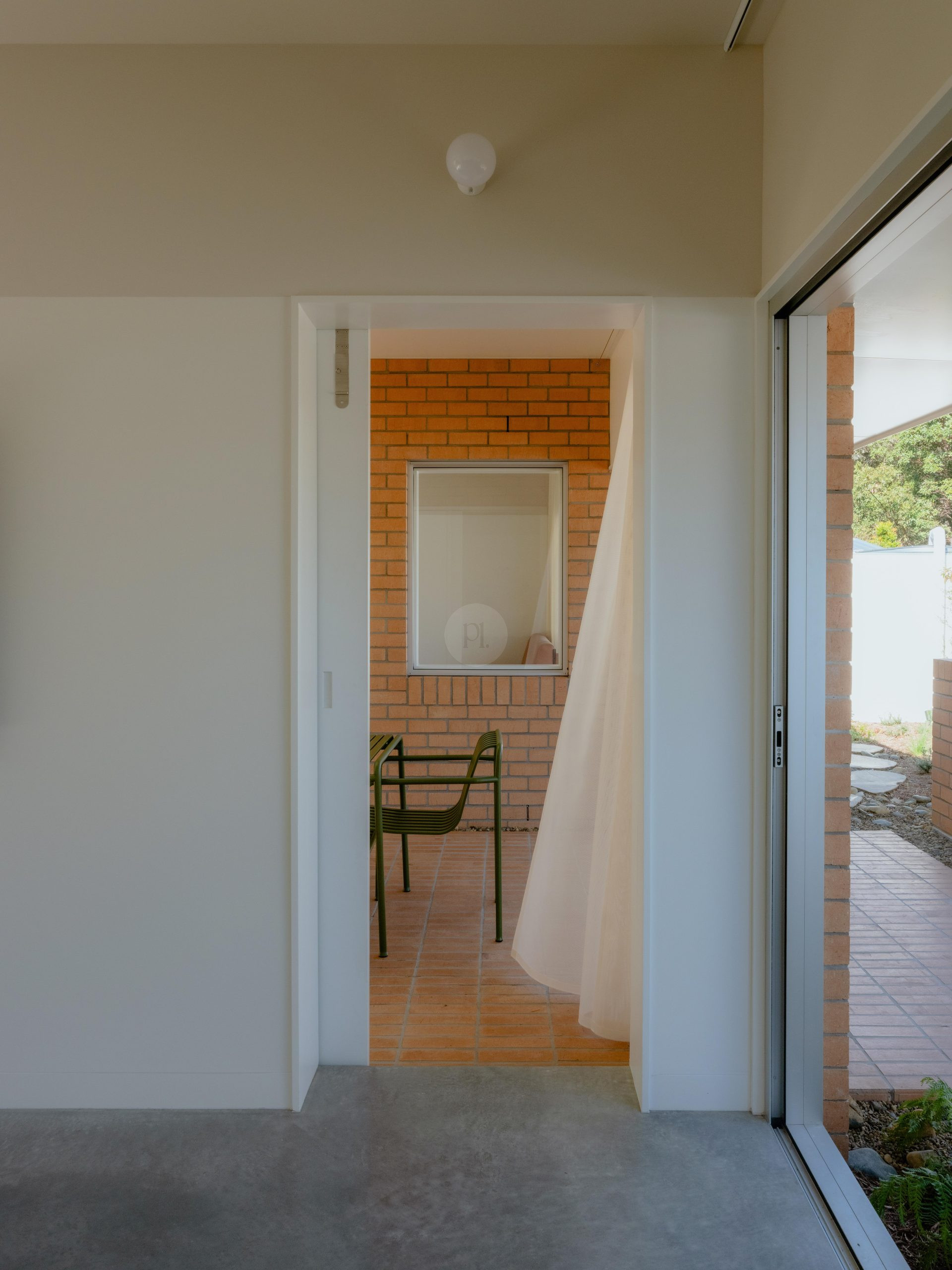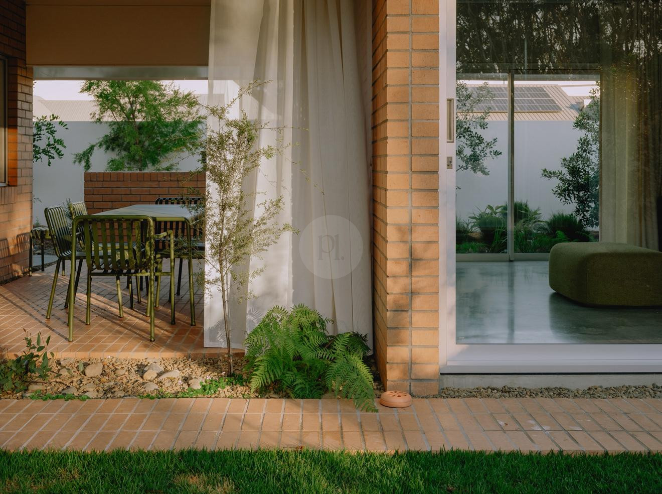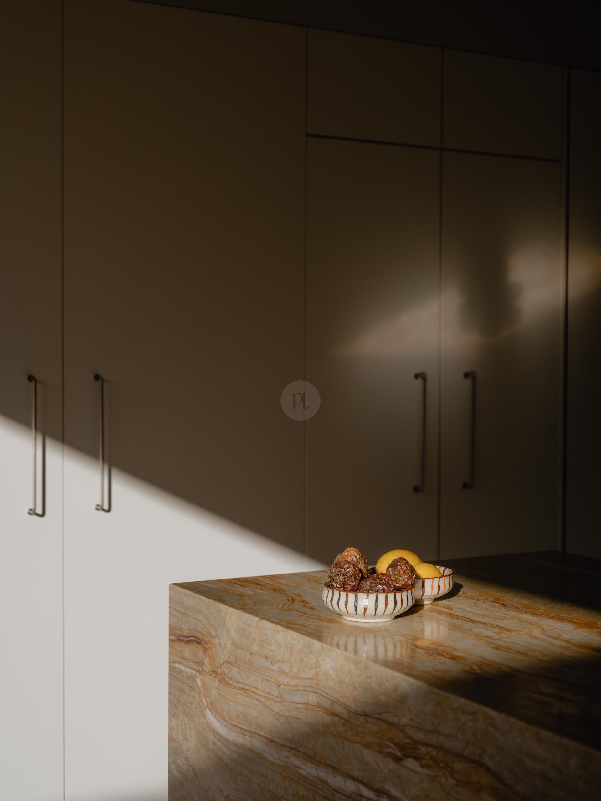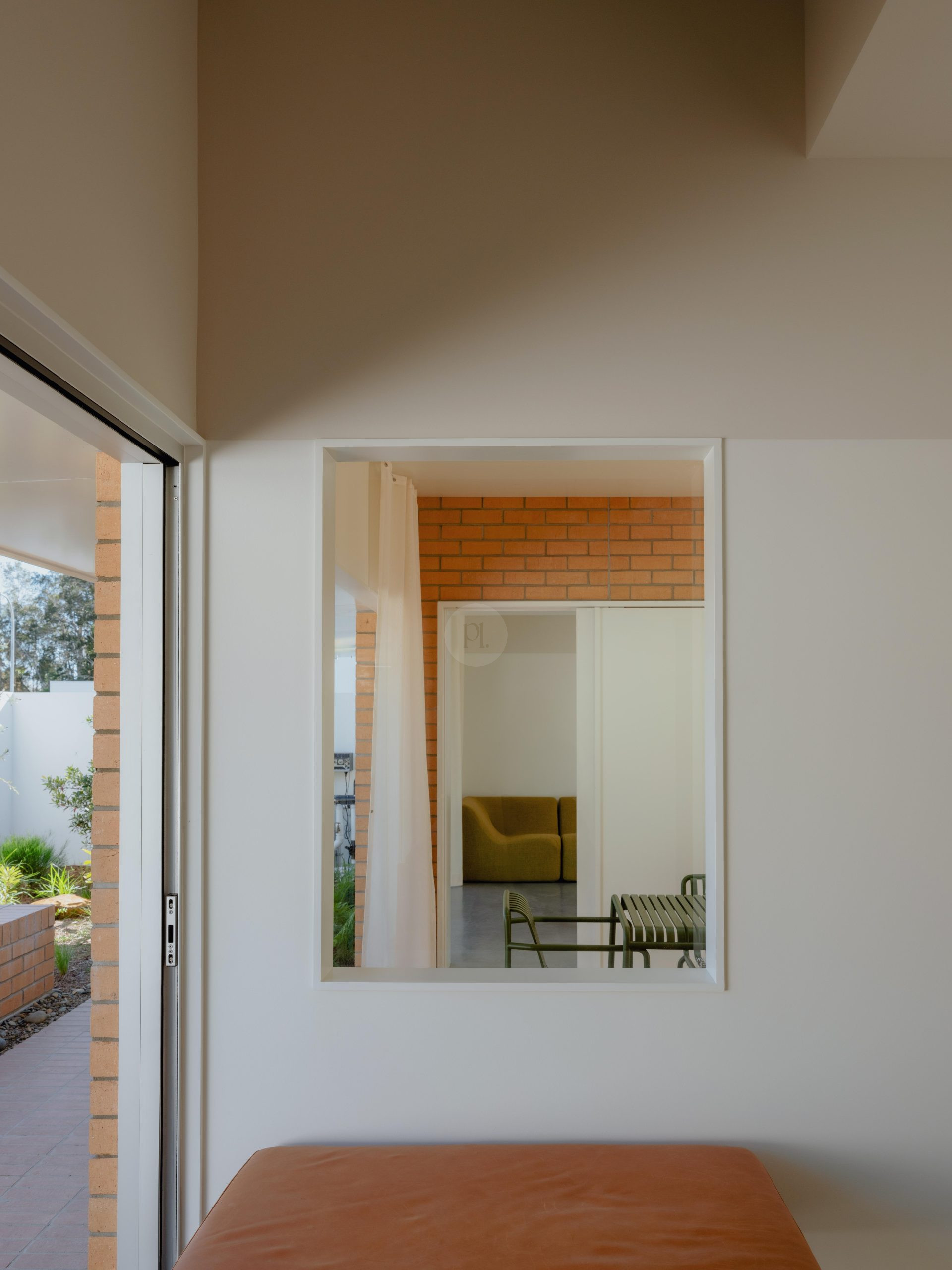 La Posta pays homage to the original beach houses of Bogangar, with sculptural gabled rooflines, warm apricot-toned brickwork and sun-washed stone that create a tactile and visually striking setting. Inside, natural textures including spotted gum timber flooring, bespoke joinery, and a sculptural quartzite kitchen island provide versatile, photogenic interiors perfect for lifestyle, culinary, or editorial shoots.