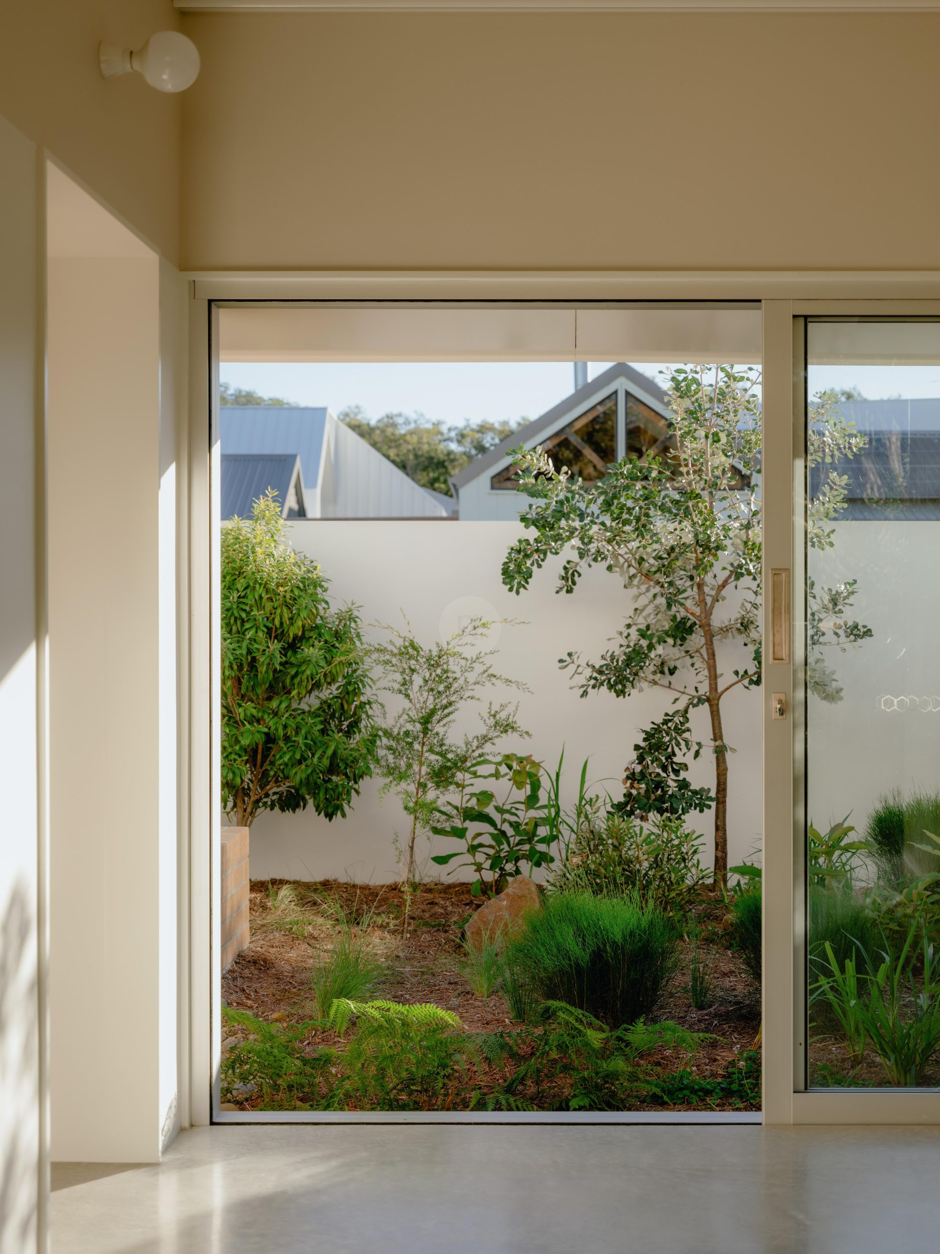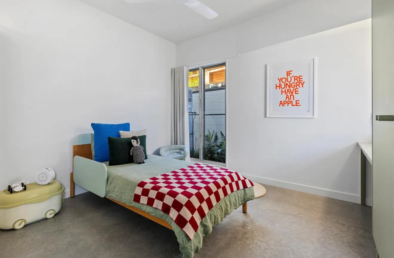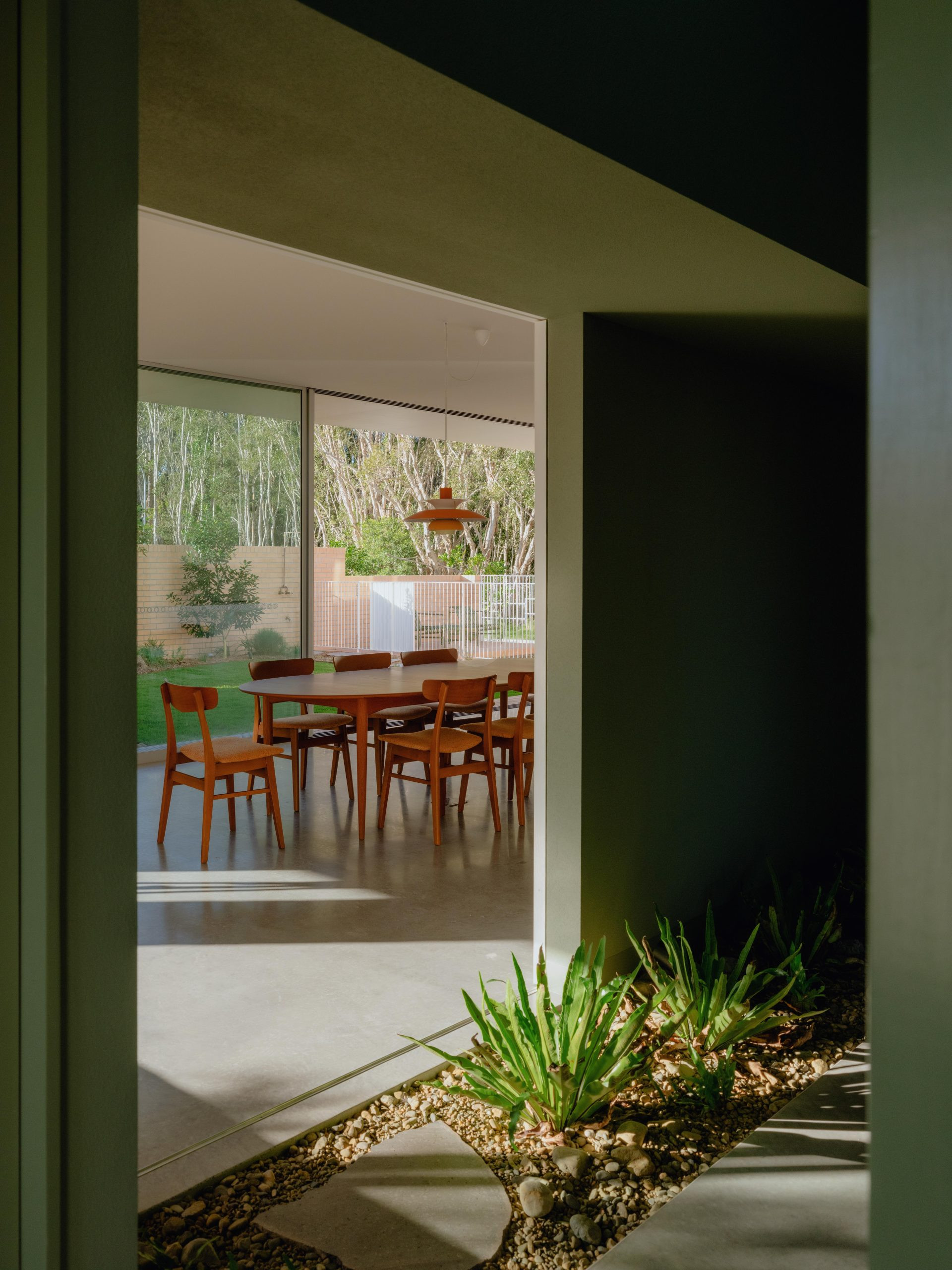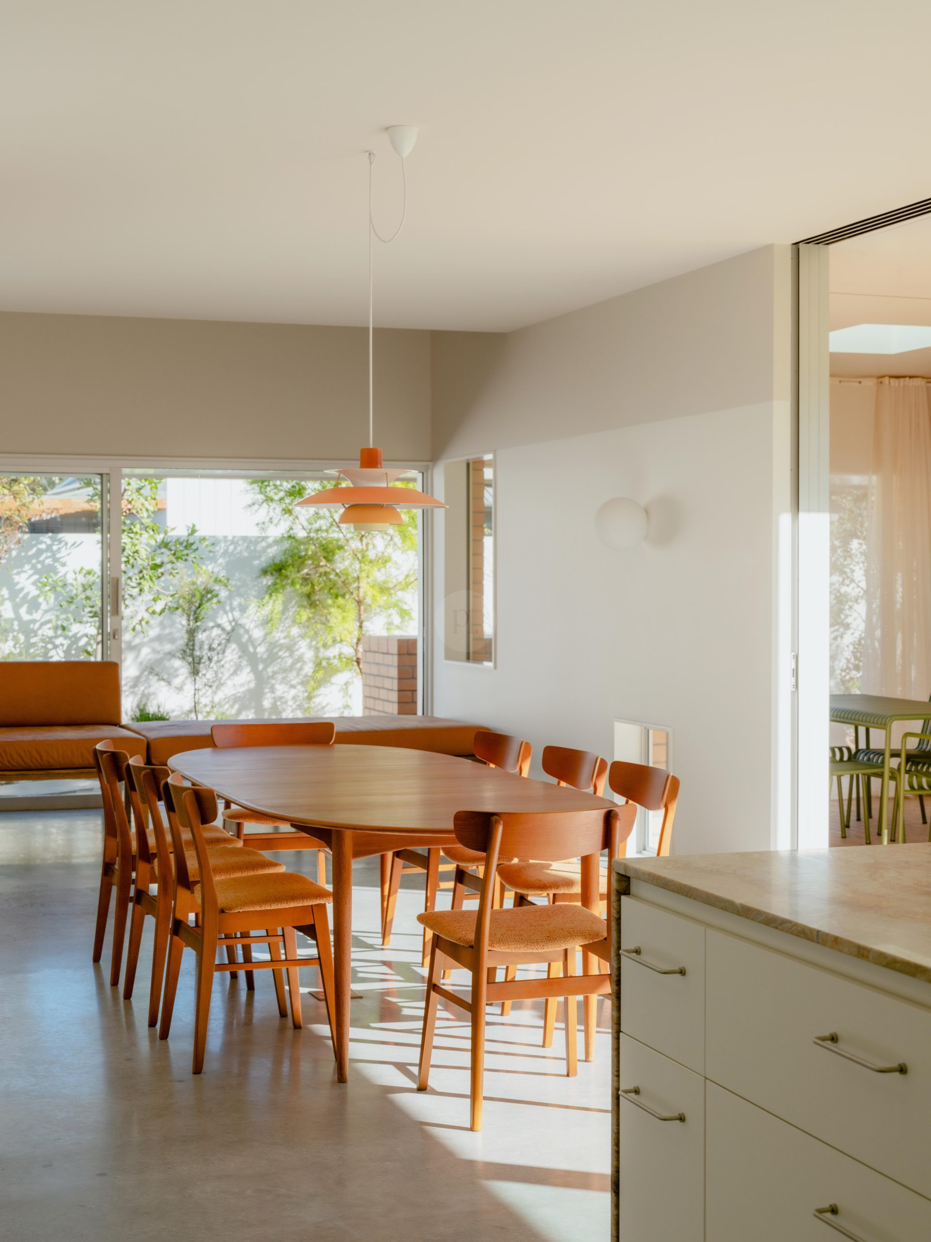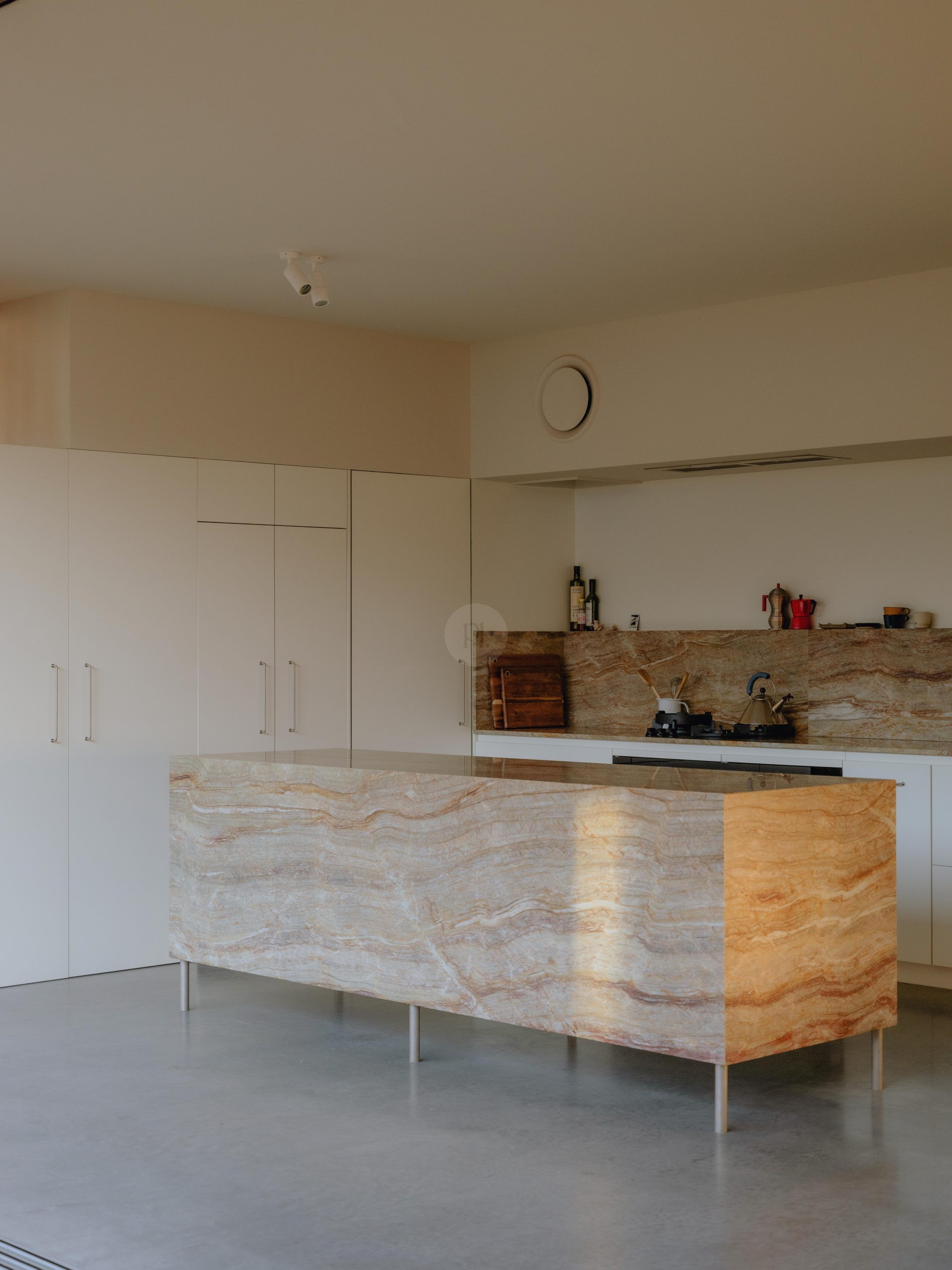 La Posta pays homage to the original beach houses of Bogangar, with sculptural gabled rooflines, warm apricot-toned brickwork and sun-washed stone that create a tactile and visually striking setting. Inside, natural textures including spotted gum timber flooring, bespoke joinery, and a sculptural quartzite kitchen island provide versatile, photogenic interiors perfect for lifestyle, culinary, or editorial shoots.