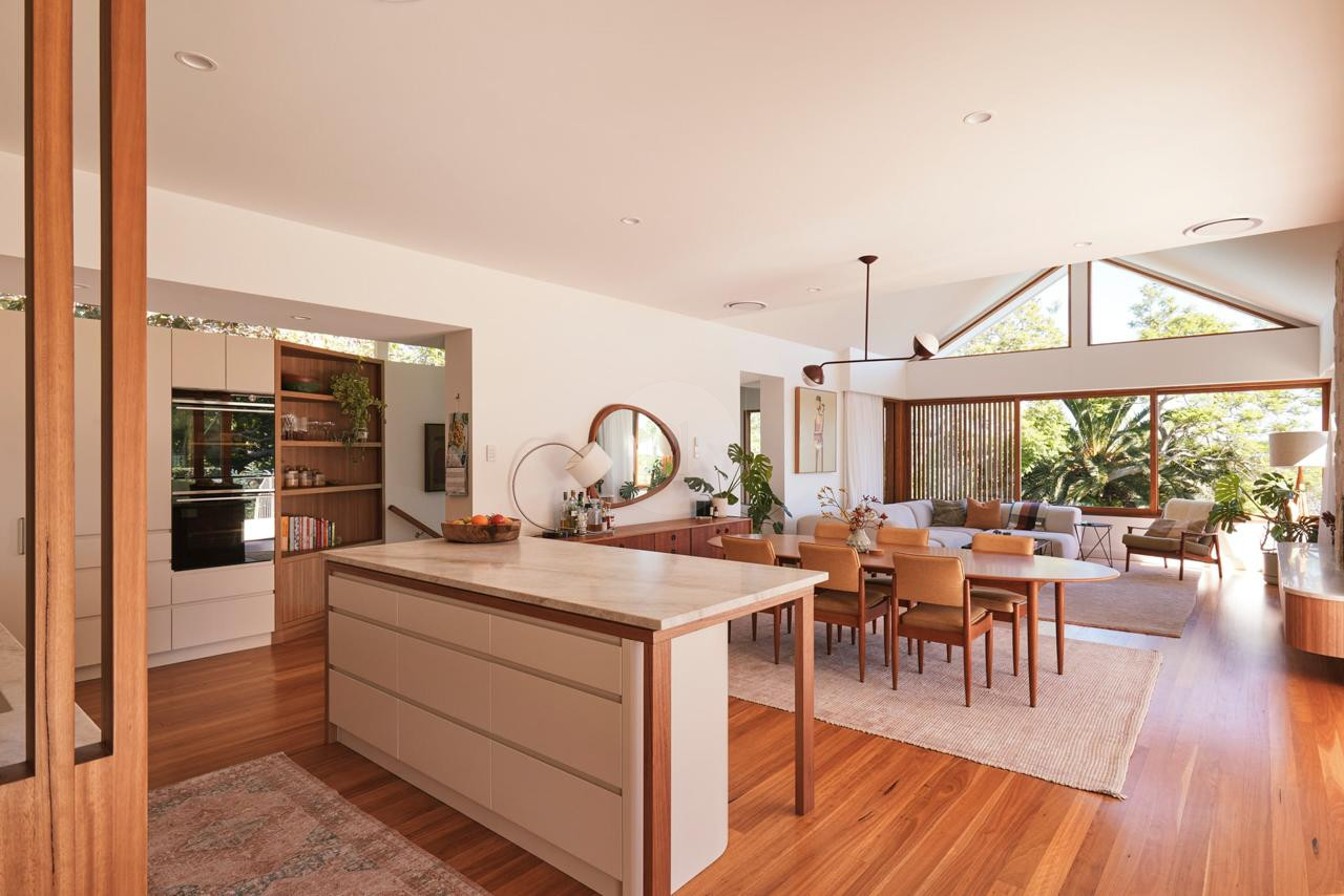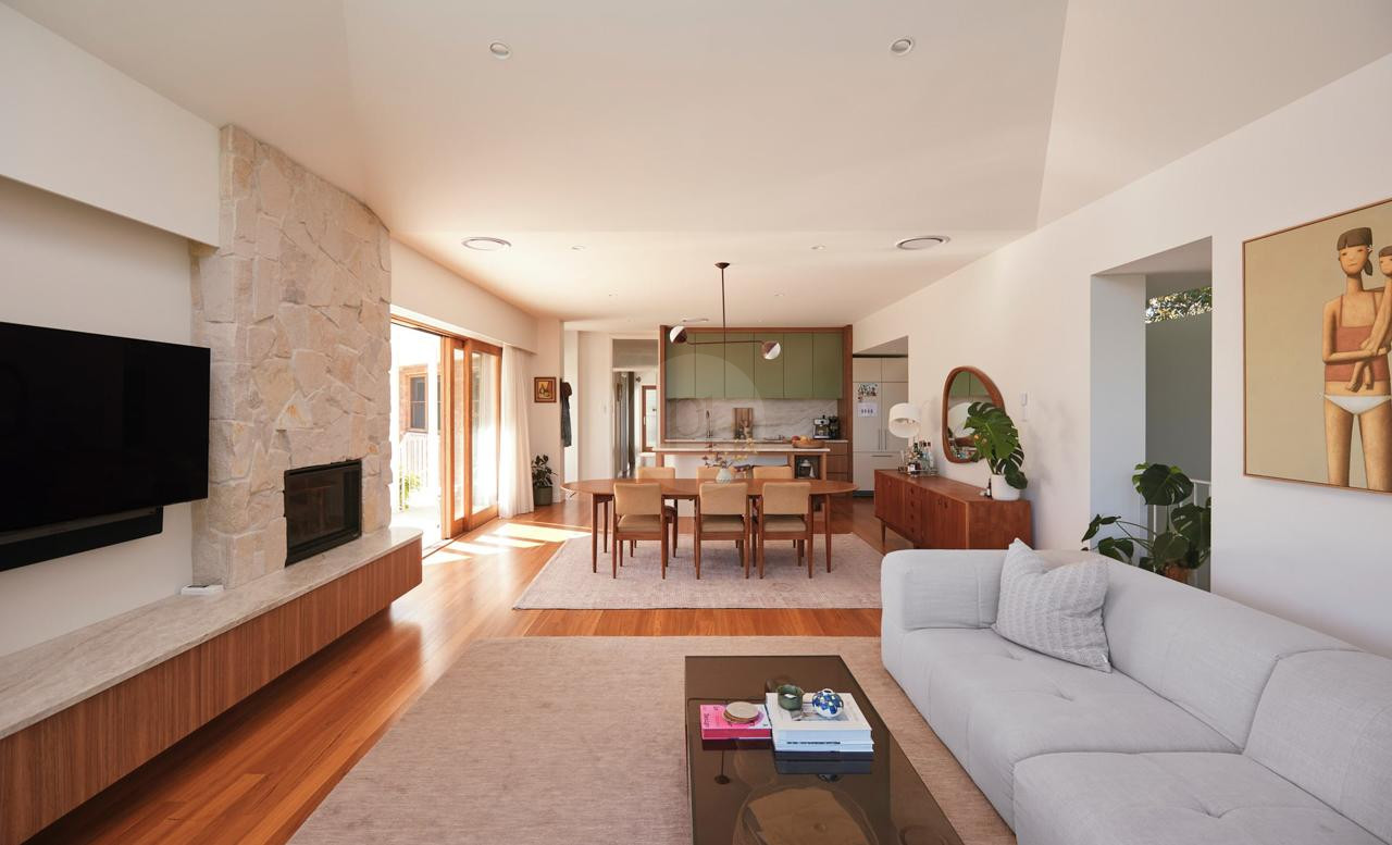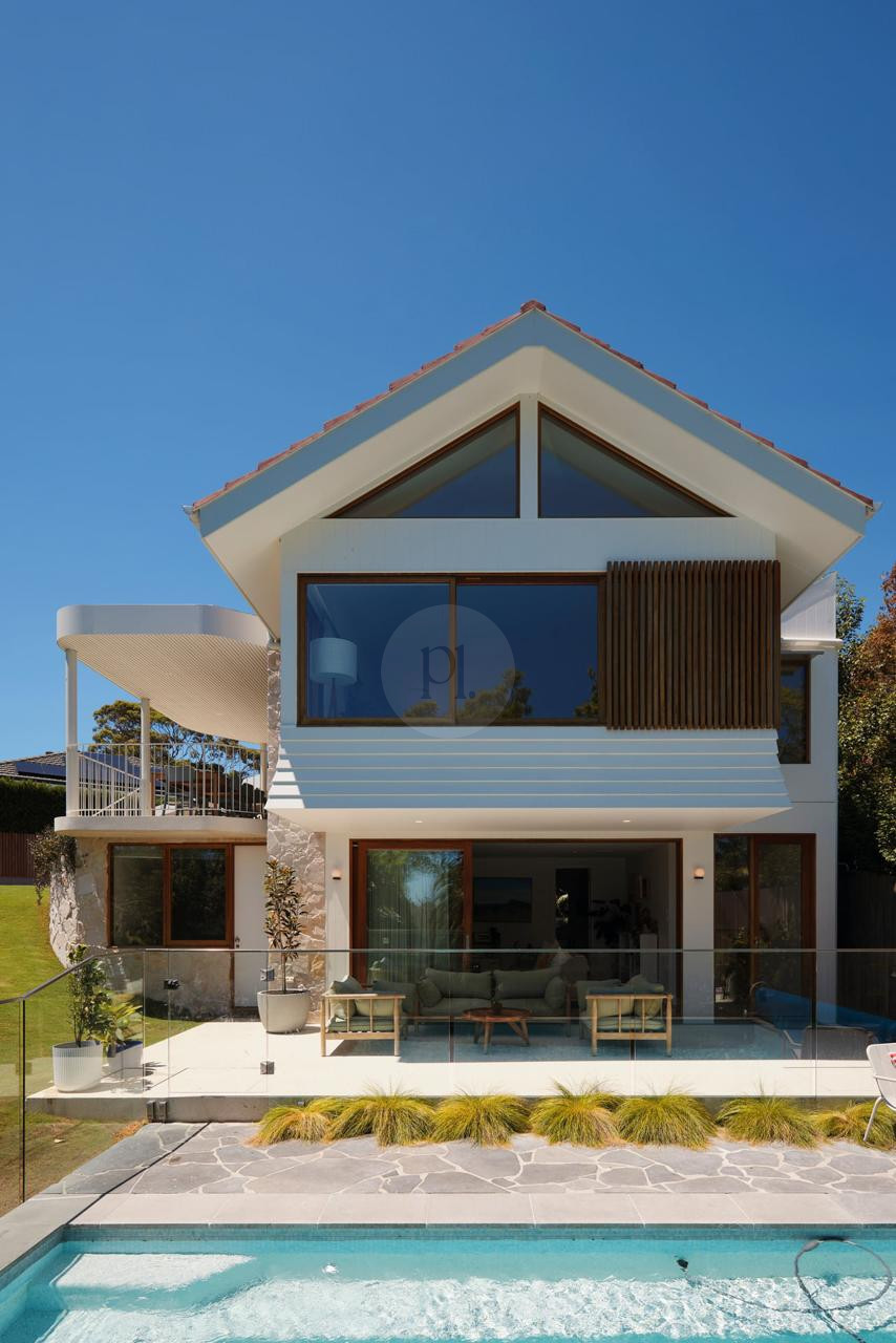Nestled off the street on a lush 900 sqm block, Layer Cake in Middle Cove is a newly renovated architectural gem. This stunning property spans two levels and offers a seamless blend of mid-century modern style with warm, earthy tones, creating an ideal setting for photo shoots and commercials.