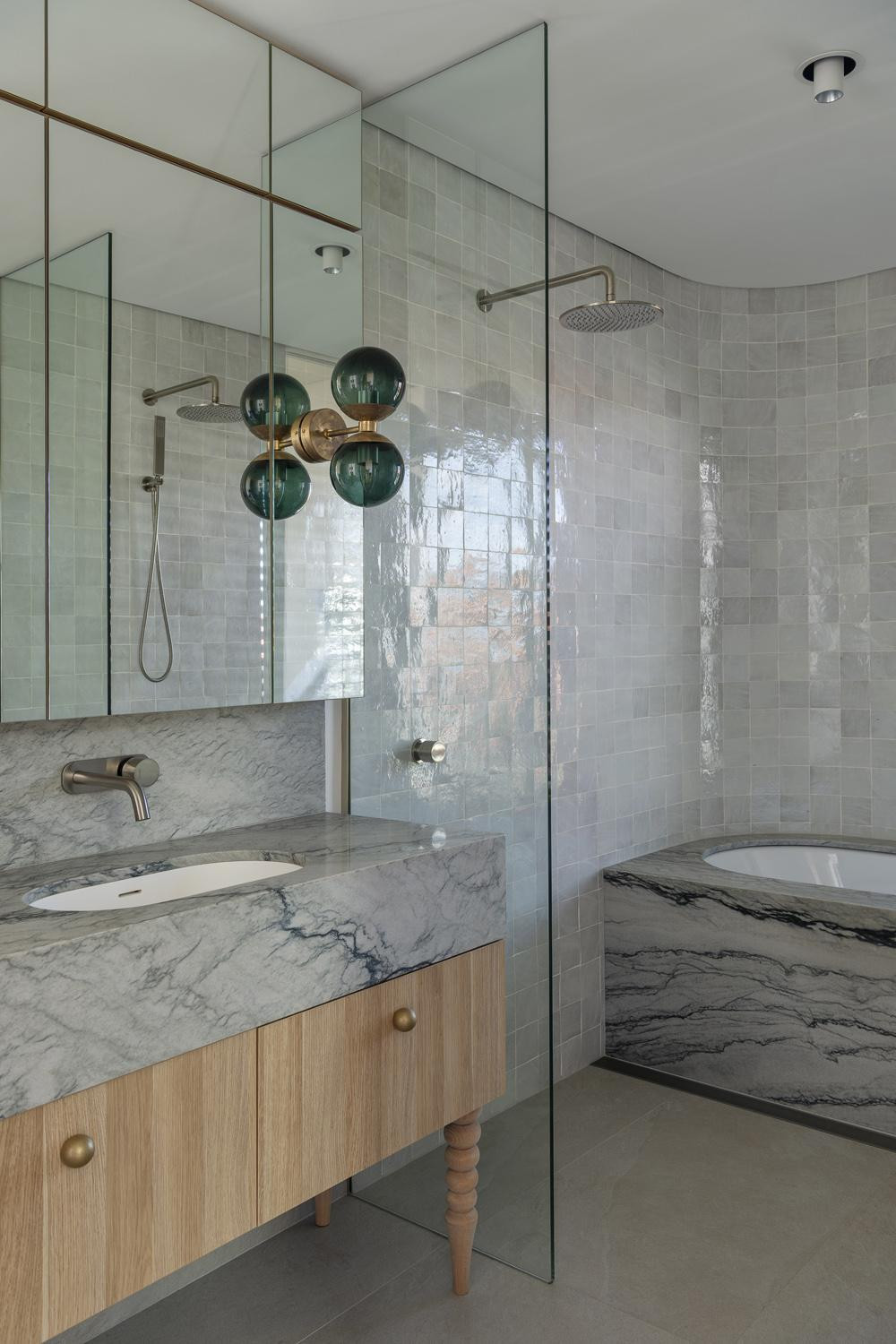 The design of Light Years seamlessly combines contemporary elements with retro charm, creating a space that is both visually striking and inviting. The green marble accents, retro-style eatery, and playful touches of personality scattered throughout the property add depth and character to every frame.