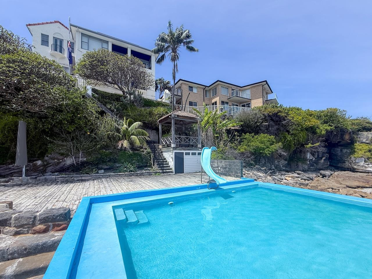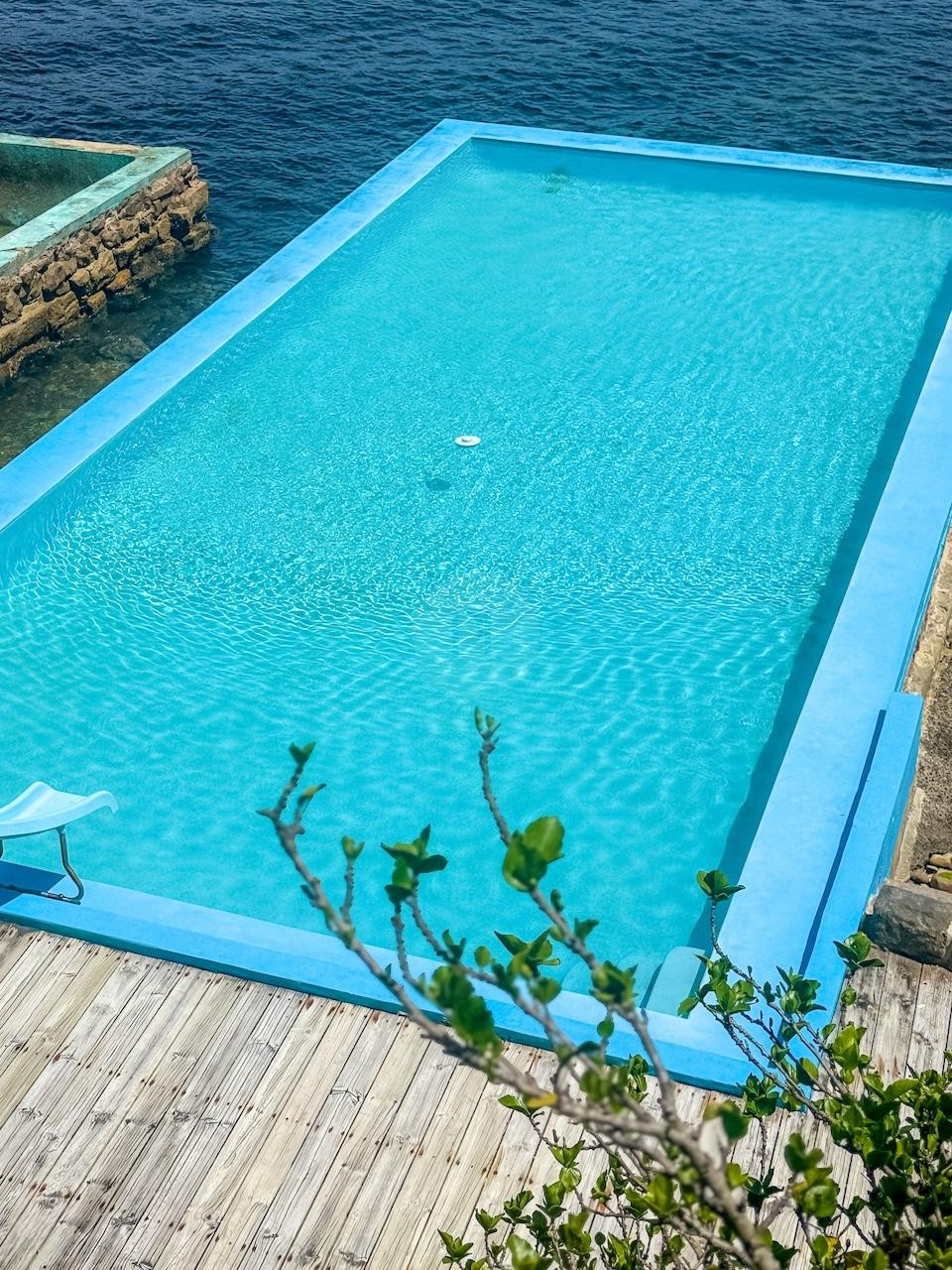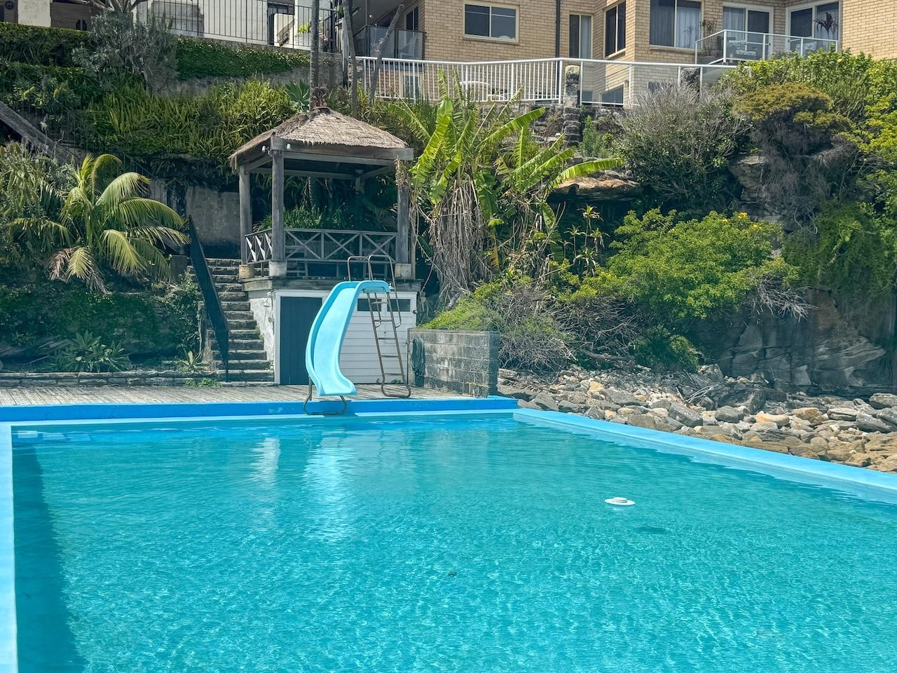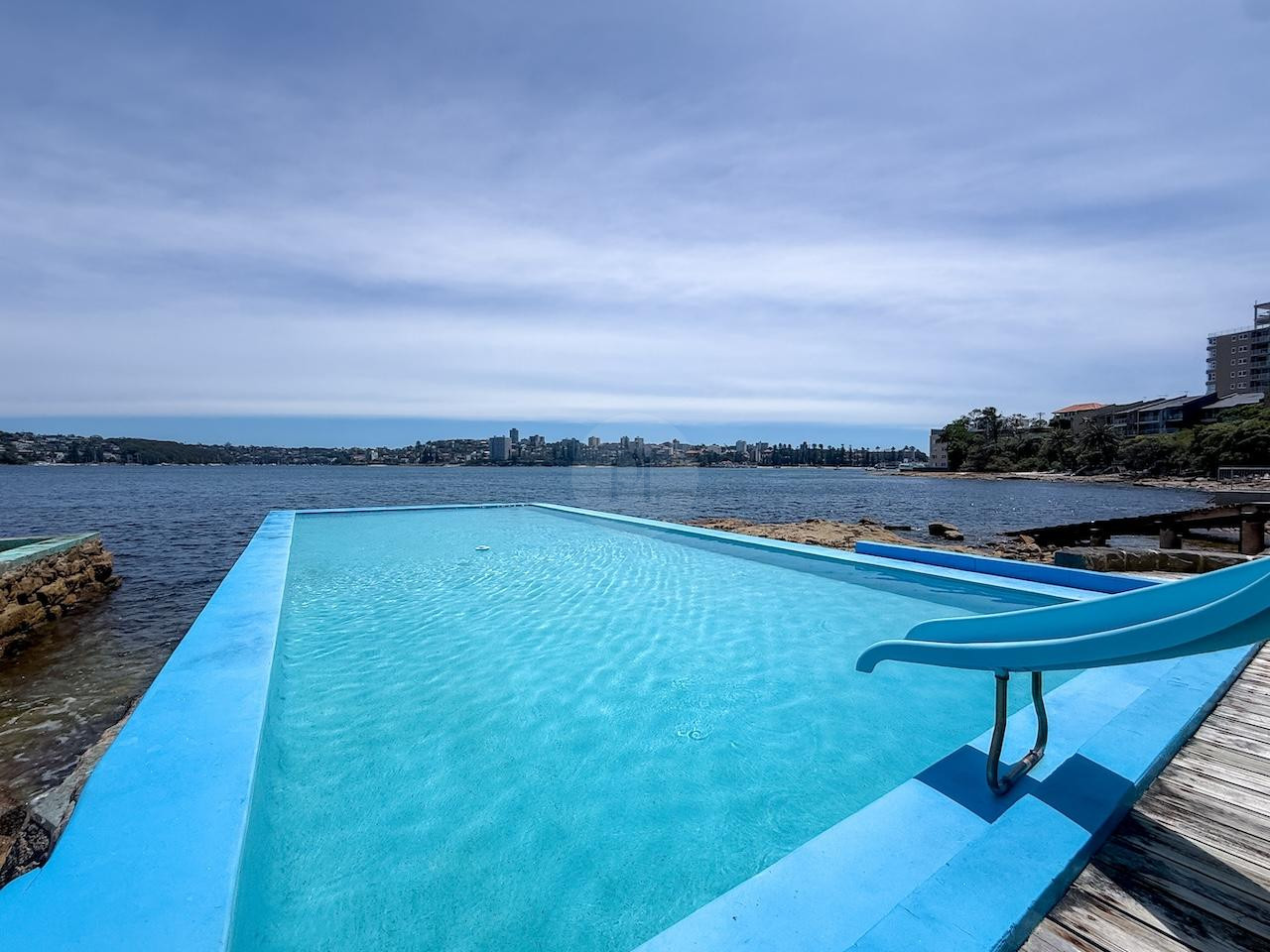 As you step inside, you’ll be greeted by an open-plan kitchen and living area that boasts spectacular views over the shimmering sea. Venture to the lower level, where you’ll find a spacious bedroom for HMU and direct access to the enchanting outdoor area. Here, the true magic unfolds. The outdoor living space is a haven for creativity, complete with a lounge area, outdoor dining space, and a magnificent infinity-edge pool, which features a retro resort-style slide that adds a playful touch. The charming pastel green and white boat shed adds to the nautical theme, making it an ideal setting for brand productions.
