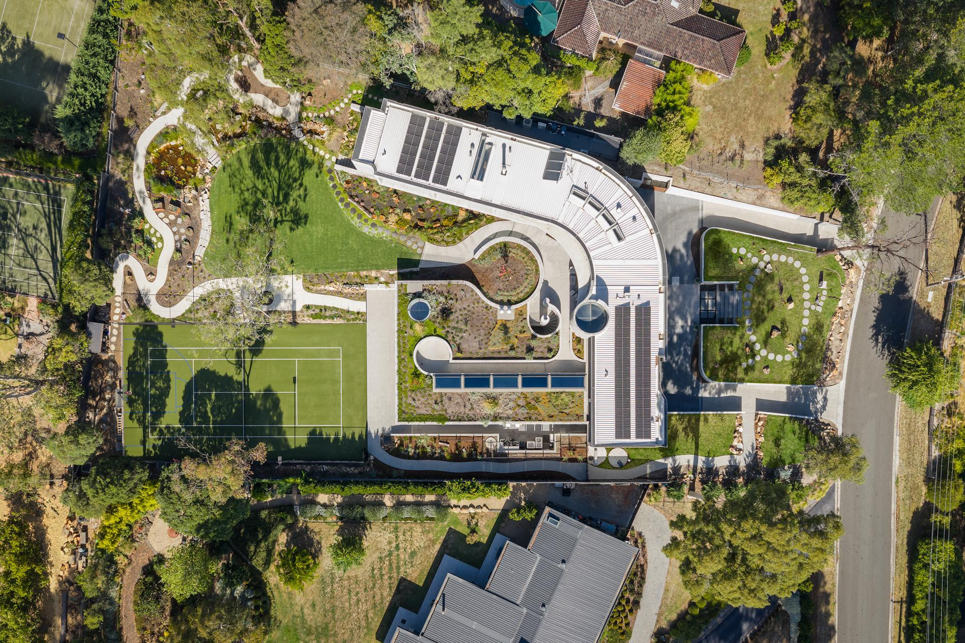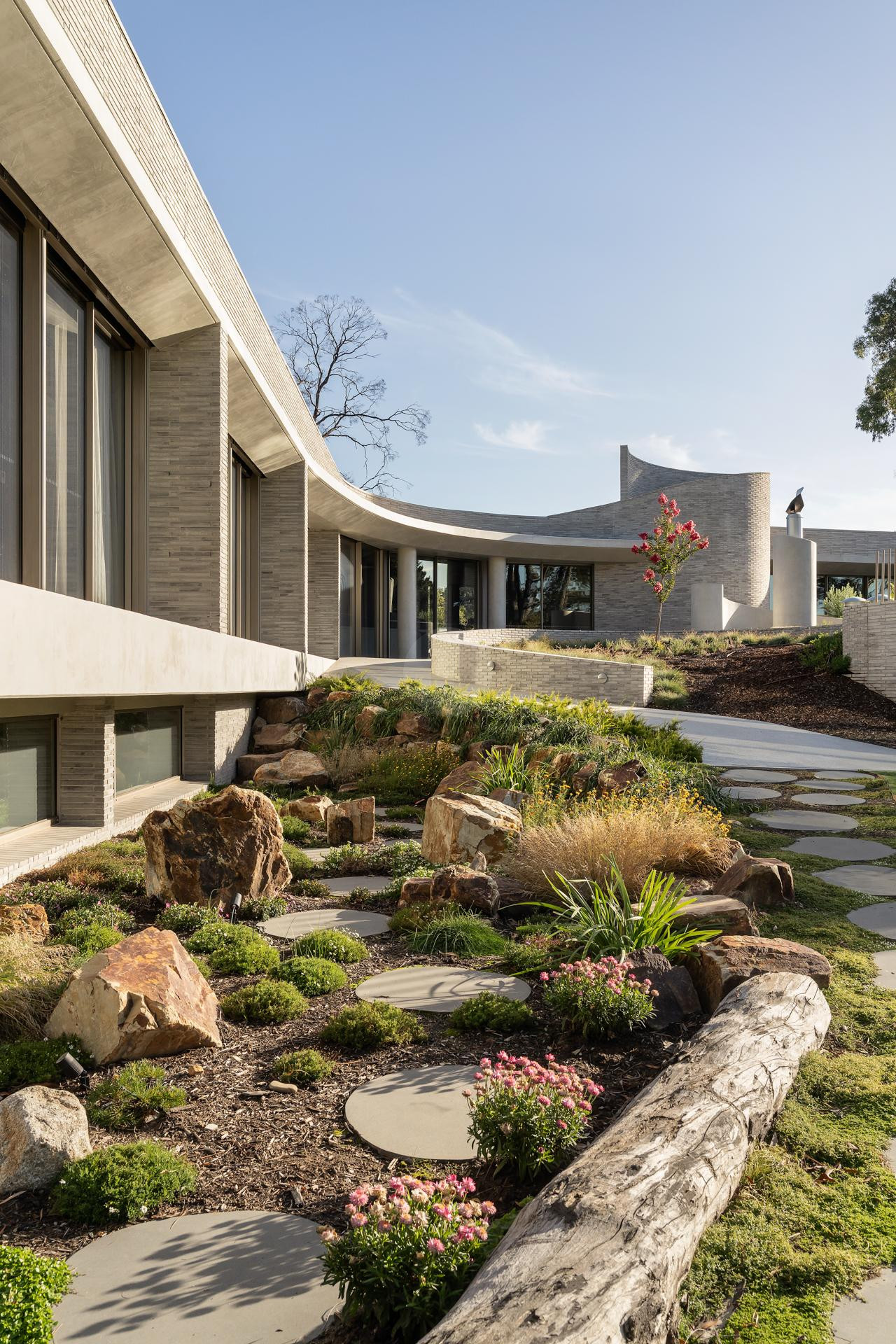 Featuring a magnificent boomerang form, the radial corridors guide you through the dwelling, connecting living areas with breathtaking views of the north-facing landscape. The outdoor garden, encircled by the pavilion, serves as a tranquil oasis, perfect for capturing the essence of nature in your photoshoots.