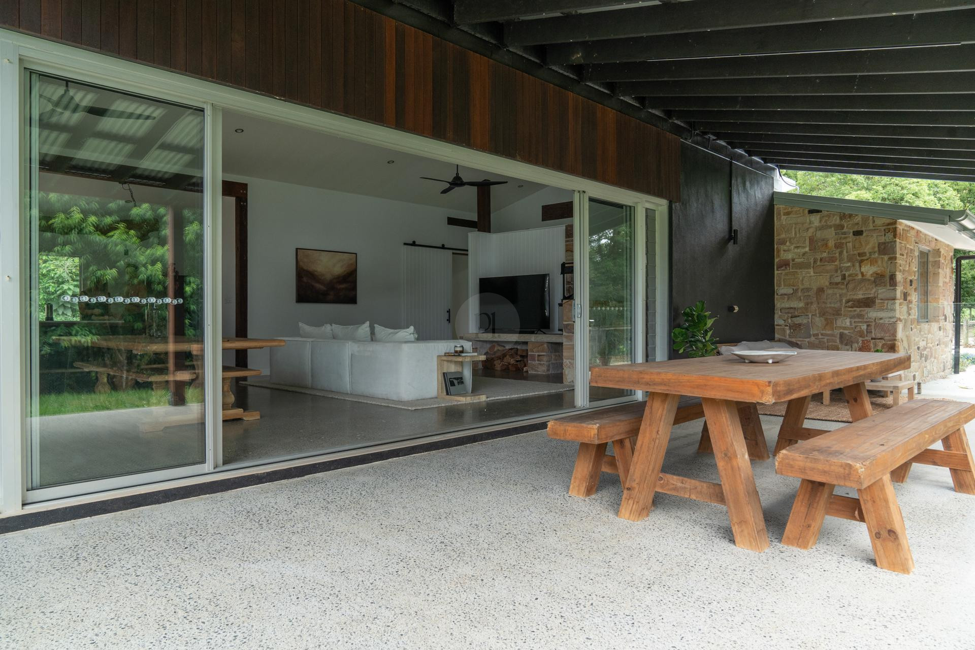 Welcome to Mayde House, a relaxing hinterland retreat located in Carool, NSW, just 20 minutes from the Gold Coast Airport. Blending contemporary architecture with rustic farmhouse charm, this secluded property offers a refined yet relaxed setting for photoshoots, filming, TV commercials, video production, and brand activations.