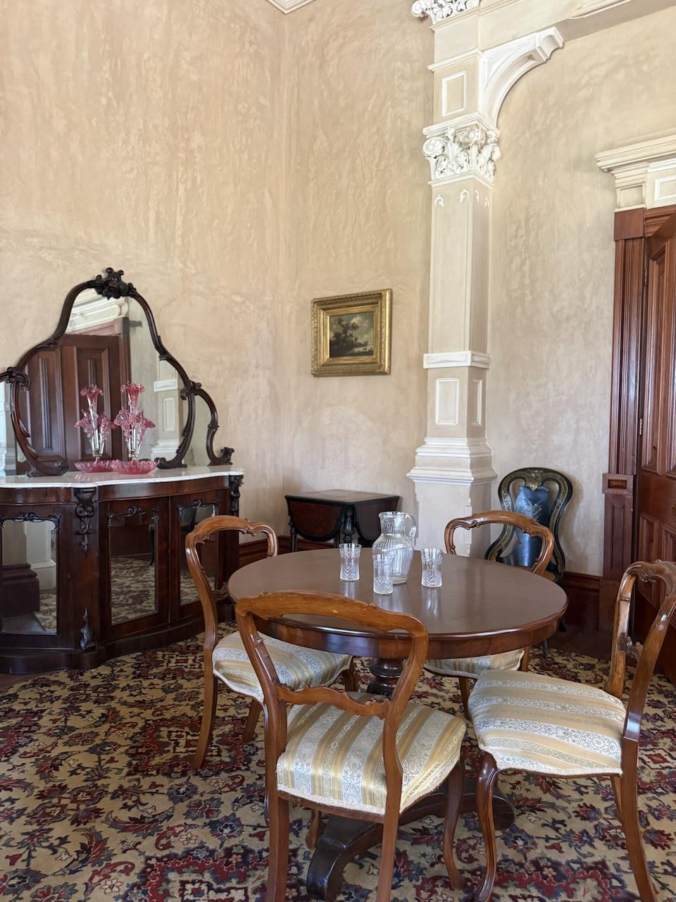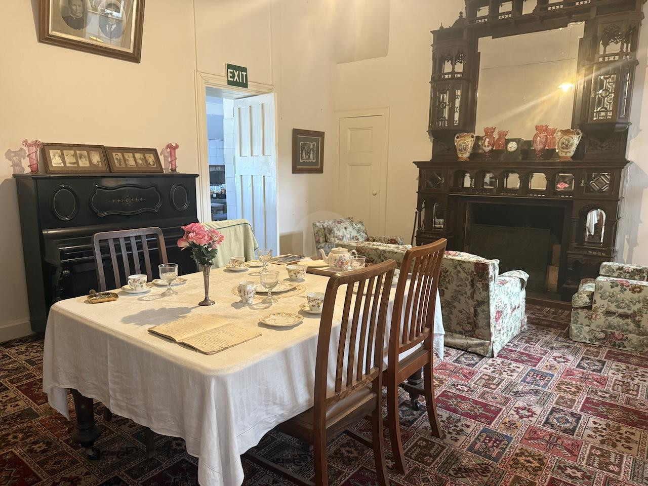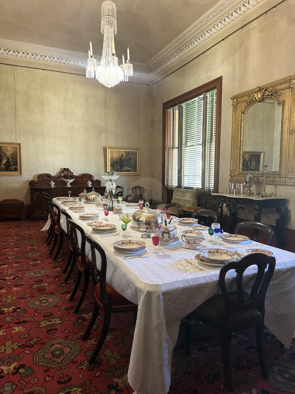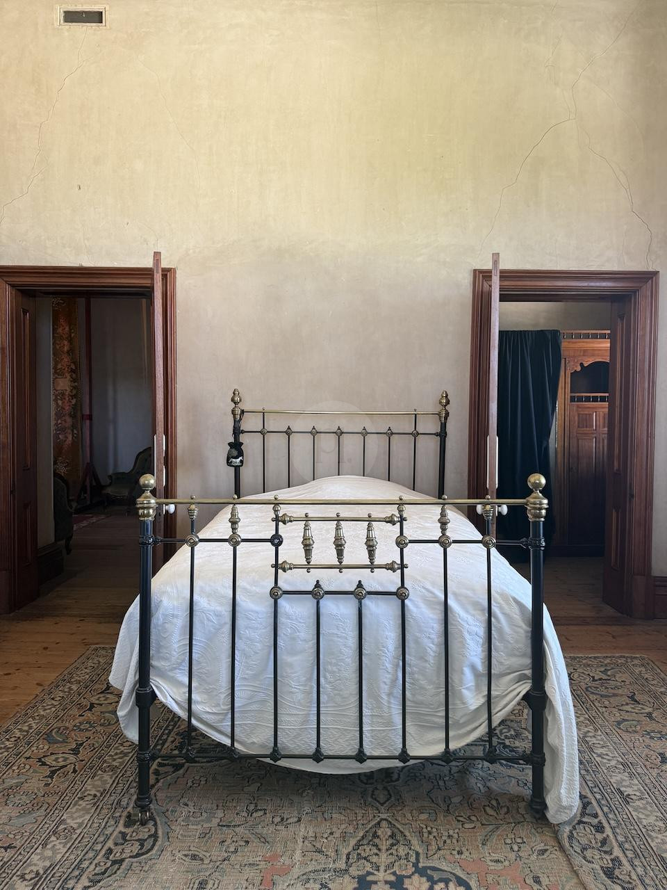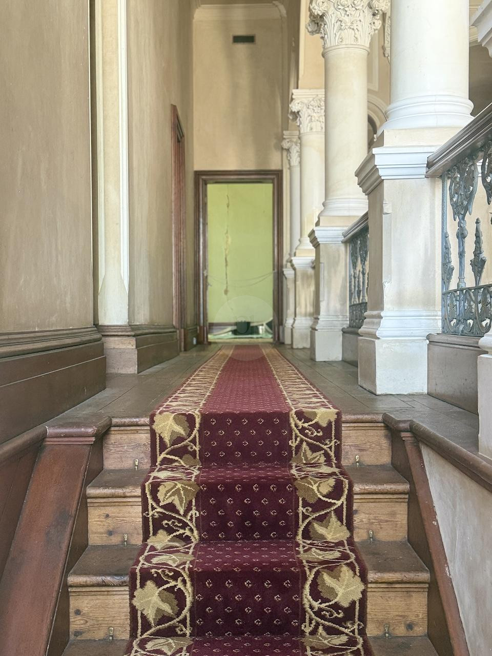 Crafted from locally sourced basalt, the expansive 42-room mansion showcases a striking blend of heritage architecture and vintage interiors. The dramatic entrance hall features ornate detailing and a bifurcated imperial timber staircase, setting an immediate sense of scale and elegance. Throughout the home, beautifully styled bedrooms and formal living spaces are furnished with period pieces, layered textures and architectural detail, offering endless visual variety for photographers, brand managers and production teams seeking a distinctive filming location.
