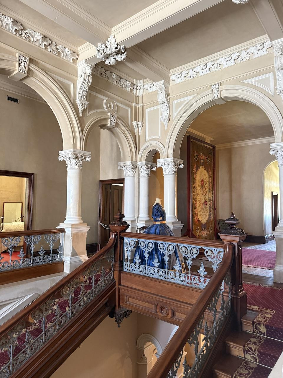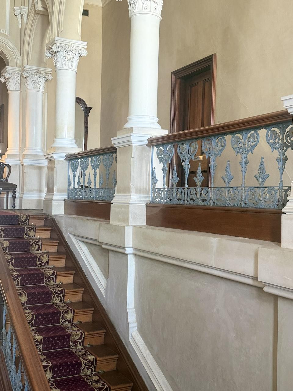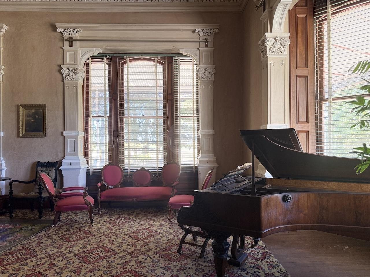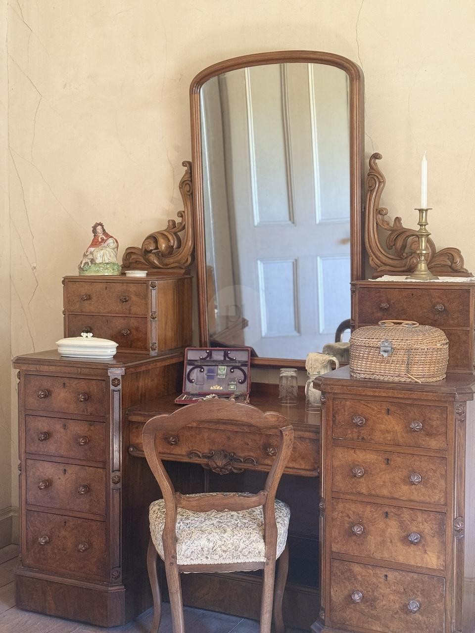 Crafted from locally sourced basalt, the expansive 42-room mansion showcases a striking blend of heritage architecture and vintage interiors. The dramatic entrance hall features ornate detailing and a bifurcated imperial timber staircase, setting an immediate sense of scale and elegance. Throughout the home, beautifully styled bedrooms and formal living spaces are furnished with period pieces, layered textures and architectural detail, offering endless visual variety for photographers, brand managers and production teams seeking a distinctive filming location.