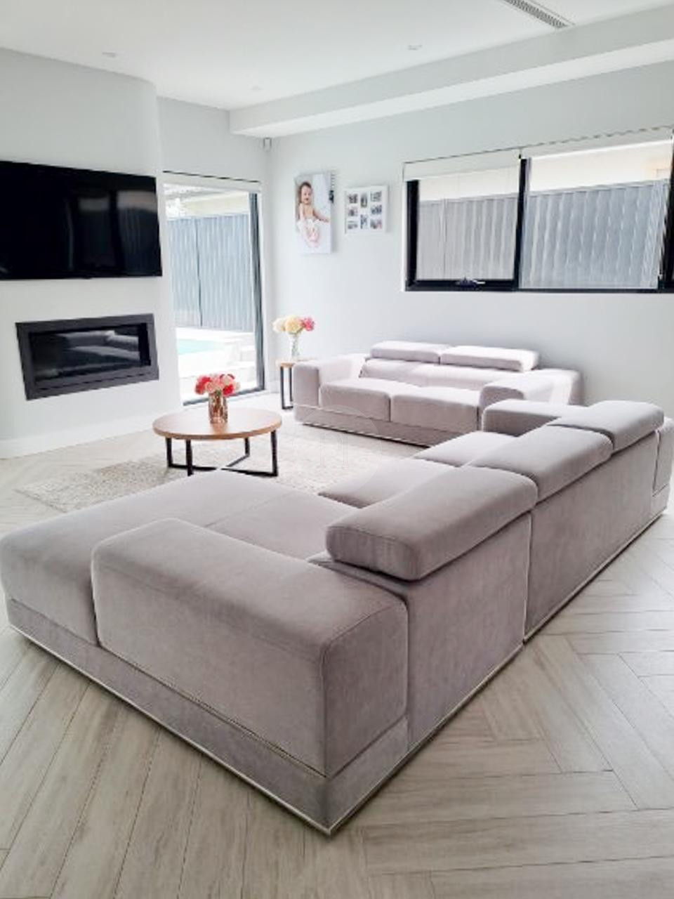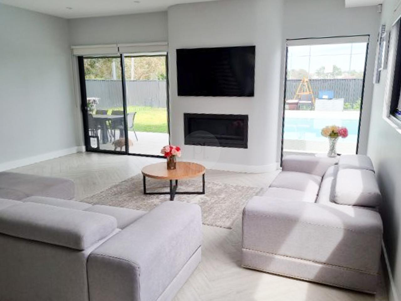 Inside, the open-plan living area flows seamlessly between the kitchen, dining, and lounge spaces, creating a dynamic and flexible setting for visual storytelling. The modern fireplace adds warmth and sophistication, while the dedicated media room provides the perfect environment for controlled lighting and production setup.