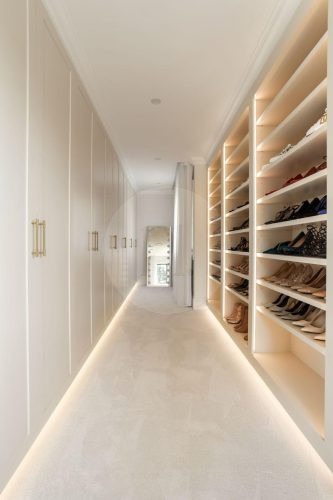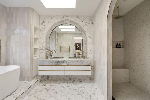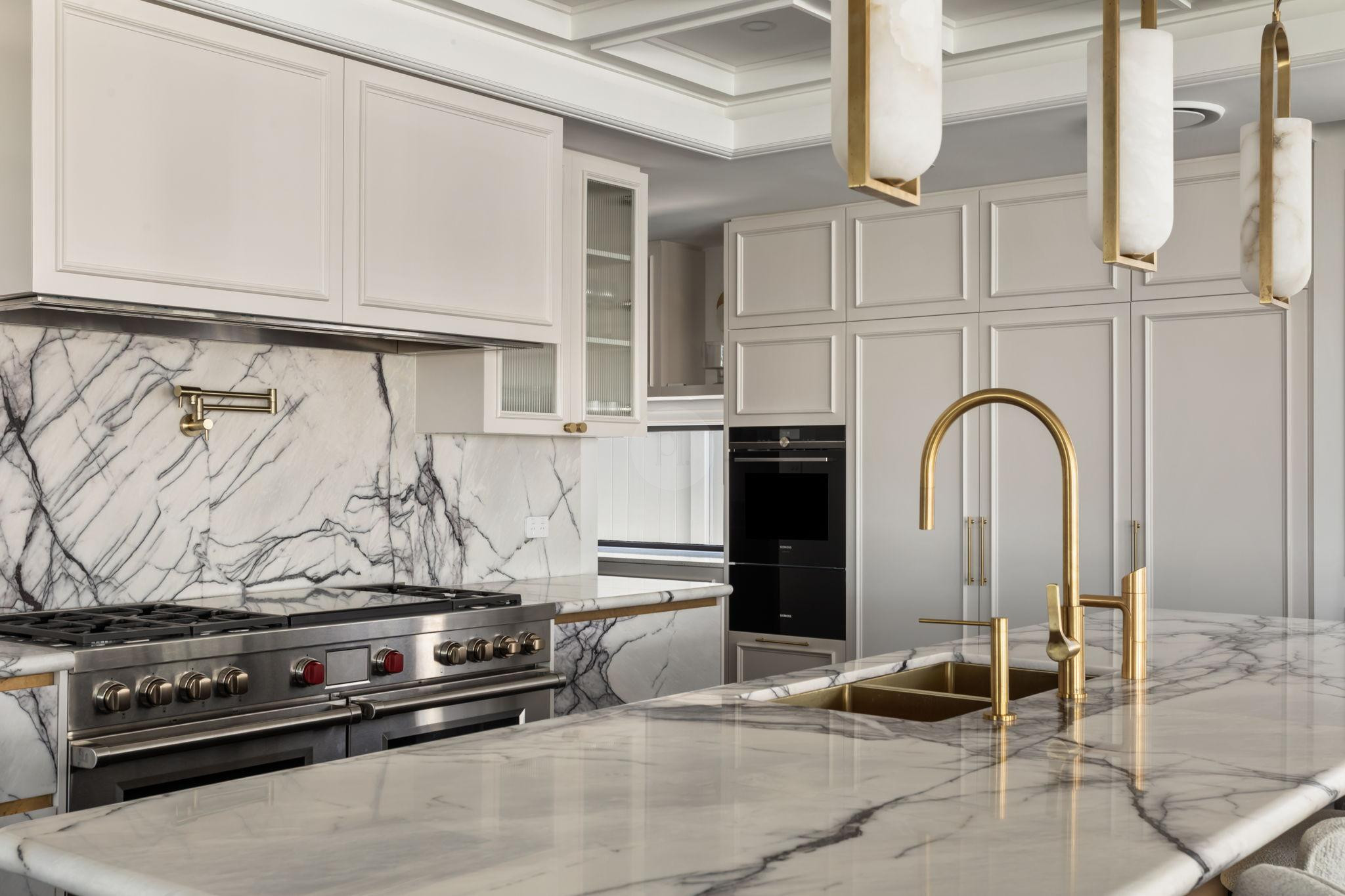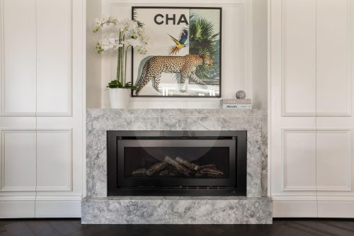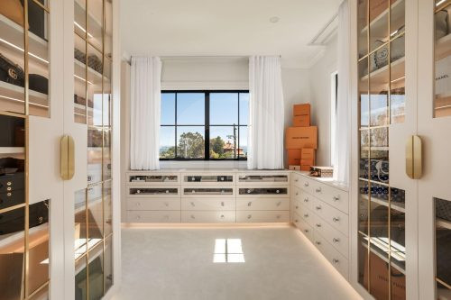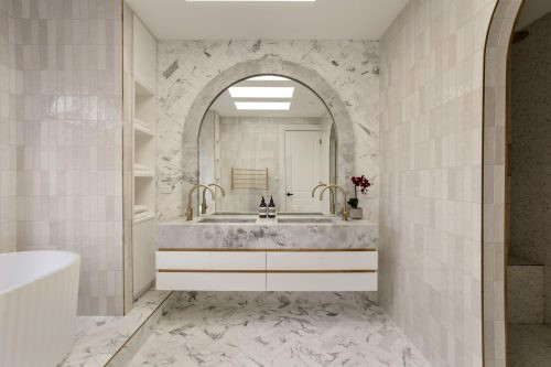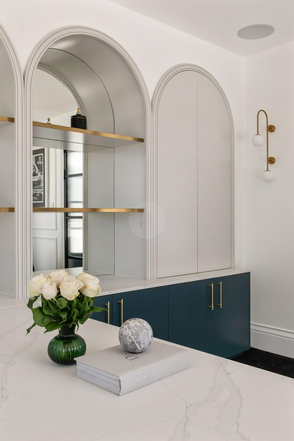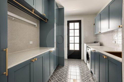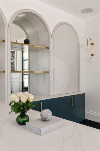 The beautifully designed pool house serves as a self-contained, elevated shooting space, featuring it’s own kitchen with statement oven + range hood in a playful blue and white majolica print, gold tapware, and arched bar cabinets. Designed with airiness and light in mind, it also includes an open-plan dining and living area, fitted with a pool table (that doubles as a table tennis table), built in fireplace and elegant wall niches which would be perfect for homewares and jewellery brands. Drenched in natural light and opening out to the pool and other outdoor rooms, this space captures the essence of relaxed coastal living, making it a wonderful choice for lifestyle campaigns, editorial shoots, and fashion stills.