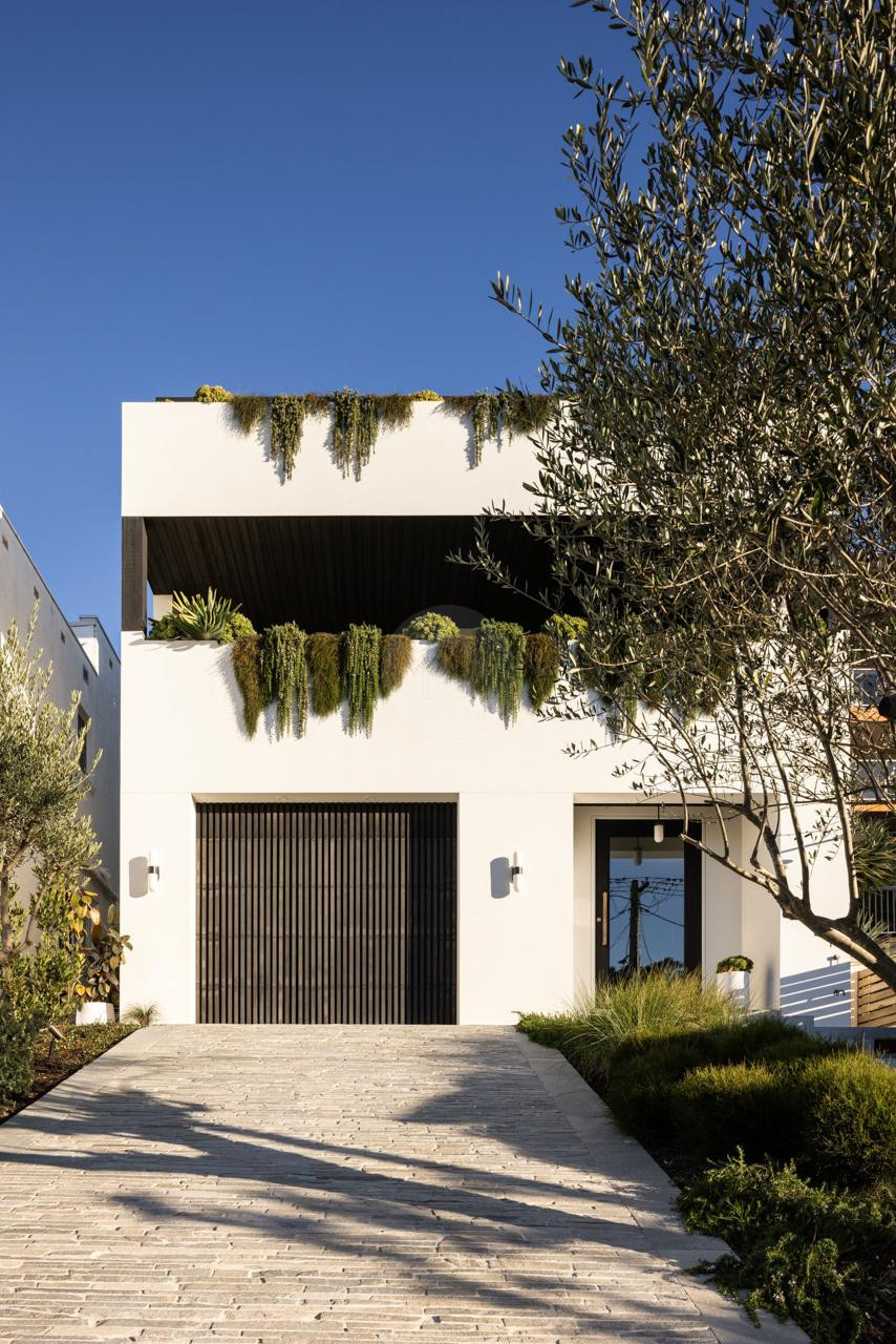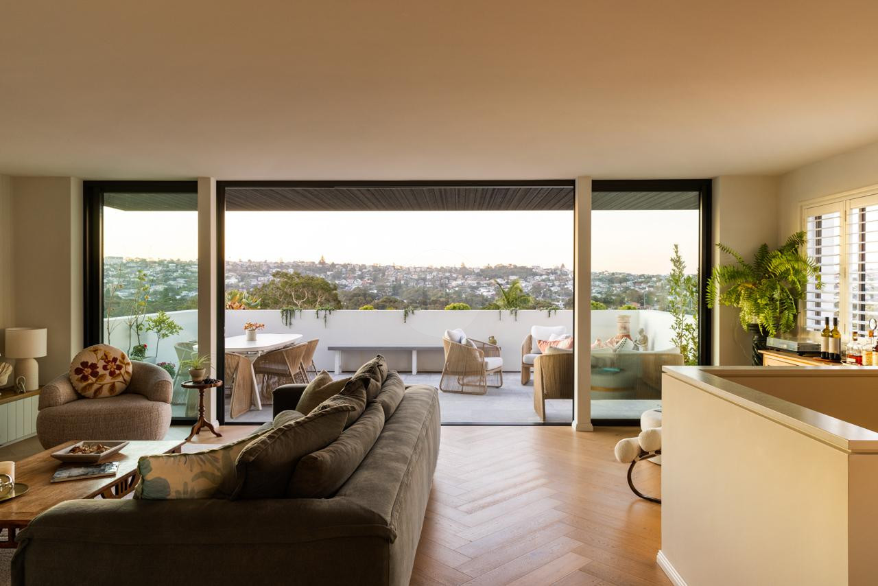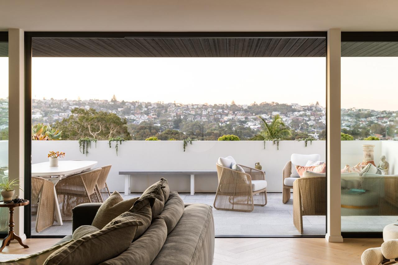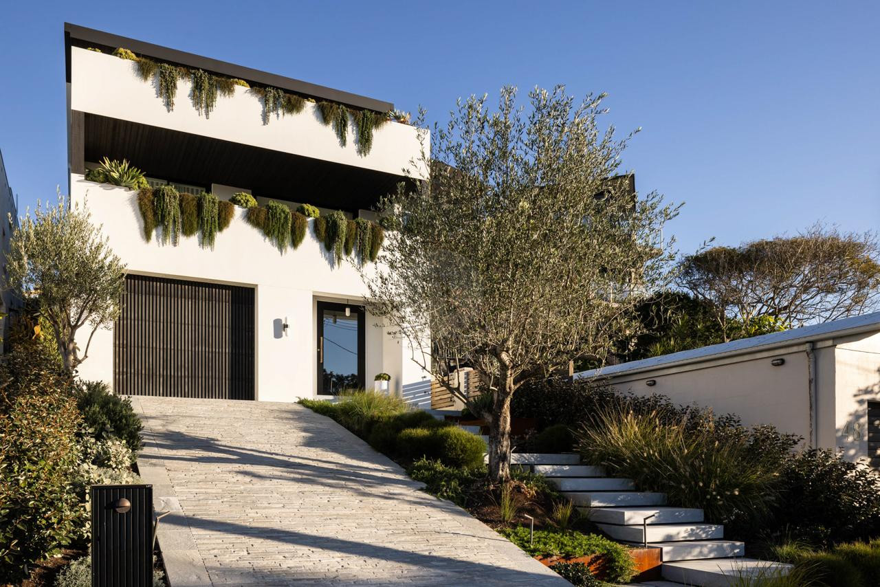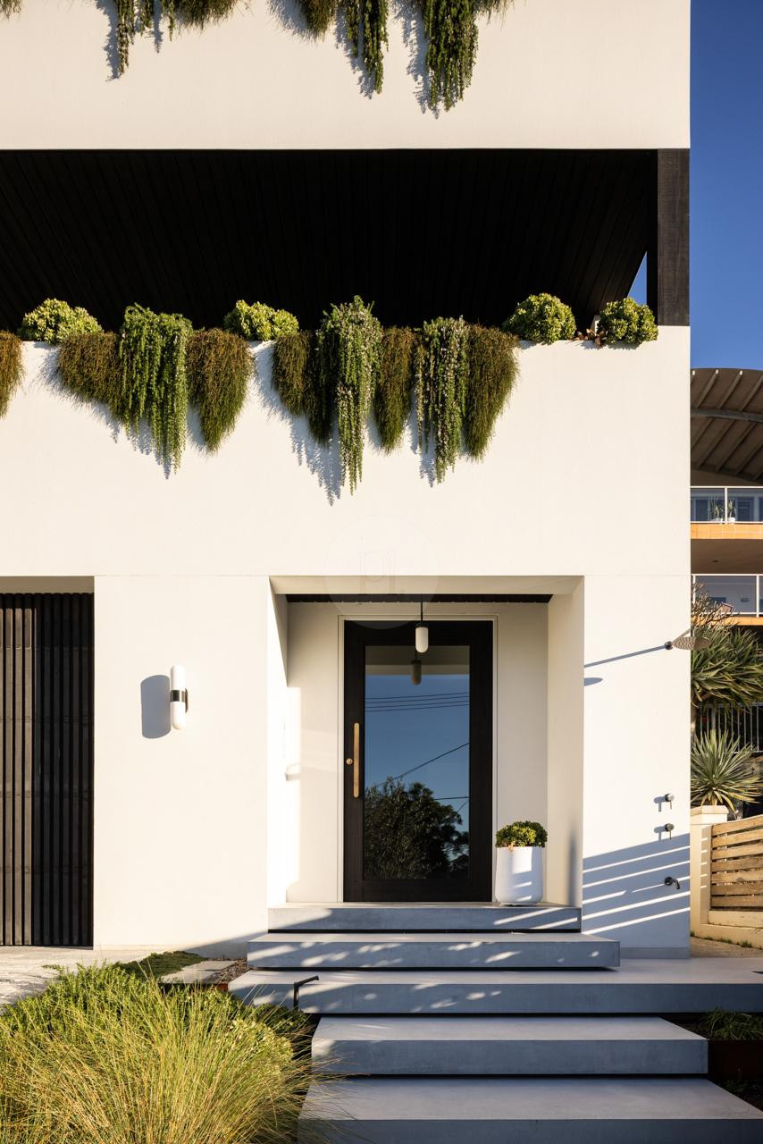 Arrive via a dramatic granite filetti driveway with off-form floating concrete stairs framed by lush landscaping. The panoramic north-facing balcony provides sweeping 180-degree views across North Curl Curl headland, ideal for sunrise, golden-hour lifestyle shoots and cinematic coastal content. Established hanging gardens soften the architecture, offering natural texture and movement.