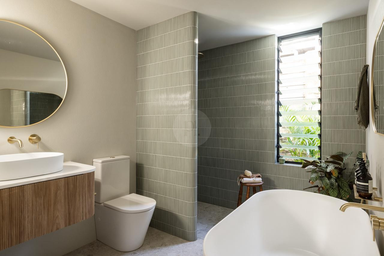 For outdoor content, the undercover patio and BBQ area with bar window and seating delivers relaxed entertaining scenes, while the private back garden features bamboo walls, sandstone pathways and exposed boulders for nature-focused frames. Bathrooms on every level and a dedicated family bathroom upstairs offer convenient wardrobe and talent prep zones, ensuring seamless production days.