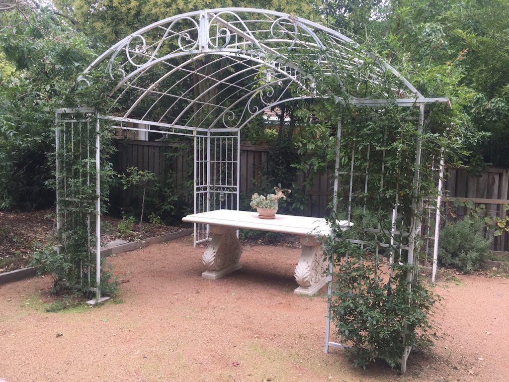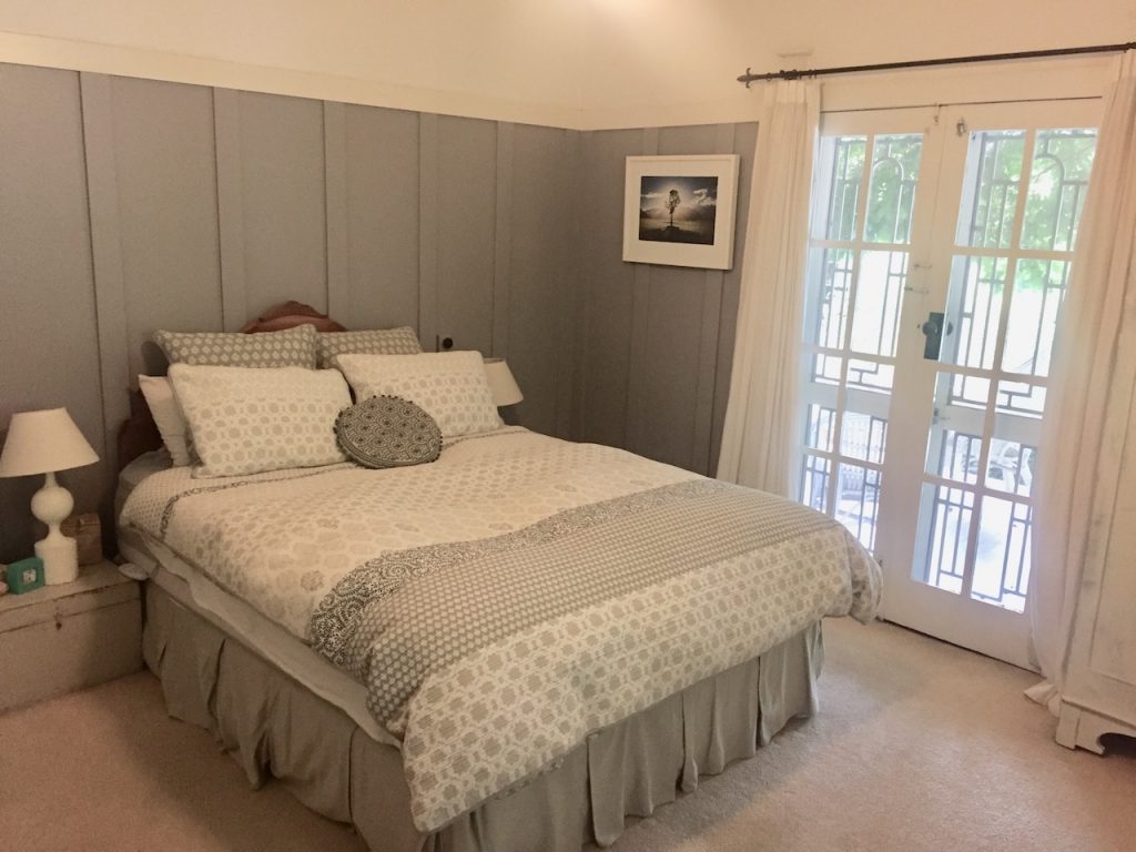 A beautiful timber farm house built between 1860 and 1880 in Burradoo, NSW. The house is set in an acre of established English gardens. The interior of the house was renovated in the 1920s with timber wall paneling. The veranda is veiled in a huge wisteria vine and provides a stunning country setting. This location features: a treehouse, atrium / greenhouse , sprawling foliage, enchanting window seat, checkerboard flooring and a blue pop of colour.