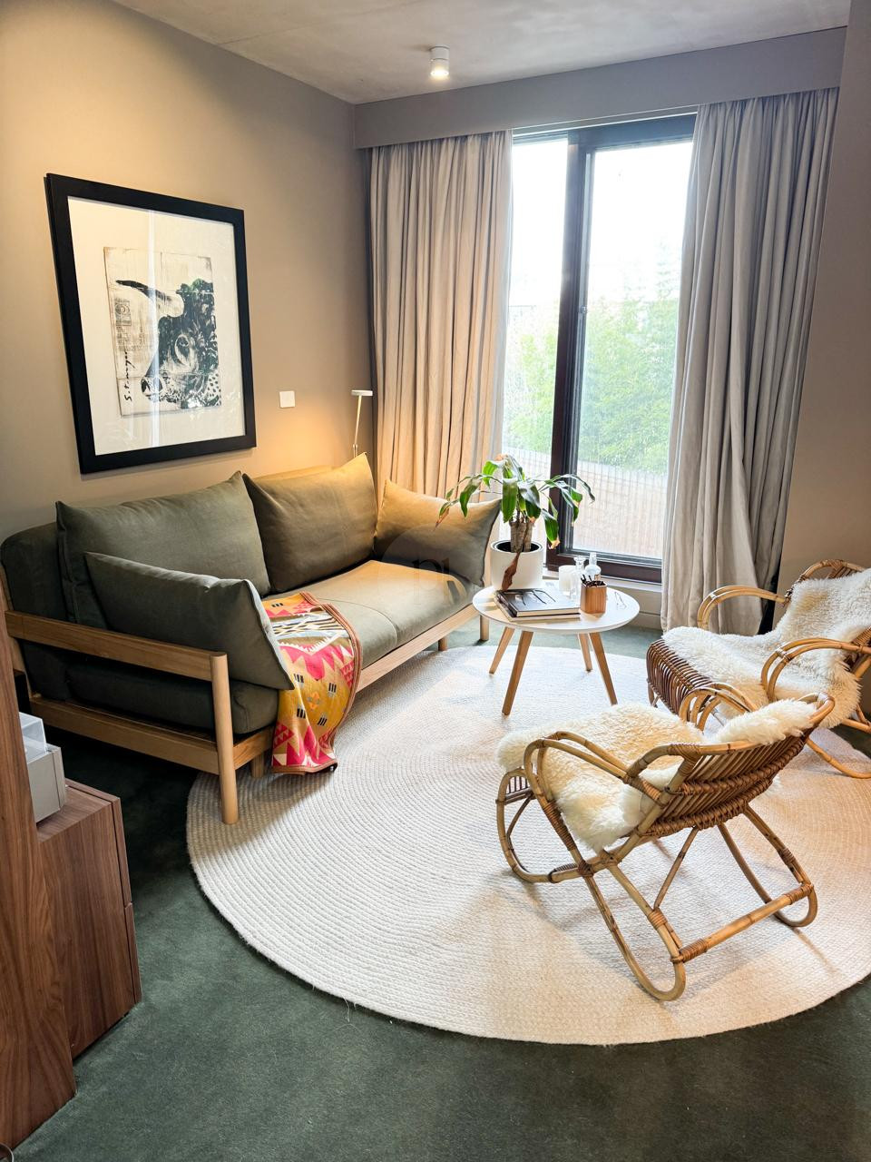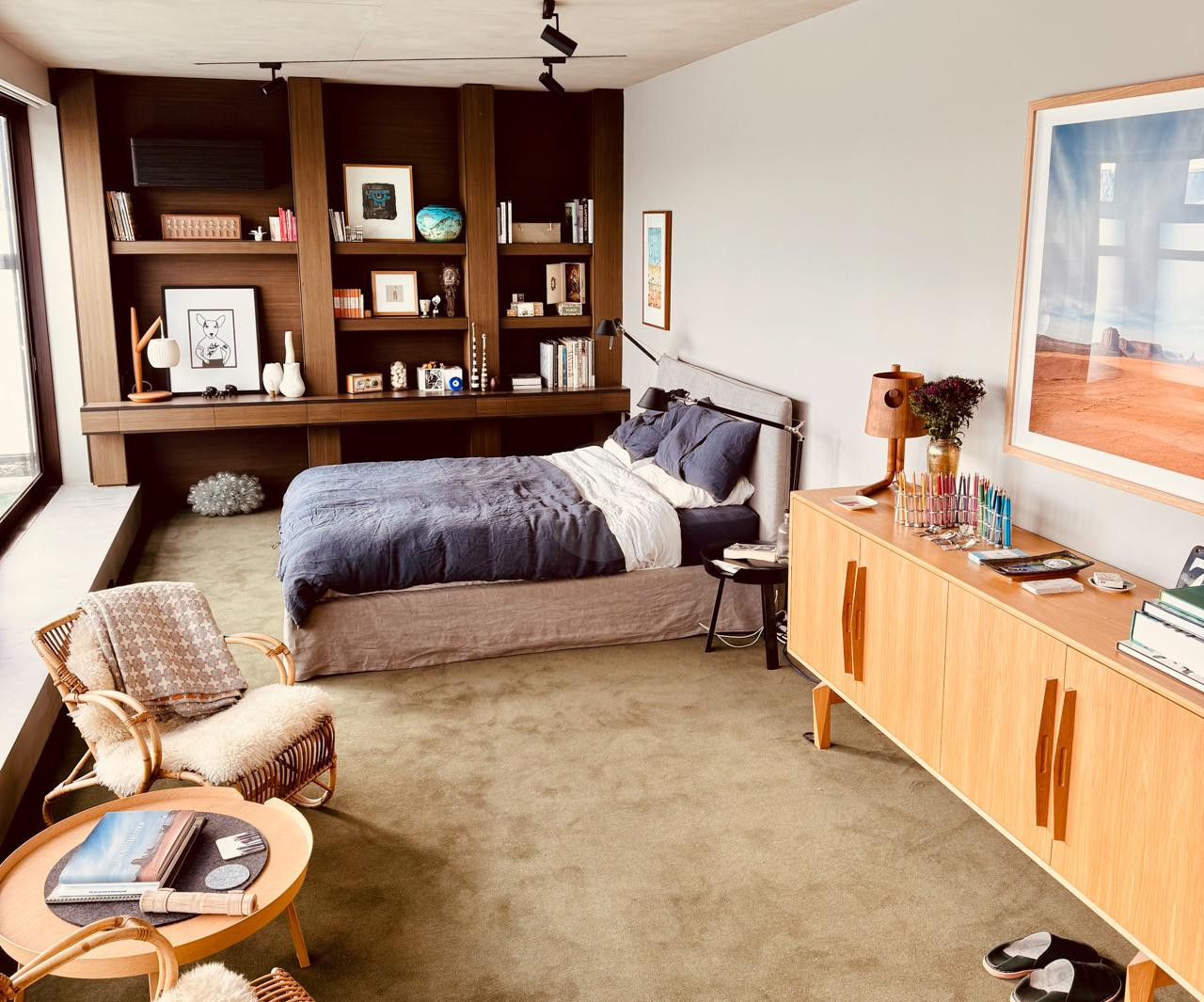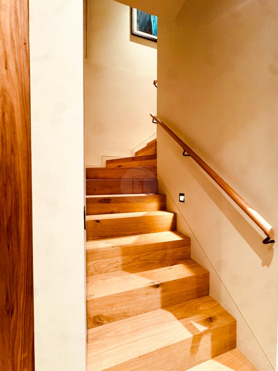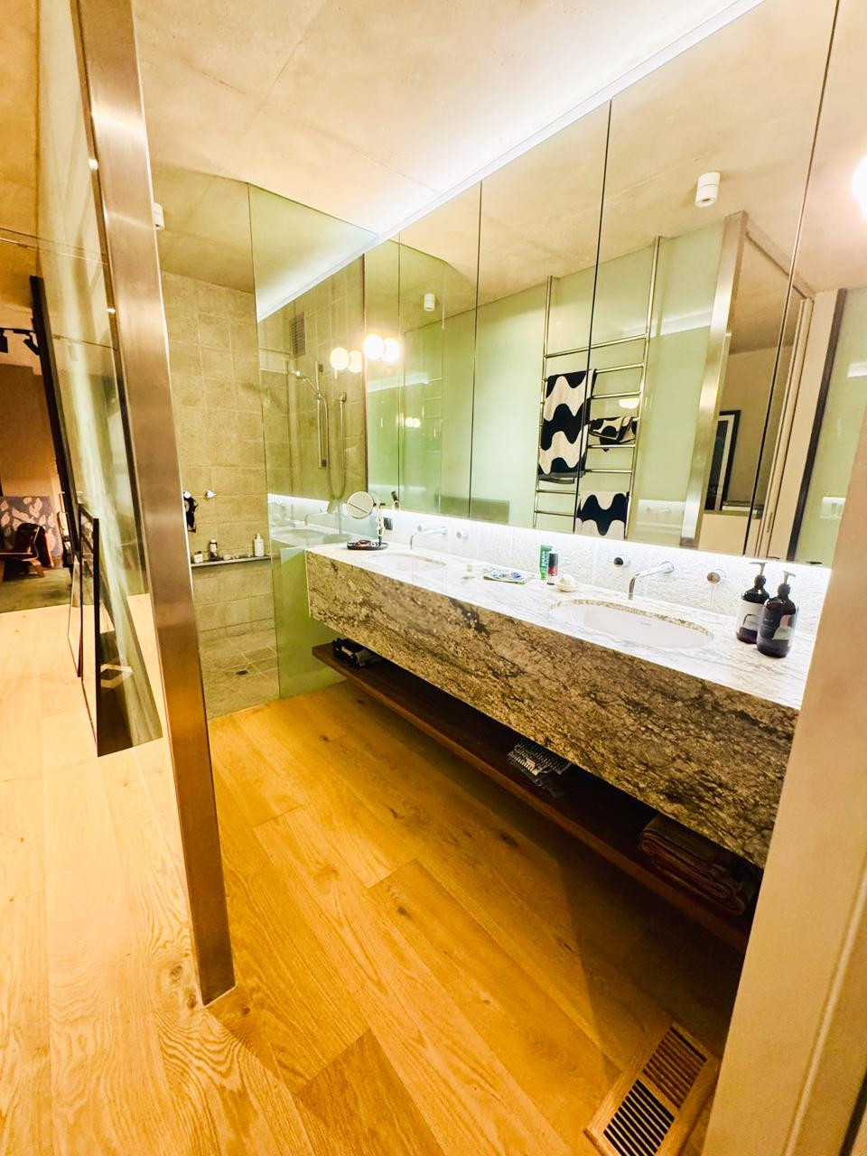 The kitchen showcases warm walnut cabinetry, elegant brass accents, and handcrafted Japanese ceramic tiles, an inspired combination of contemporary and organic materials that makes it perfect for food, interior, and lifestyle shoots. The double-storey layout provides flexibility for production teams, offering varied spaces for both intimate and open-plan setups.
