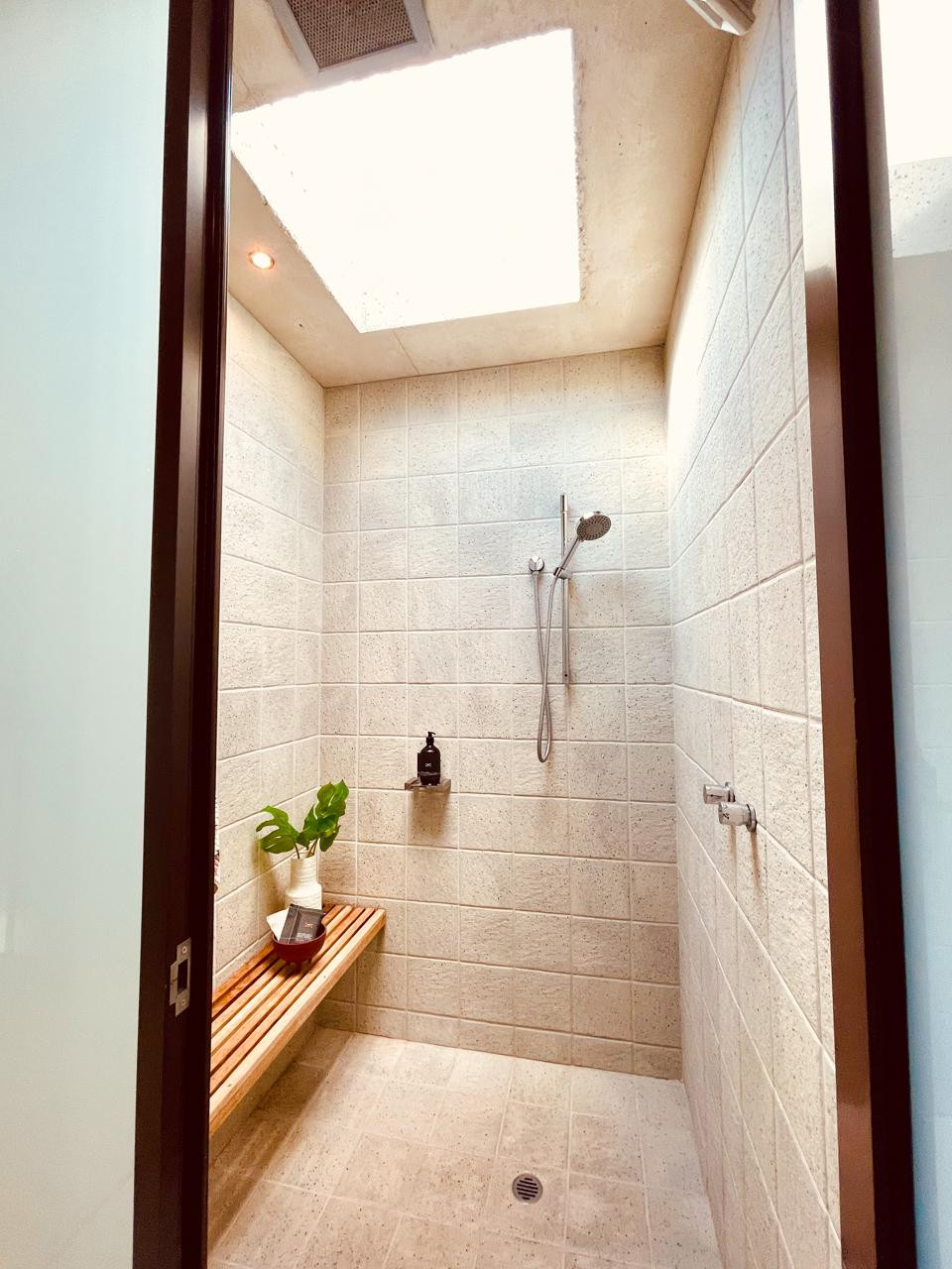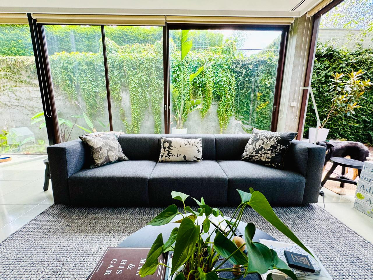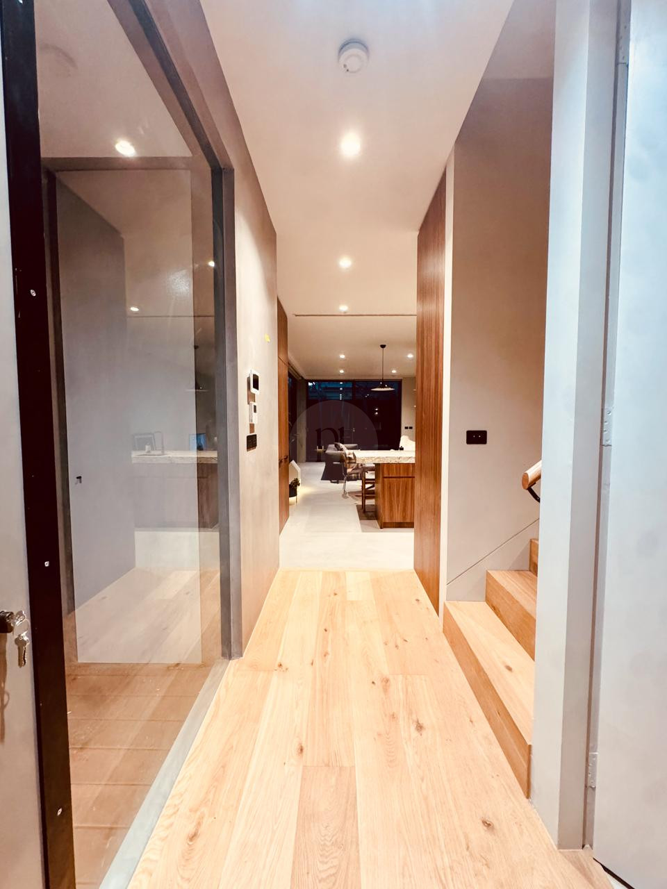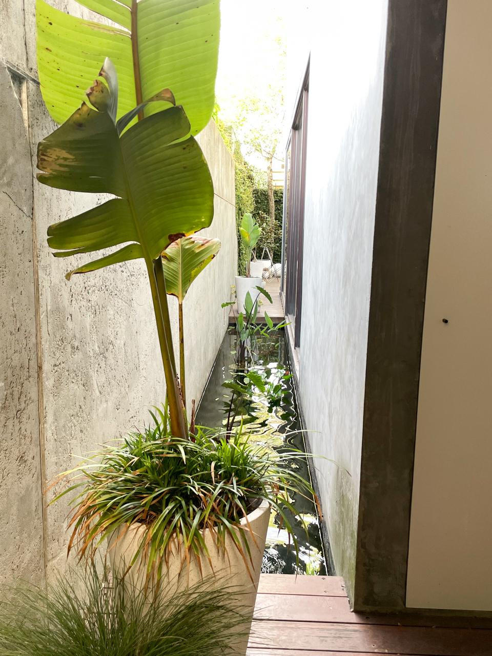 Step inside and be captivated by the expansive living room, where large windows on both sides invite the outdoors in, seamlessly connecting to a tranquil courtyard garden complete with a serene 5-metre pond. This peaceful retreat offers a calm, textural setting that enhances any creative vision.