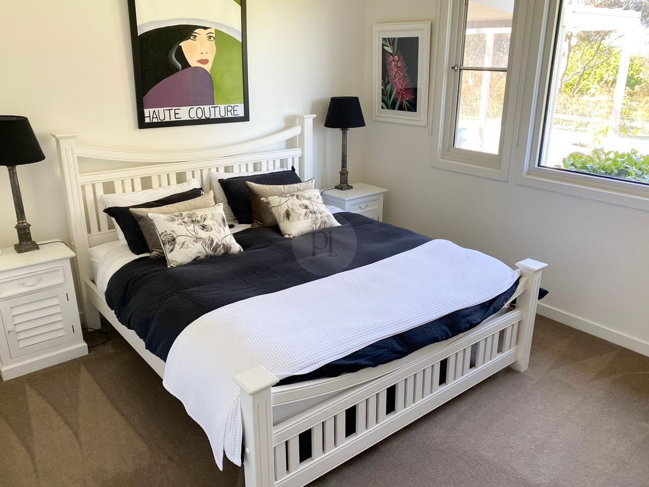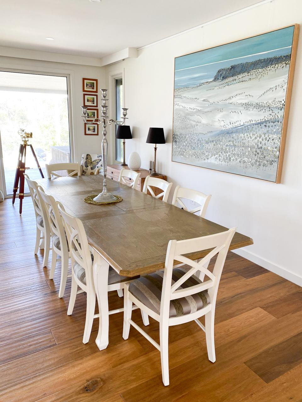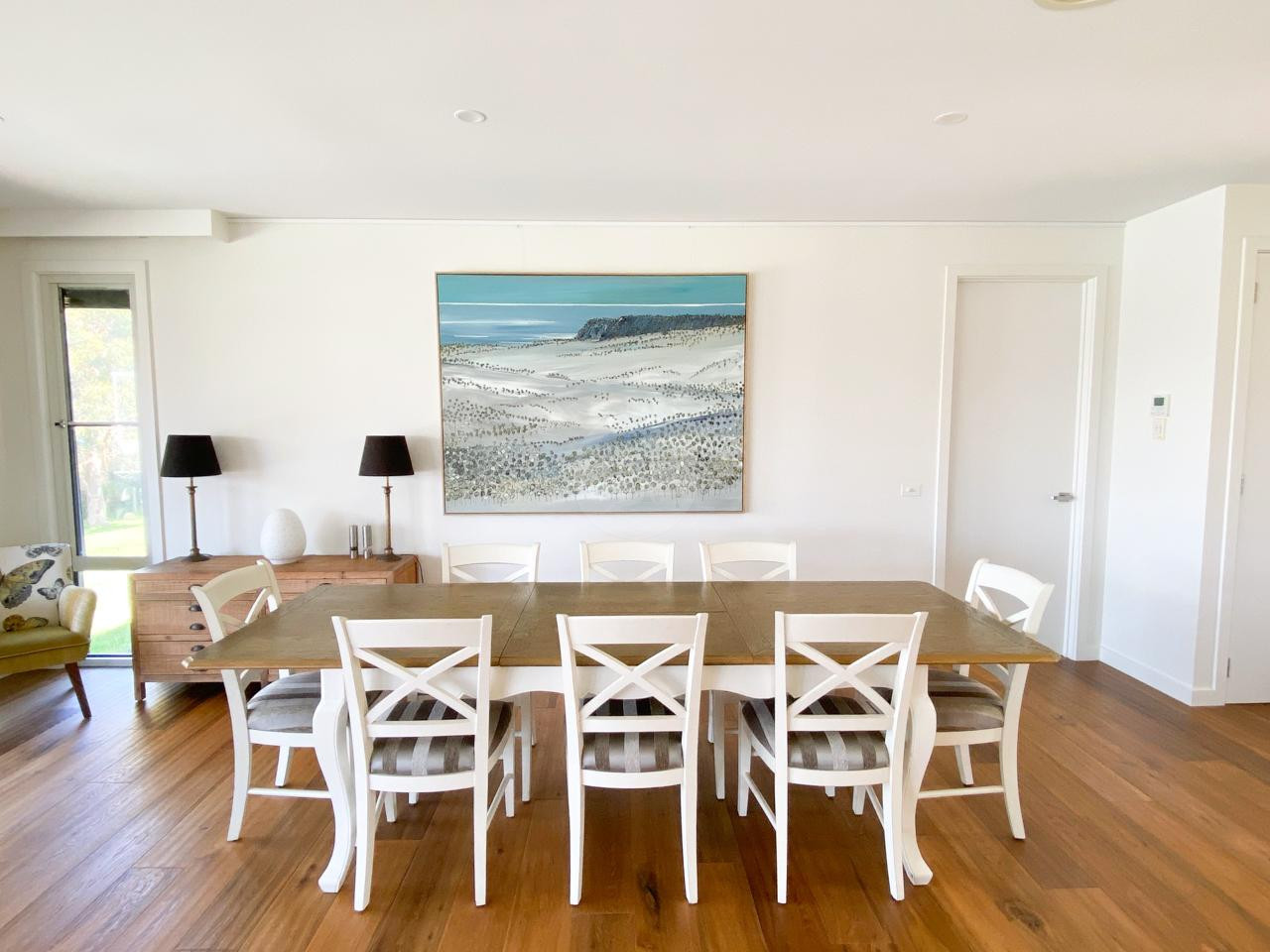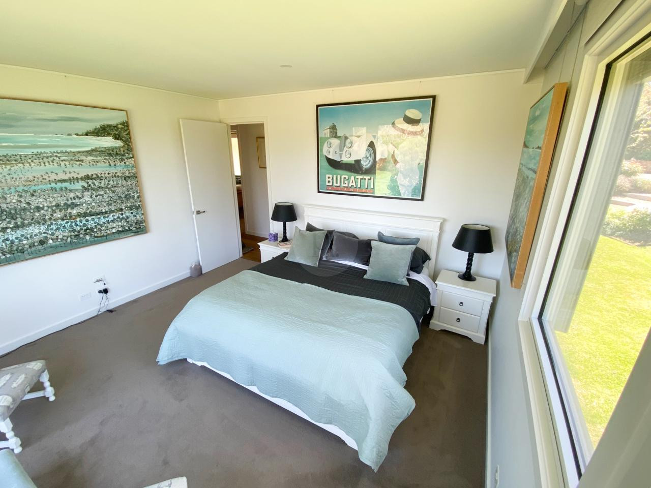 A charming tree-lined driveway welcomes you to the property, enhancing its sense of seclusion and tranquillity. The single-storey layout includes three beautifully appointed bedrooms and two modern bathrooms, providing comfort and convenience for your crew. Throughout the home, large pieces of original art add elegance and personality, while warm timber floors and soft carpeted bedrooms create a relaxed, inviting atmosphere.