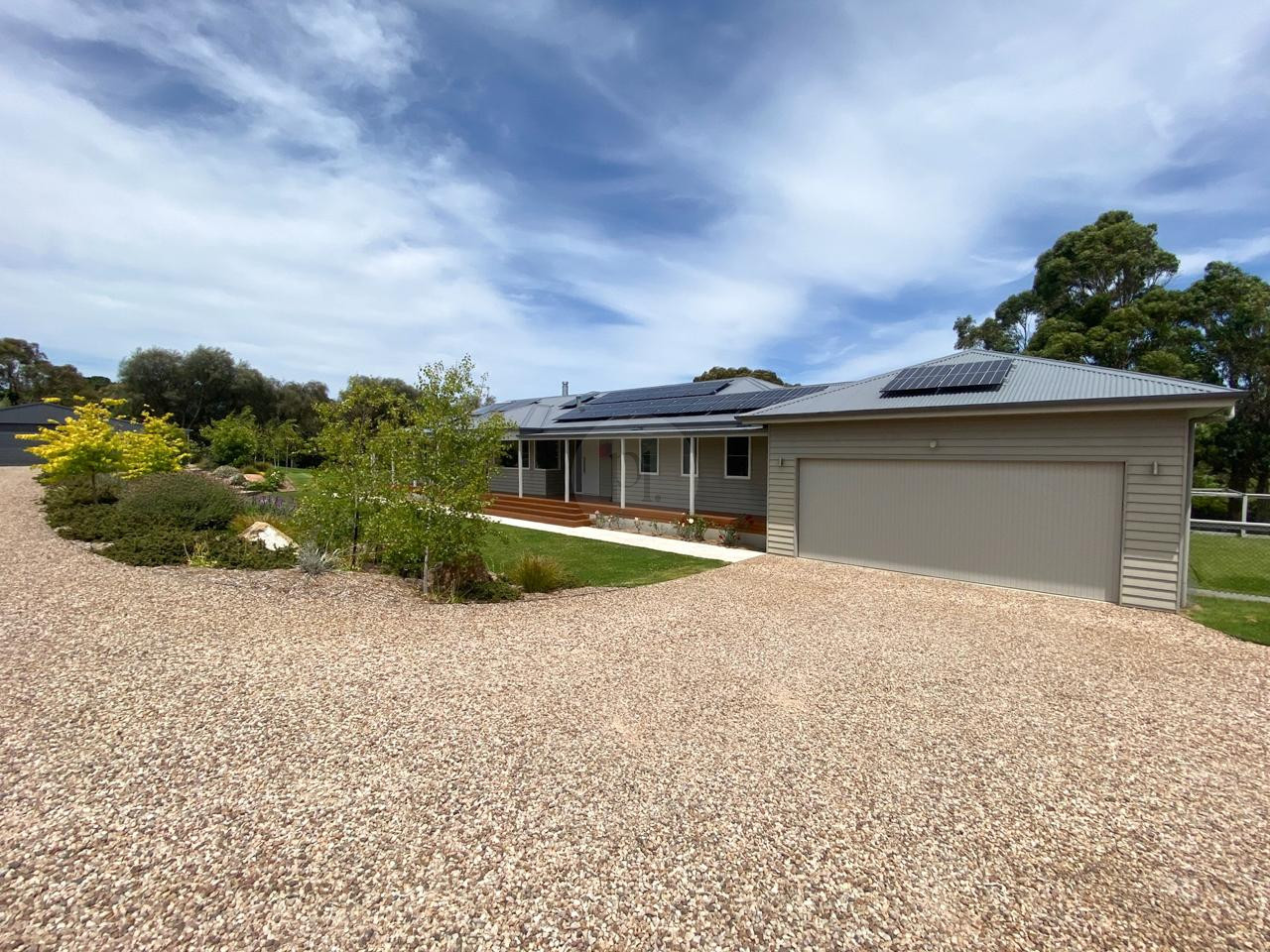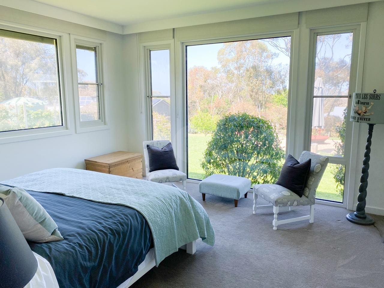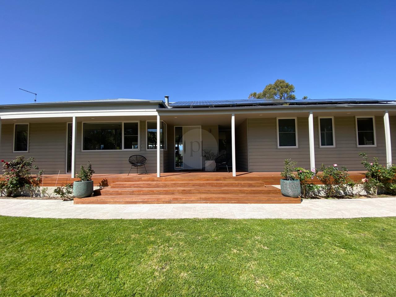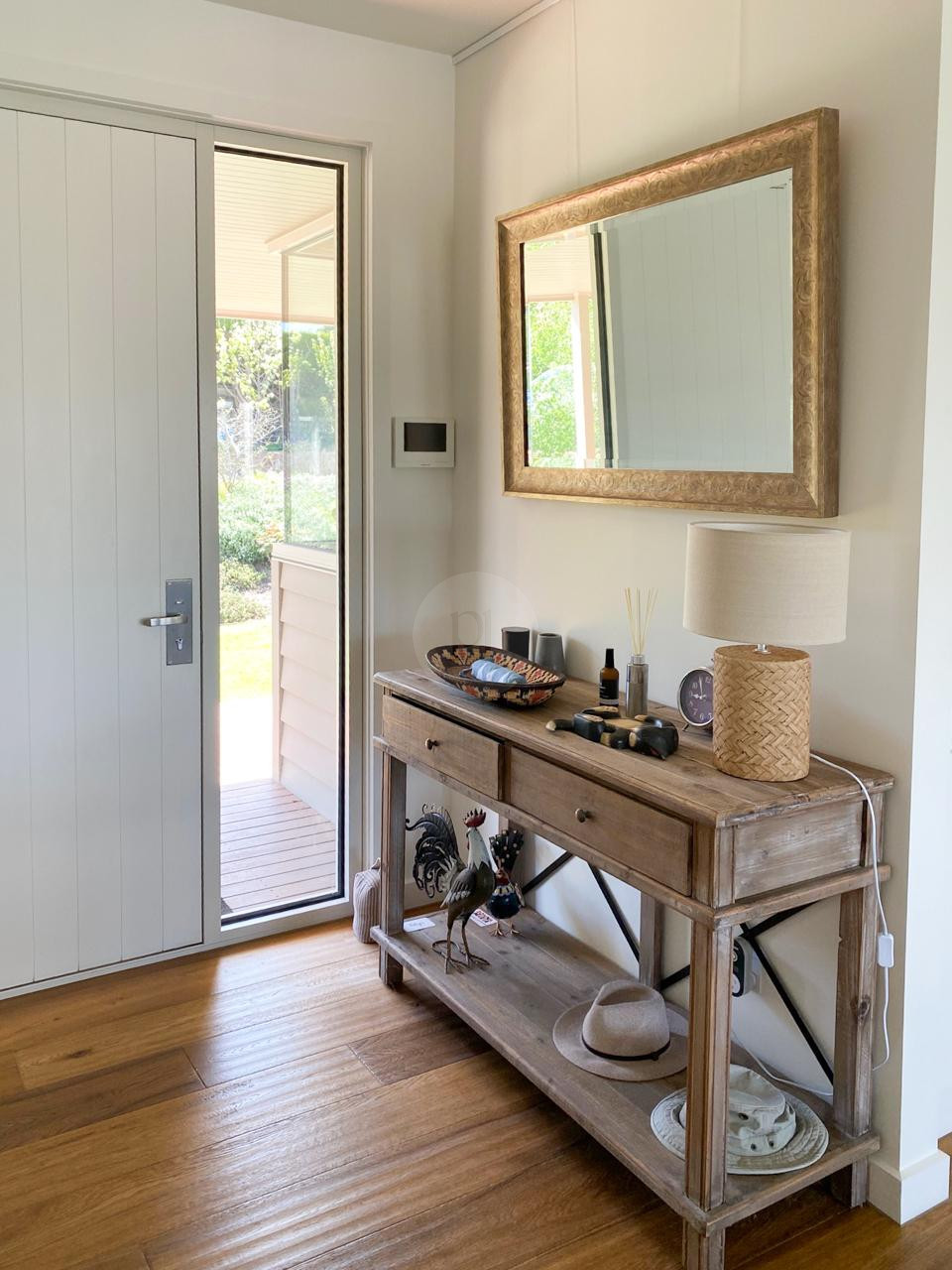 A charming tree-lined driveway welcomes you to the property, enhancing its sense of seclusion and tranquillity. The single-storey layout includes three beautifully appointed bedrooms and two modern bathrooms, providing comfort and convenience for your crew. Throughout the home, large pieces of original art add elegance and personality, while warm timber floors and soft carpeted bedrooms create a relaxed, inviting atmosphere.