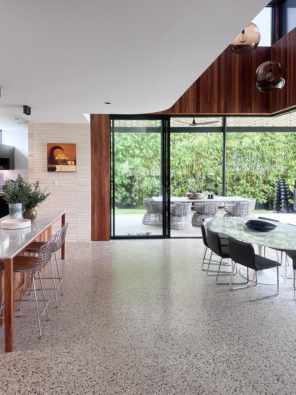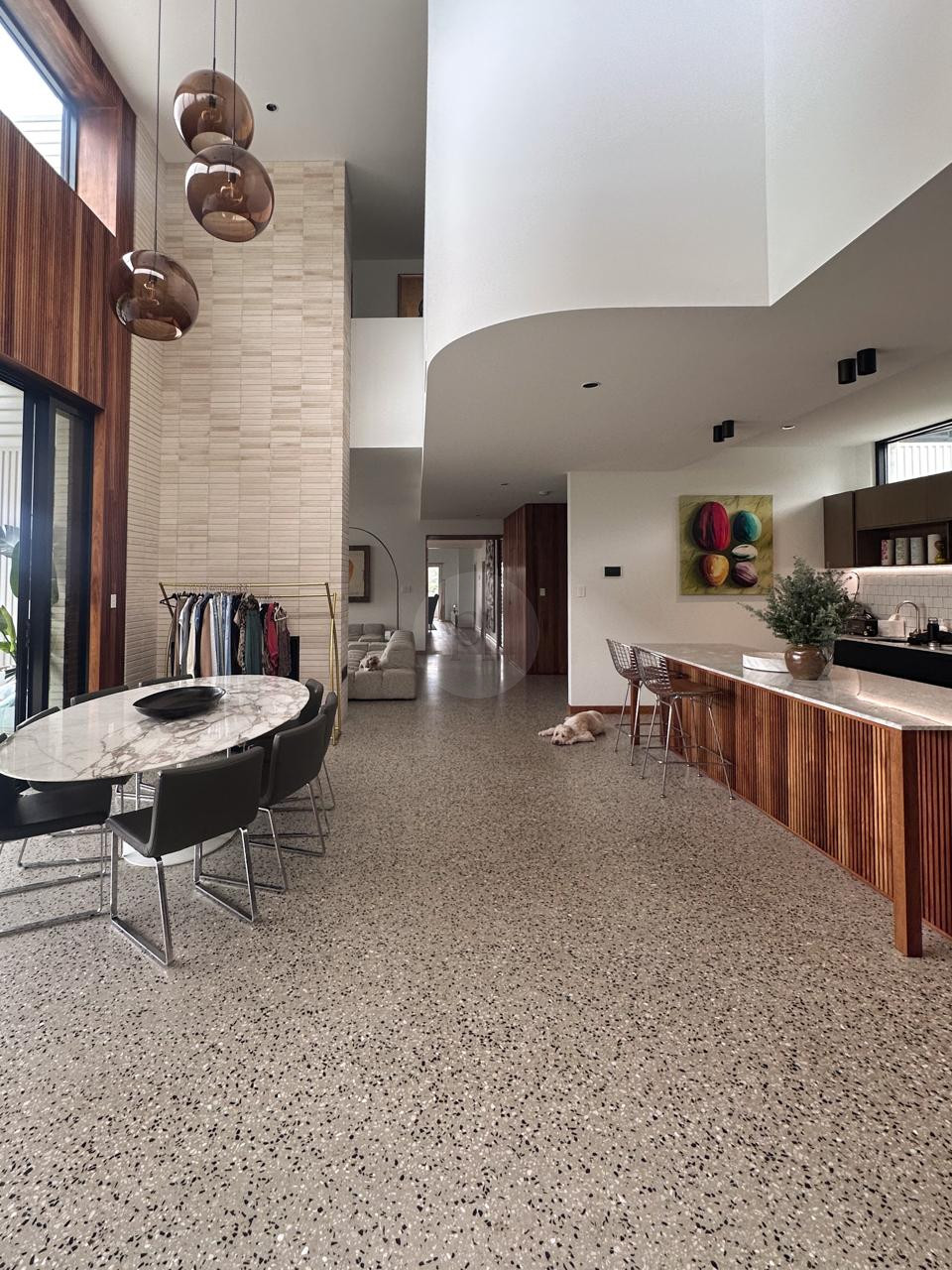 Spanning over three levels, this multi-storey residence features light-filled spaces adorned with designer fittings and custom-made furniture. The original artwork and elegant terrazzo floors create a harmonious connection between the indoors and the expansive outdoor living areas. Experience the grandeur of 2.8 metre double glass sliding doors that open fully, inviting natural light and fresh air into the heart of the home.