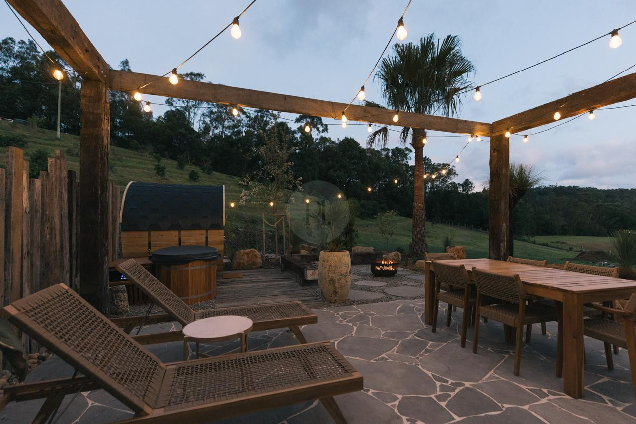 Spanning expansive acres, the property is framed by established gardens, swaying palms, and open lawns that lend themselves beautifully to lifestyle, wellness, and editorial shoots. Outdoor spaces are a standout, featuring a fire pit for atmospheric twilight scenes, a relaxed BBQ and entertaining area, and a welcoming verandah that captures the essence of indoor–outdoor living.