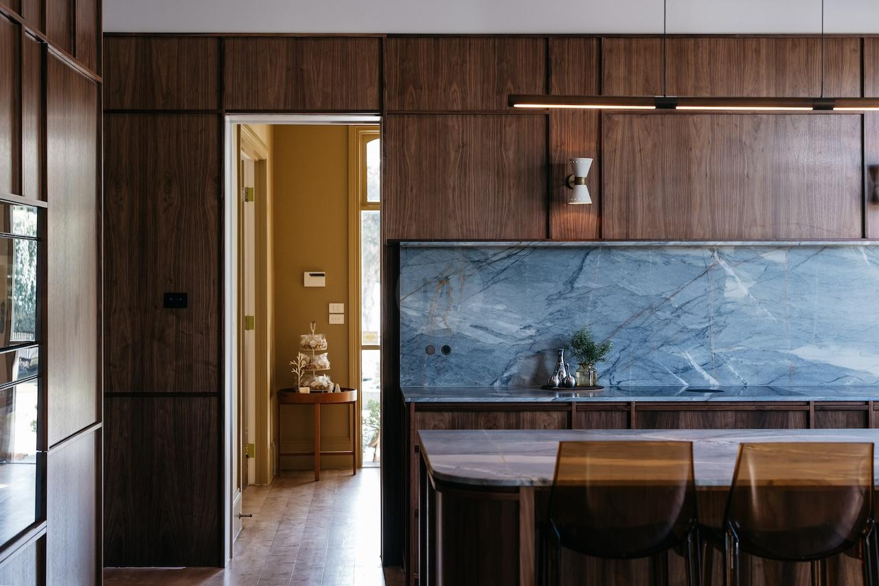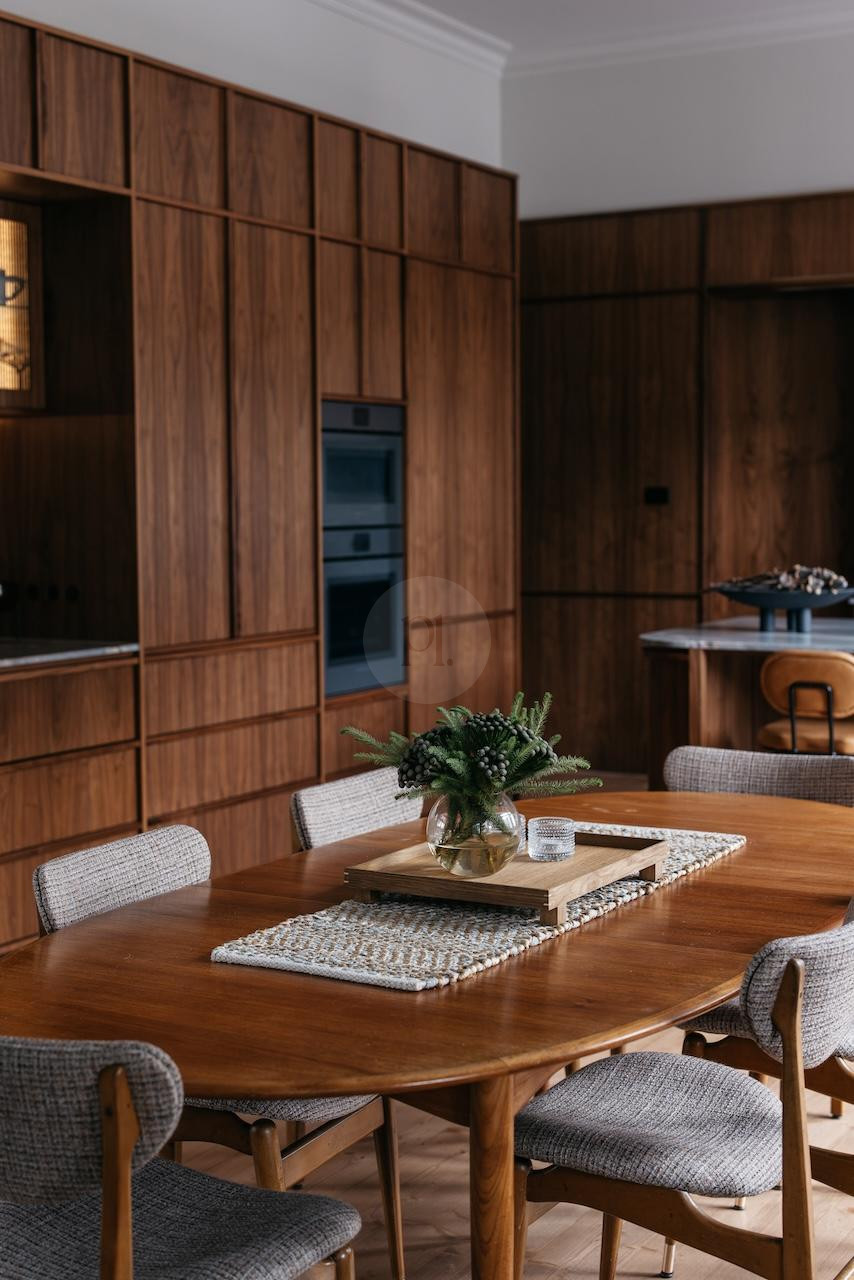 Featuring a spacious layout with multiple living areas, a striking kitchen with walnut cabinetry and a servery window that opens out to the alfresco area, Protea House offers a versatile and elegant setting for any creative production. The interiors showcase timeless design elements, including soaring 4-metre ceilings and luxurious finishes that pay homage to the home’s heritage while incorporating mid-century modern aesthetics.