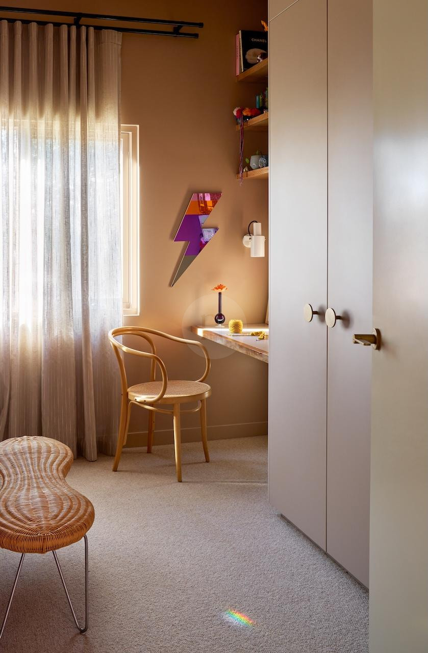 With its retro and contemporary designs, Red Herring showcases a captivating blend of styles. The home features an inviting children’s bedroom, a colourful kitchen adorned with various hues, and striking feature walls and colourful carpets that adds character to every corner. The extensive use of earthy tones — terracottas, browns, and dusty greens — creates a warm, welcoming atmosphere that is both calming and inspiring.